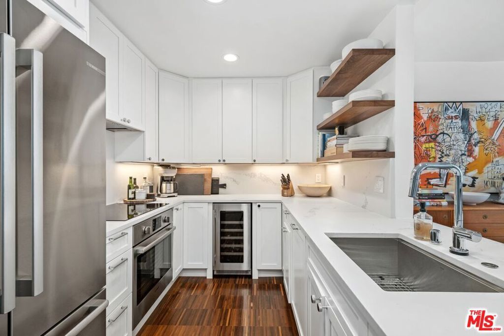 Experience elevated mid-century living in this fully remodeled, turnkey condo at the base of the Hollywood Hills. Bathed in natural California light year-round, this spacious 1-bedroom, 1-bath home features soaring ceilings, oversized Fleetwood windows and sliders, and walnut hardwood floors that create a bright, airy ambiance throughout.The open-concept living and dining space flows seamlessly to a private patio, perfect for morning coffee or evening entertaining. The chef's kitchen has been completely reimagined with Bosch appliances, induction cooktop, granite countertops, custom cabinetry, and a built-in wine fridge, offering both form and function. Retreat to the tranquil king-sized primary suite with a California Closets custom walk-in, while enjoying the convenience of smart-home upgrades including Nest-controlled new HVAC and Crestron-enabled lighting. Every detail has been thoughtfully curated from new doors and windows to premium finishes making this home truly move-in ready. This secure, well-maintained building offers a pool, laundry, extra storage, and one oversized dedicated parking space, with easy guest parking available.Step outside and you're minutes from Runyon Canyon, Starbucks, grocery stores, and the vibrant nightlife of Sunset Boulevard. Perfectly central, with quick access to West Hollywood, Laurel Canyon, Beverly Hills, Hollywood, the Valley, and major studios this location is unbeatable. Furnishings negotiable.