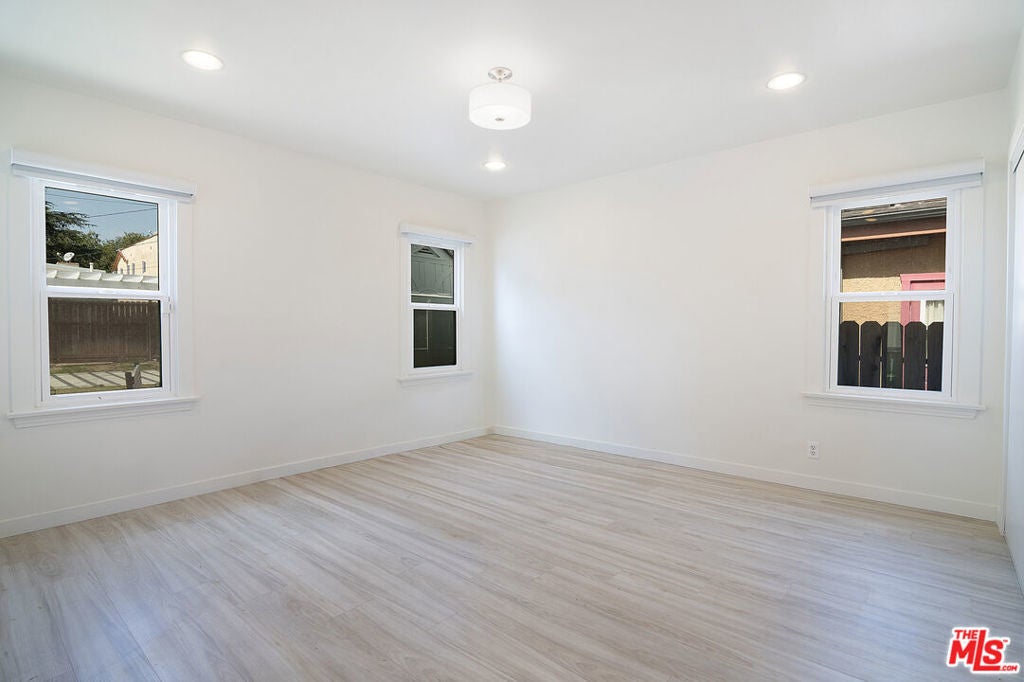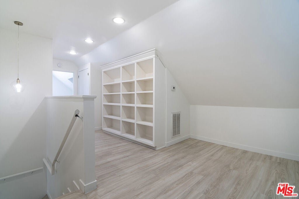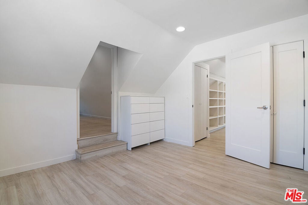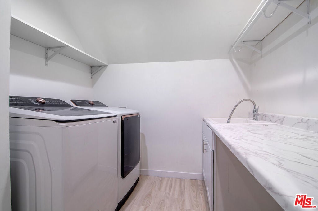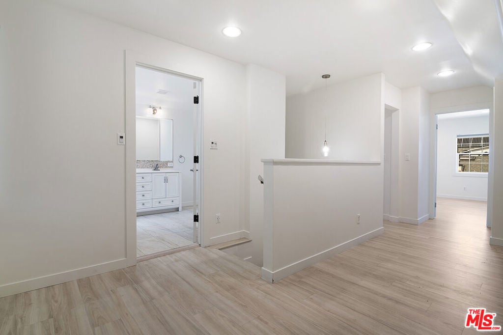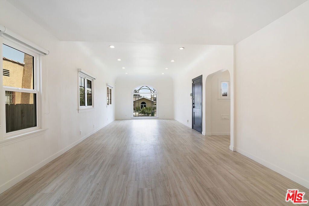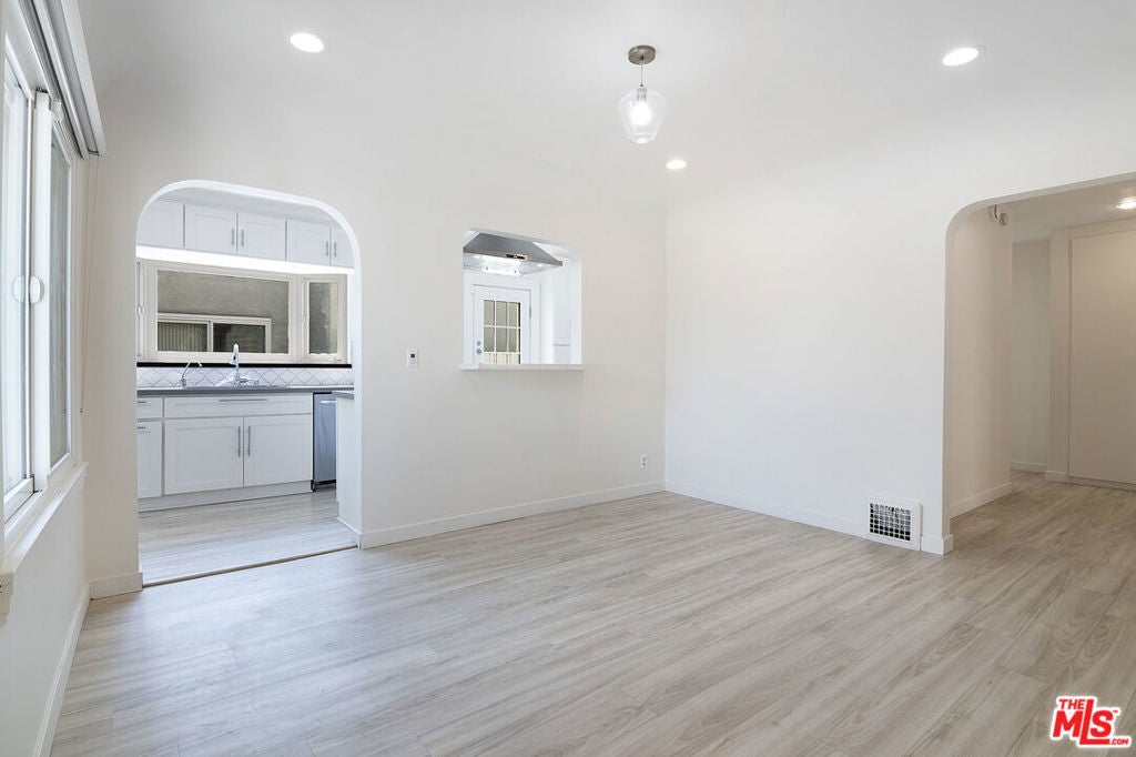 Charming, fully remodeled two-story California cottage in the heart of Pico-Robertson, offering 4 bedrooms, 3 bathrooms, and a versatile guest house. Step into a spacious great room, ideal for hosting, with seamless flow between living and dining areas. The adjacent family room, off the modern kitchen, doubles as a casual dining space. The updated kitchen boasts white arabesque tile, top-tier appliances including a built-in refrigerator, countertop range with hood, and double ovens and a built-in breakfast nook under a charming Victorian arched window with intricate mullions. The downstairs primary suite features dual vanities and a luxurious shower with river rock tile. A second downstairs bedroom connects to a guest bathroom with glass tile flooring. Upstairs, a landing with built-in bookshelves creates a cozy family retreat. One upstairs bedroom includes an attached playroom with charismatic angled ceilings, while another bedroom sits nearby. The upstairs full bathroom, with separate shower, tub, and dual vanity, offers ample space and style. Outside, a long gated driveway ensures privacy, complemented by a sprawling lawn perfect for outdoor activities. The converted garage studio, equipped with HVAC and a private bathroom, is ideal for guests or a home office. Recently renovated, this home is steps from Pico Boulevard, blending classic charm with modern upgrades in one of LA's most desirable neighborhoods.