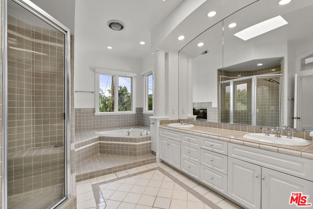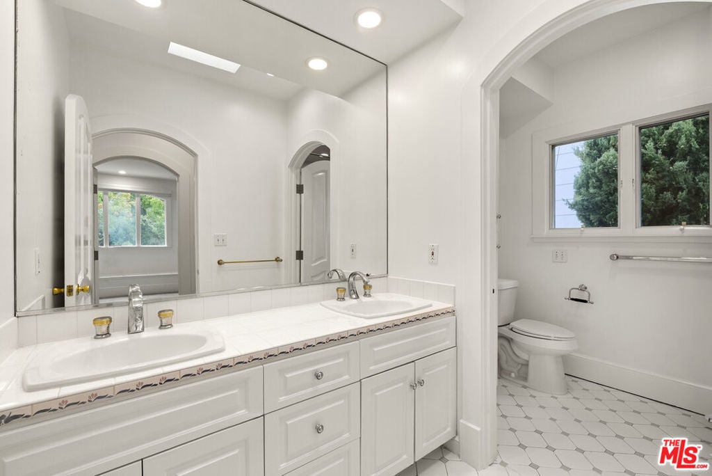 A beautiful 4 bedroom, 3.5 bathroom home in Cheviot Hills with a spacious yard. On the main level, the large chef's kitchen opens to the family room and breakfast room, around the corner is the laundry and guest quarters. The formal living room and dining room are surrounded by windows with views of the back yard and front garden. There are 3 bedrooms and two bathrooms on the upper level, a large primary bedroom, bath and closet featuring dual fireplace. The two additional rooms on the upper level each have their own large closets and share a large bathroom. This spacious, bright and light filled home is perfect for your next residence steps from Rancho Park. Welcoming you behind the gate with a courtyard and fountain, this home is a rare opportunity to live in one of the best pockets in Los Angeles.