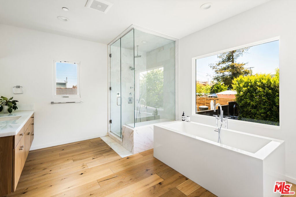 Modern Elegance in the Heart of Mar Vista. This beautiful 4-bed, 5-bath home combines traditional charm with sleek, modern finishes in one of Mar Vista's most sought-after neighborhoods. The open-concept layout features rich hardwood floors, a statement fireplace, and a gourmet chef's kitchen with custom walnut cabinetry, Viking appliances, a spacious island, and walk-in pantry perfect for both daily living and entertaining. French doors lead to a gazebo with built-in heating, opening to a lush, private yard ideal for indoor-outdoor California living. Upstairs, the luxurious primary suite offers a private balcony, walk-in closet, and spa-like bath with soaking tub, steam shower, and dual vanities. Two additional en-suite bedrooms and a flexible downstairs office or guest room with full bath complete the smart, functional layout. Situated on a tree-lined street in the heart of vibrant Mar Vista a community known for its charming residential feel, top-rated farmers market, and artistic spirit. You're just minutes from beloved dining destinations like Hatchet Hall and Little Fatty, boutique shops along Venice Blvd, and a short bike ride to the beach and Marina del Rey. Enjoy easy access to Culver City, Venice, and the best of the Westside, making this home the perfect blend of coastal lifestyle and urban convenience.