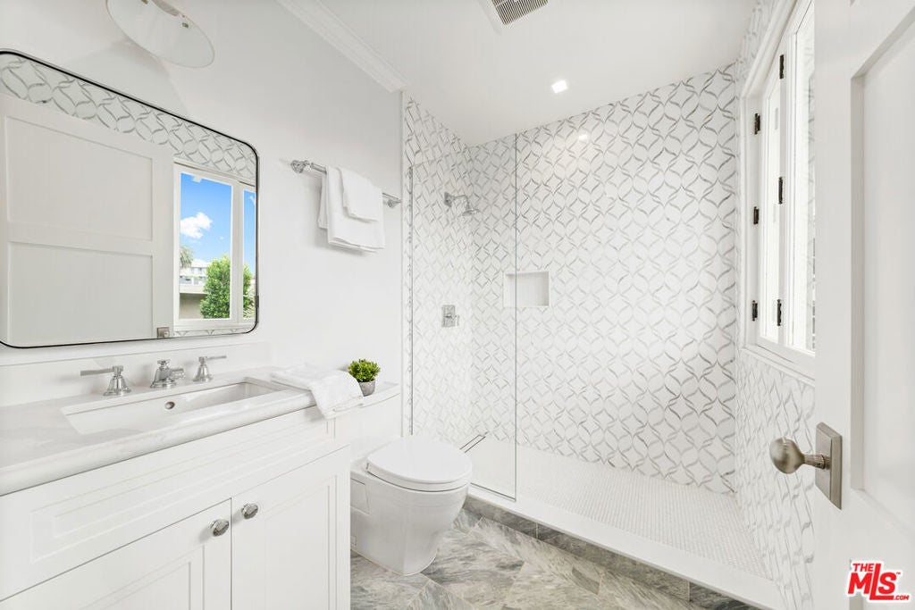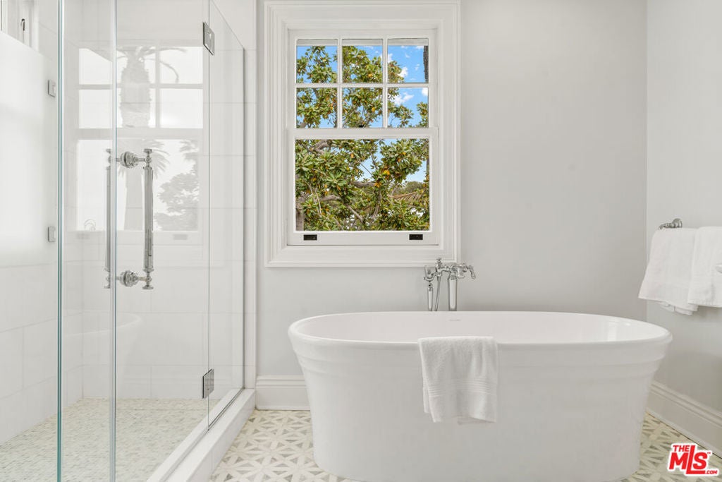A once-in-a-lifetime, irreplaceable ocean-view, the 401 Ocean residence blends timeless heritage with modern vision to offer a rare opportunity for premier coastal living at an address steeped in Santa Monica history. This magnificent landmark residence offers the look, feel, and privacy of a single-family home while featuring two distinct living spaces, each with its own private entrance, side yard, outdoor patios, and a detached two-car garage. As an HOA member, owners enjoy reduced maintenance costs for professional landscaping, utility bills, security, and insurance. Set just above the bluffs with panoramic views of the Pacific, the residence was originally part of the Henry Wyse / Charles Morris House designed in 1910 by noted architect. The home features 4 bedrooms, 6 bathrooms and large bonus basement room with bathroom, perfect for a den, gym or screening room. The vaulted beamed ceilings in the living room/dining room are bathed in magnificent natural light, even on a rainy day. The newly remodeled kitchen features state of-the-art appliances by Wolf, Miele, and Sub-Zero. French doors on the main level open to a large sun-lit private patio, perfect for outdoor dining. The luxurious second floor primary suite features a spa-like bathroom with dual sinks, a separate shower and toilet area, and a soaking tub and large closet. The private patio off the primary bedroom is the perfect place to sip a glass of wine and watch the sunset. Two additional rooms share the second level, each with a private bathroom, and are perfect for either bedrooms or offices. A second private patio off the third bedroom offers a sun-lit place to read and relax. Additional highlights include a first-level bedroom and bathroom with tub-shower and a laundry room with LG washer and dryer. This residence offers the best of coastal living with old-world and updated charm.