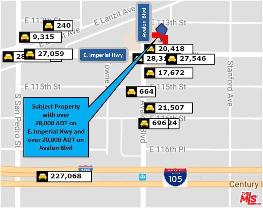 Nestled at the prominent intersection of Imperial Highway and Avalon Boulevard, this retail space offers an exceptional opportunity in one of the area's busiest corridors. The available unit features approximately 818 square feet of prime retail space with outstanding street visibility and exposure to more than 48,000 vehicles per day. Set within a vibrant shopping center anchored by well-known tenants such as Pizza Hut, Metro by T-Mobile, and Fiesta Auto Insurance, the location benefits from strong foot traffic and a dynamic mix of businesses that draw consistent customer flow. The surrounding area is densely populated, with over one million residents within a five-mile radius, providing a robust and diverse customer base. Convenient access to public transportation, nearby bus stops, and close proximity to Freeway 105 further enhance the property's accessibility. This is a rare opportunity to establish your business in a high-demand retail corridor with proven traffic, visibility, and community presence.