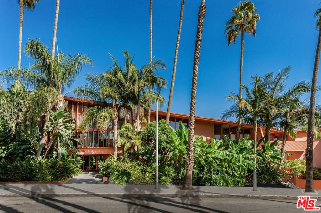 The iconic "Hollywood Riviera" is an architecturally significant West Hollywood treasure and designated landmark. It was built in 1954 by renowned architect, Edward H. Fickett. This charming first floor unit with hardwood flooring and large windows throughout this light and bright open floor plan offers a recently renovated kitchen, restoring all the original mid-century cabinetry serving the dinning/living. Step out to the large private rear patio for indoor/outdoor entertaining. Walk out the front door to the resort-like, heated swimmers pool and sunning deck. The secured main building entry features lava rock and tropical plantings. Automated gated covered parking for 2 cars. On the Mills Act passing huge property tax savings to the buyer. Featured in films such as (Rush Hour, L.A. Stories + many more), TV shows, & commercials. Tree-lined street in best location - walk to Sunset's shops, entertainment and restaurant's. This is California living at it's finest!