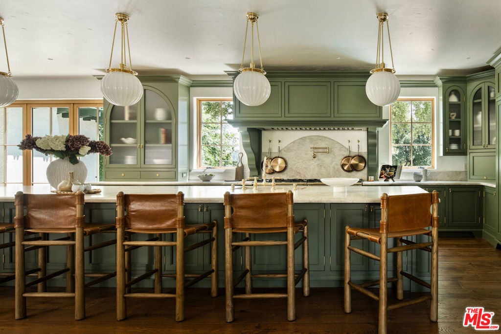 Perched along Eagle Rock's illustrious Hill Drive, The Gatsby is a rare and remarkable offering, rich in pedigree, privacy, and timeless elegance. Originally built in the 1930s and reimagined by legendary architect Paul R. Williams, AIA, this storied estate has been lovingly restored by Gary Mkrtichyan of Opus Builders, blending old-world craftsmanship with modern-day refinement in perfect harmony. From the exterior, The Gatsby evokes the romantic grandeur of Spanish Colonial Revival architecture, with graceful archways, ornate wrought ironwork, hand-carved wood details, vibrant tilework, terracotta rooflines, and lush, manicured gardens spread across nearly three-quarters of an acre. A stately four-tiered fountain greets you upon arrival, guiding you to a beautifully restored wood door that hints at the magic within. Inside, a soaring vaulted ceiling with hand-stenciled wood panels and exposed beams immediately captures the eye, a breathtaking tribute to Paul R. Williams' signature artistry, an exquisite blend of architectural poetry and old Hollywood glamour. The generous living room unfolds into a stunning kitchen and formal dining room, designed for both intimate dinners and grand celebrations. At the heart of the kitchen is an oversized center island overlooking a dramatic 12-burner La Cornue range. Custom cabinetry, a wood-paneled refrigerator, built-in wine fridge, and a secret walk-in pantry elevate the space with effortless grace and functionality. French bi-fold doors reveal a resort-style backyard where romance lingers in every detail, from the herringbone-tiled pool and spa to the fire pit and winding garden paths that invite quiet reflection beneath the stars. Just beyond, a private sports court adds a playful, spirited contrast to the tranquility, while an expansive grassy lawn, multiple seating areas, and mature trees, including a majestic oak, offer a sense of serenity and space rarely found. Just off the main living area lies a quiet retreat: a formal study and adjoining office, wrapped in rich wood paneling that radiates warmth and sophistication. Magnificent chandeliers cast a golden glow over each room, while French doors reveal an enchanting rose garden that gently winds down to an enclosed greenhouse, a dreamy setting for sunlit lunches, afternoon tea, or moonlit cocktails. Upstairs, a staircase adorned with original tile and wrought iron detailing leads to the spectacular primary suite. Here, a fireplace adds warmth and charm, while French doors open to a wraparound balcony with sweeping views of the grounds. The luxurious bathroom, complete with dual showers and a gold-plated soaking tub, invites indulgence. Three additional bedrooms, two bathrooms, and a second laundry room with access to a private sundeck above the three-car garage complete the upper level. A guest bedroom and bath on the main floor provide comfort and privacy. On the lower level, a hidden treasure awaits. Known as The Velvet Room, this authentic Prohibition-era speakeasy seems to echo with stories from another time. With secret rooms, a built-in bar, a fireplace, and private access to the backyard, it's a moody and unforgettable escape, where the spirit of the Jazz Age still lingers in the air. From sun-drenched interiors to hidden corners of enchantment, The Gatsby is a home built not just to impress, but to inspire. With architectural legacy and emotional depth, this is more than a residence. It's a legend reborn. And for the first time in generations, its doors are opening.