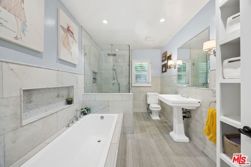 A sophisticated take on the classic Mid-Century California Ranch, this beautifully reimagined home offers the ultimate in relaxed, refined living. Perfectly situated on a lush, private lot South of the Boulevard in the foothills of Studio City, it combines timeless design with modern luxury. From the moment you arrive, the home captivates with impeccable curb appeal - manicured landscaping, mature greenery, and a welcoming facade set the tone for what's inside. Step through the front door into an open-concept interior filled with natural light, warm wood flooring, and designer touches throughout. The heart of the home is a gourmet eat-in kitchen featuring top-of-the-line stainless steel appliances, a 6-burner Viking range, wine fridge, and seamless flow into both the breakfast and dining area, ideal for entertaining and family gatherings. French doors throughout blur the line between indoor and outdoor living, opening to a stunning, private backyard with a flagstone patio, perfect for dining under the stars or enjoying Southern California's year-round sunshine. This 4-bedroom, 4-bathroom residence includes luxuriously remodeled marble bathrooms with premium finishes, fixtures, and lighting. Every detail has been thoughtfully curated to enhance comfort, style, and functionality. Nestled just minutes from major studios (NBC, CBS, Warner Bros., Disney, Universal), the Hollywood Bowl, and the trendy boutiques and restaurants along Ventura Boulevard, this is more than a home - it's a lifestyle. Welcome to your private retreat in the heart of Studio City.