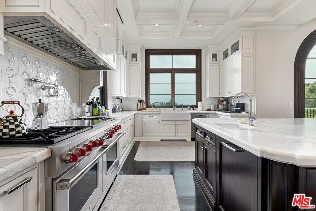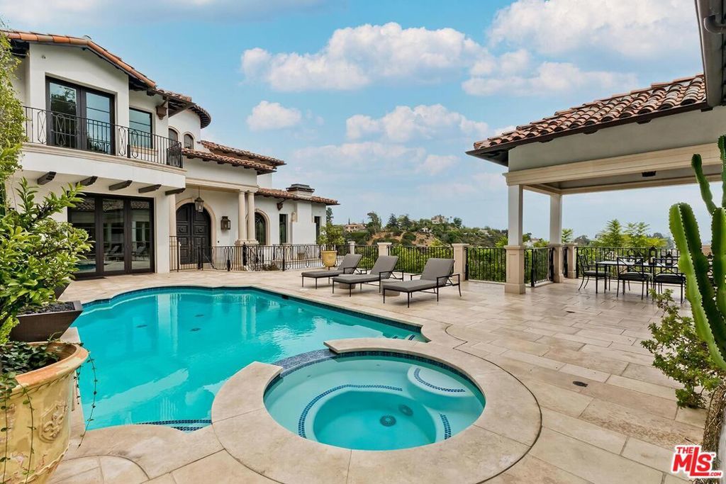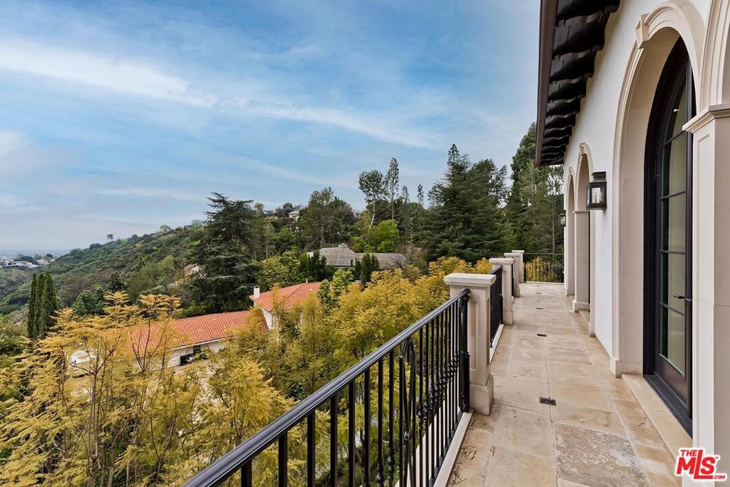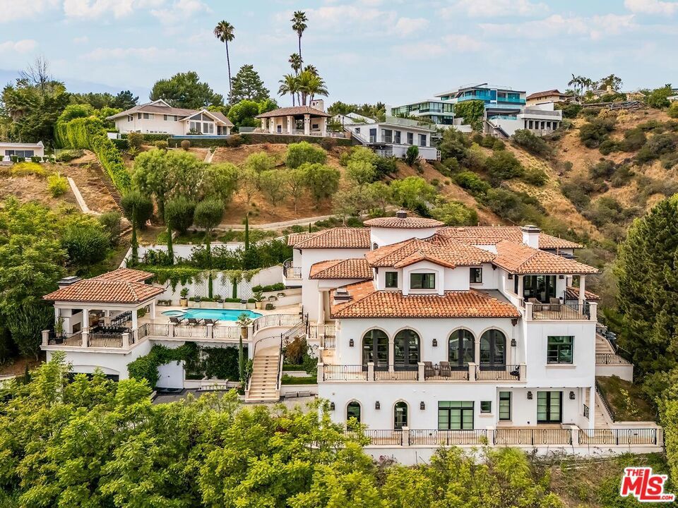 Experience the ultimate in privacy and luxury with this custom-built Bel-Air estate, showcasing designer finishes and meticulous attention to detail throughout. Enter this secluded oasis through a gated driveway leading to a spacious motor court that accommodates 5+ vehicles, plus two direct-entry 2-car garages. Spanning over 8,000 square feet, the home features 6 bedrooms and 9 bathrooms, along with a game room with bar, home theater, wine cellar, elevator, dedicated office, and a steam sauna on the lower level. The chef's kitchen is outfitted with a butler's pantry, Sub-Zero and Wolf appliances, Italian Borghini marble countertops, a large center island, and dual dishwashers. The luxurious primary suite includes a private sitting area with fireplace and opens to a large balcony offering stunning city and mountain views. It also boasts dual full bathrooms with heated floors and a generous walk-in closet. Thoughtful, high-end upgrades abound, including linear air conditioning, custom ironwork, solar panels, a gas and propane backup generator, central vacuum system, laundry chute, whole-house water filtration, five-zone HVAC, and a comprehensive security system with 16 cameras. The resort-style backyard is an entertainer's dream, featuring a spectacular pool and spa with fire features, panoramic views, a cabana with full bathroom, and a fully equipped outdoor kitchen with Viking appliances, BBQ, and dishwasher. Mature landscaping envelops the entire property, ensuring complete privacy. Home is offered unfurnished.