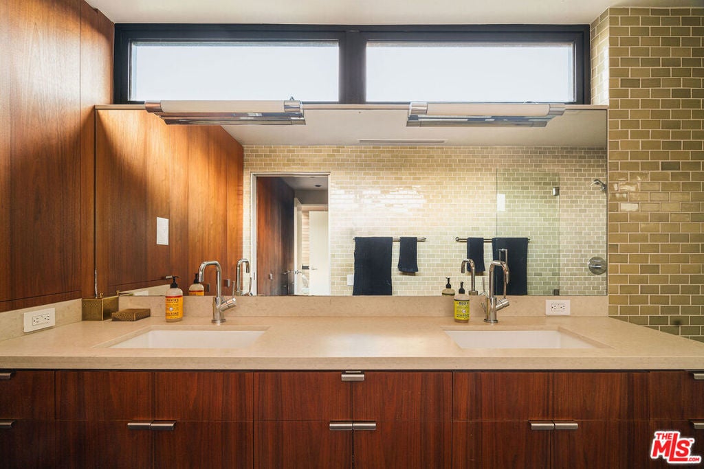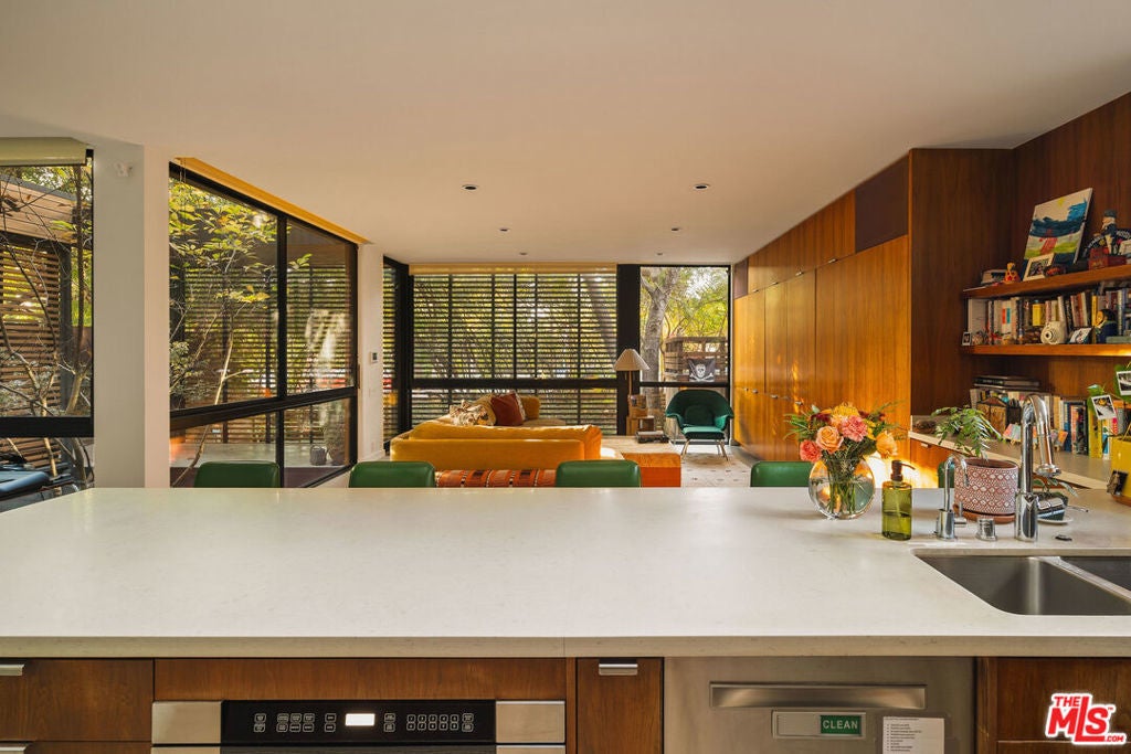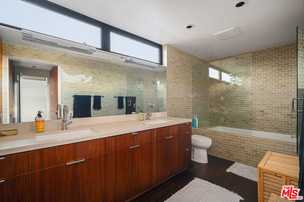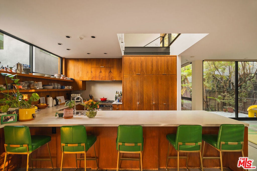 Architectural masterpiece in Venice, designed by renowned architects Marmol Radziner for Leo Marmol himself. This spectacular home offers 3 bedrooms, 3 bathrooms, plus a screening room and an office, all with warm modern organic design, sophisticated finishes, and unparalleled craftsmanship. Published in Architectural Digest and Dwell, this residence was designed with indoor-outdoor flow in mind. The interior features walnut cabinetry, Heath ceramic tiles in the bathrooms, and expansive walls of glass that bathe the home in natural light while connecting the refined living spaces to the lush, private gardens. The dramatic double-height chef's kitchen is a culinary dream, complemented by an open living/dining area perfect for entertaining. All three bedrooms are found upstairs. Outdoors, enjoy an approx 700 SF covered living space with a fireplace, ceiling heaters, and a landscaped backyard. Located just two blocks from Abbot Kinney's boutiques, galleries, and restaurants, and minutes from the beach, this gated property offers the ultimate Venice lifestylea private retreat designed to recharge and inspire.