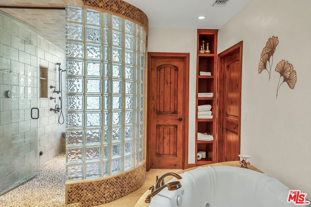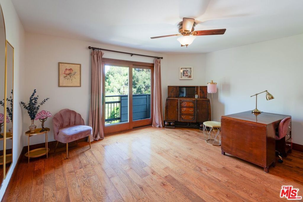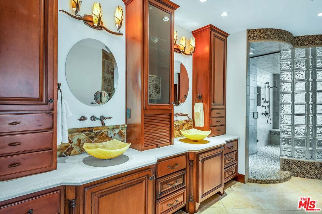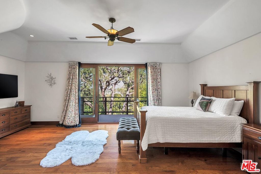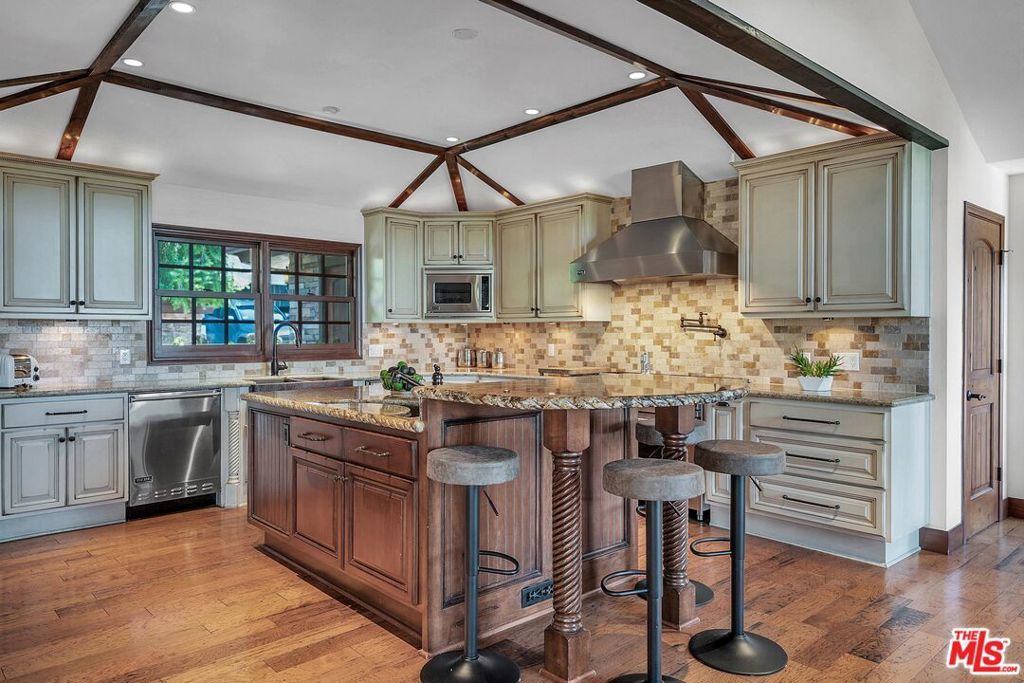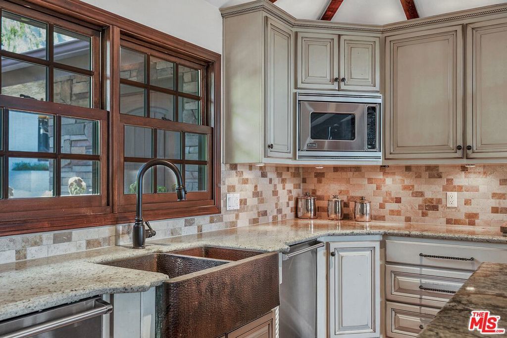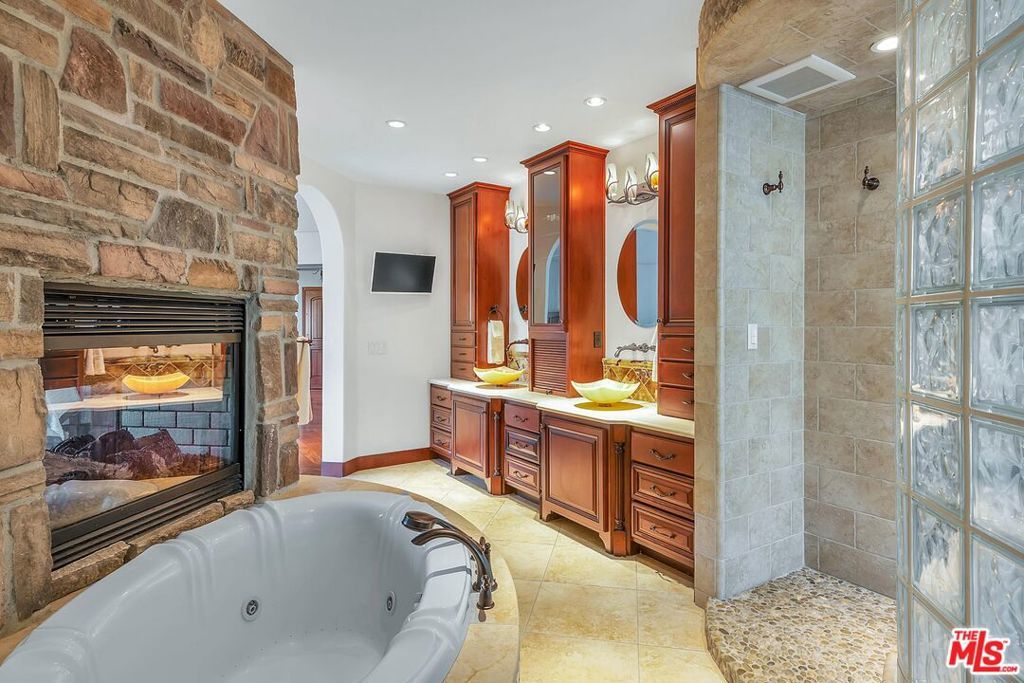 Set on a quiet cul-de-sac, this four bedroom, three and a half bath Studio City estate feels like a Lake Tahoe escape while offering LA convenience. Surrounded by sweeping unobstructed views and lush greenery, the home is designed for seamless indoor outdoor living with floor to ceiling glass doors opening to expansive wraparound decks. Inside, warmth and character abound with four fireplaces, a sprawling wine cellar, and a spa inspired primary suite featuring a rock pebble steam shower and soaking tub. The chef's kitchen is a true centerpiece, outfitted with Viking Professional appliances, handcrafted cabinetry, hammered copper sinks, dual pantries, two dishwashers, and a hand hewn granite island with a distinctive roped edge. The grounds feel like a private mountain retreat with a footbridge spanning a cascading waterfall and tranquil patios tucked into the landscape, while a lower level unfinished space offers flexibility for a future guest suite or ADU. Just minutes from major studios, Harvard Westlake, the Westside, and Ventura Boulevard's premier shopping and dining, this rare hideaway offers the perfect blend of Tahoe style serenity and Los Angeles lifestyle.