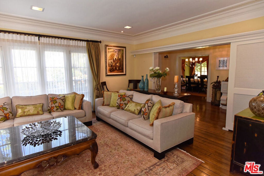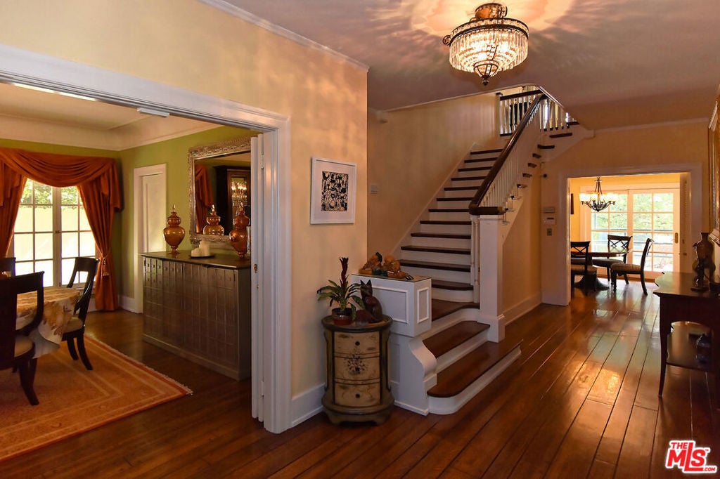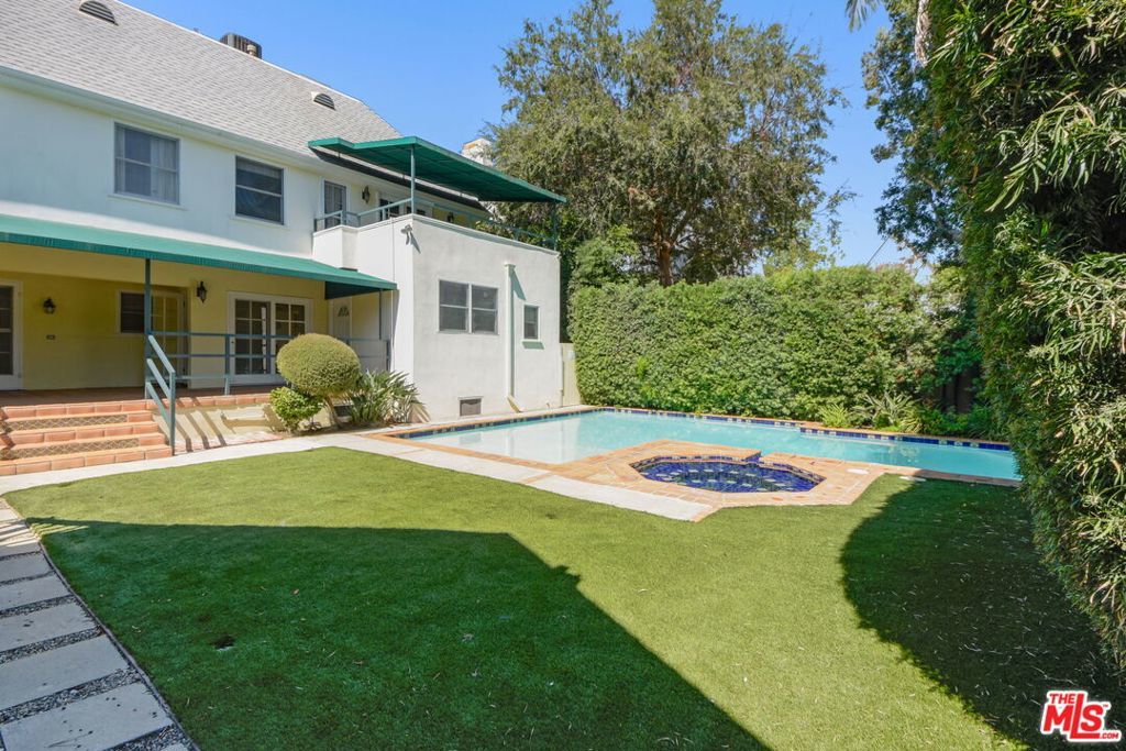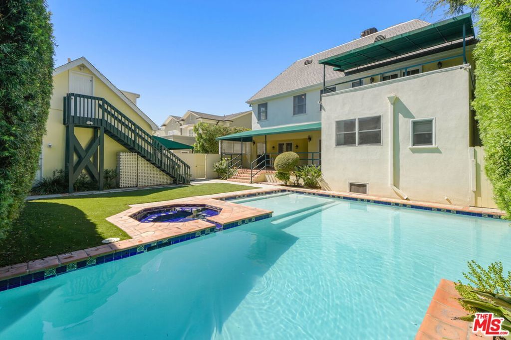 This Country English is in the heart of prestigious Hancock Park and close to Larchmont Village in Windsor Square! This rare gem is totally updated with 5 bedrooms, 5-1/2 bath, plus a bonus room above the garage. It is in great move-in condition! The attractive red entry door opens to the newly refinished gleaming hardwood floors and the center hall hardwood stairs. The sunlit foyer leads to a generous living room with a cozy fireplace on the right, and a dining room designed for formal gathering on the left, adjacent to the butler's pantry and remodeled kitchen which showcases a 6 burner Thermador stove and a Sub-zero refrigerator. Breakfast can be served in the dining room while enjoying the view of the serene backyard and sparkling pool. Have a chat with a family member or friend in the family room/den. There is also a bonus room above the garage. A 3/4 bath sits between the pool and the garage for extra convenience after a swim. First floor also features an impressive half bath and a maid or guest quarter with a full bath. Upstairs has four well sized bedrooms: two bedrooms share a Jack and Jill bath, a guest bedroom is an ensuite with a spacious bath, and the master suite is a retreat offering a fireplace, jet tub, separate shower with steam and walk in closet. One of the Jack and Jill bedrooms leads to a balcony overlooking the backyard with a green lawn and pool. A bonus room sits on top of the 2-car garage that may be used as a hide-out or for your hobby projects. Valuable storage space is available in the attic. The basement includes the security system and the two zone air conditioning. This gem offers a superb location, everyday comfort, proximity to your beloved shops, cafes.....The best of central Los Angeles living!