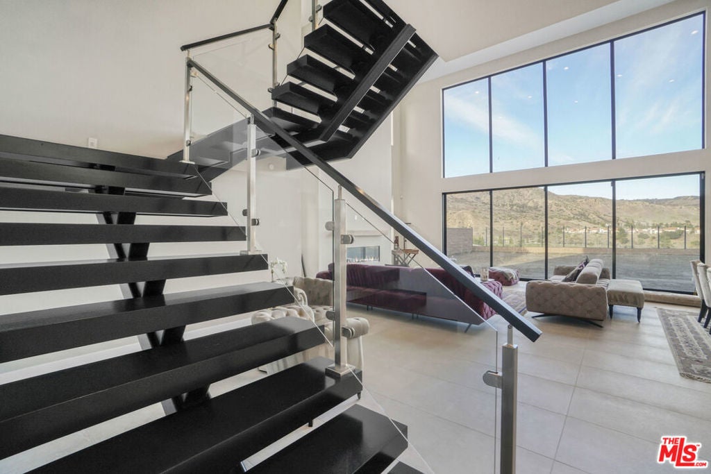 Welcome to this remarkable, luxury three story estate ,"Santi Model" nestled in the prestigious Westcliffe community of Porter Ranch Hills. The design seamlessly combines elegance and practicality, creating inviting spaces ideal for both relaxed family gatherings and sophisticated entertaining. With exquisite finishes, expansive layouts, and carefully selected amenities, every inch of this home has been crafted to offer a refined living experience, ensuring both residents and guests enjoy the perfect balance of comfort and luxury. As you approach, the impressive facade offers a glimpse of the elegance inside. Upon entering, you'll be struck by the grand open-concept design, with soaring ceilings that span all three levels, creating an overwhelming sense of space and grandeur. The oversized stacking doors seamlessly connect the indoor living areas with the outdoors, flooding the interior with natural light and framing breathtaking panoramic views of the city and mountains. This feature not only enhances the visual appeal but also offers a serene backdrop to everyday life. From the stunning flooring to the bespoke cabinetry, every detail has been meticulously crafted to create a harmonious and luxurious atmosphere. The gourmet kitchen is truly a chef's paradise, boasting a spacious island that serves as both a practical workspace and a hub for socializing. Equipped with high-end WOLF and SUBZERO appliances, sleek stone countertops, and ample storage, it's designed for both culinary creativity and effortless entertaining. Additionally, a second kitchen provides the perfect setup for a private chef, adding an extra level of convenience and sophistication. Escape to the luxurious primary suite, a serene retreat featuring breathtaking views, a charming outdoor patio with a cozy fireplace for cool evenings, and a spa-inspired bathroom complete with a spacious walk-in shower. Each of the generously sized bedrooms is thoughtfully designed to ensure both comfort and privacy, offering large closets and easy access to beautifully upgraded bathrooms. Step outside to discover a sprawling backyard with limitless potential to create your own resort-style oasis. For movie lovers, the private theater room offers the perfect environment to enjoy films in comfort. Fitness enthusiasts will appreciate the dedicated gym room, while those in need of a home office will find the elegant workspace both inspiring and functional. The top floor is designed for next-level entertaining, featuring its own private bathroom and shower for added convenience. Stacking doors open up to a balcony with spectacular views of the city lights, providing an enchanting setting for evening gatherings. Whether it's a lively party or a quiet evening, this versatile space enhances the overall appeal of the estate. This home is thoughtfully equipped with custom speakers and Wi-Fi hot spots throughout, enhancing both its aesthetic appeal and overall comfort. Solar panels further boost energy efficiency, making this estate as sustainable as it is luxurious. Offering an unmatched living experience, this one-of-a-kind property is truly a must-see. Schools close by: Sierra Canyon, PRCS. Walking distance to shops, restaurants, movie theater, parks, golfing and grocery stores. Schedule your private tour today!