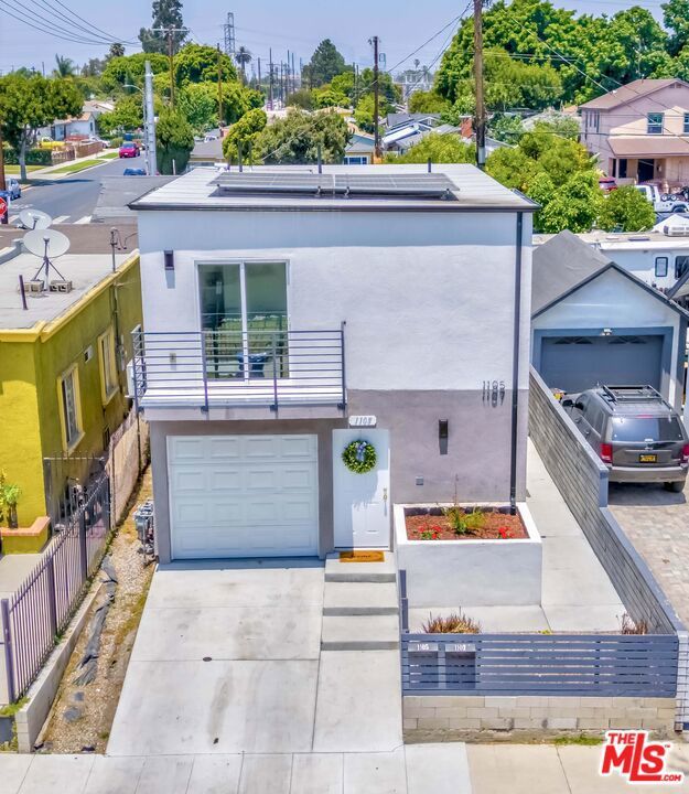 NEWER CONSTRUCTION! New Build in 2022. Why rent when you can OWN?! Welcome home to this affordably-priced 2022 built contemporary single-family, move-in ready dwelling with detached ADU for income potential. In the heart of Los Angeles, pull into your private driveway or use the one-car garage and enjoy the modern open first floor plan you'll call home. Imagine having breakfast coffee at the sleek kitchen island or entertaining friends and hosting family holiday dinners in this open room style living/dining area with recessed lighting and a convenient powder room. Planned for privacy, the upstairs second story boasts two primary-size bedrooms, each with its own en suite contemporary bathroom. One of the bedrooms features sliding glass doors out to your private balcony where you can relax and enjoy our sunny CA weather. Bedroom two features a walk-in closet. This home has washer/drier hook-up, hardwood style floors, recessed lighting throughout and heating and air conditioning. Plus, out back, there's a bonus 1-bedroom, full bath, 379.25 sf ADU with heat/air conditioning, which is perfect for a family member or rental income. The solar panels are paid for making this an extra feature for low-cost electricity. Separate gas & electric meters for each unit. Best of all, is its location, location, location. Close to all major freeways, public transportation and the FREEDOM PLAZA boasting the best stores, restaurants, coffee shops, and landscaped walkable space. This property won't last. It qualifies for the DREAM HOME LOAN PROGRAM. Act now. *Furnished photos are virtually staged.