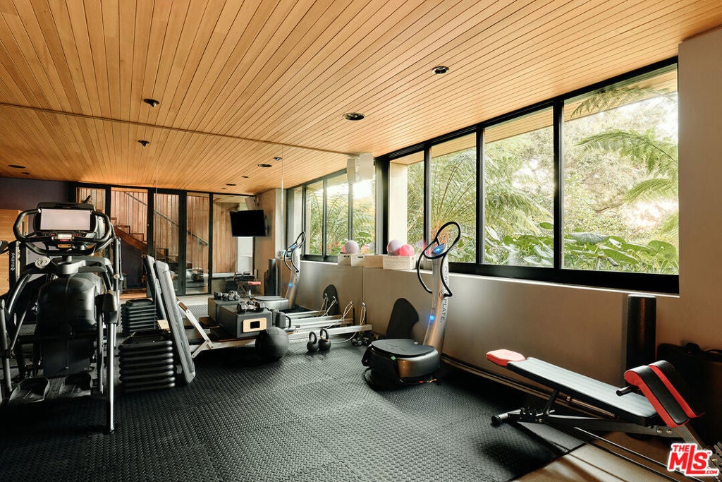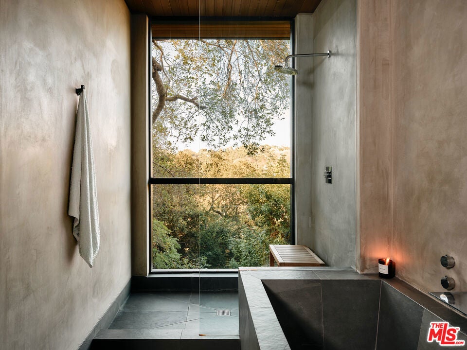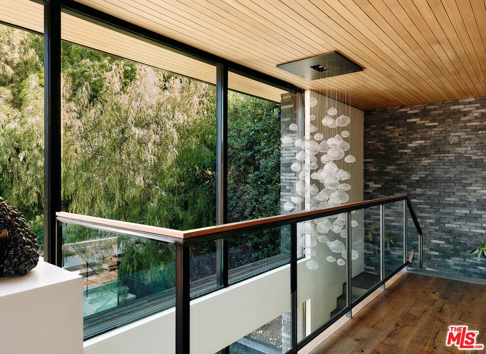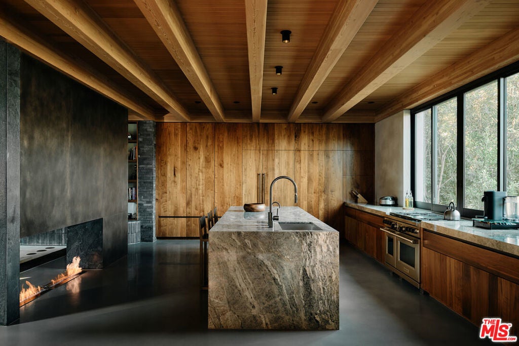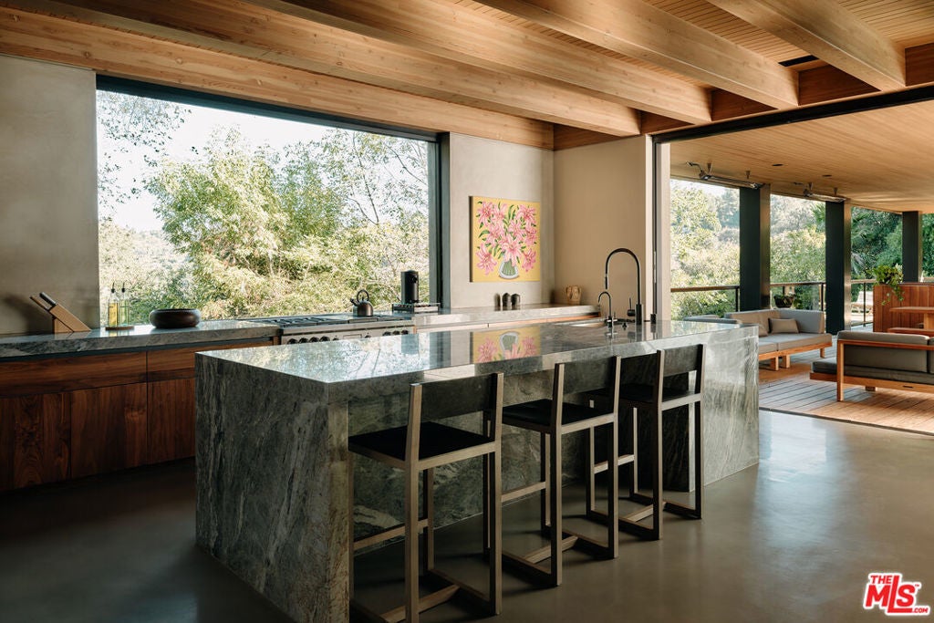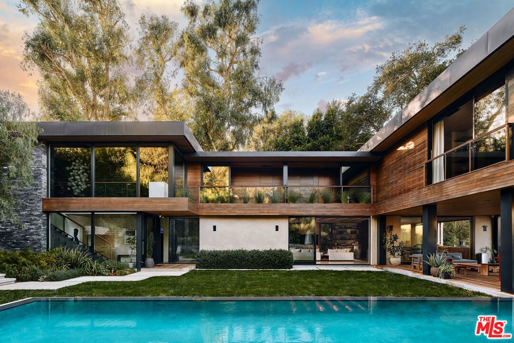 Nestled within the prestigious gated enclave of Oak Pass Road in Beverly Hills, this 5,442-square-foot modern sanctuary embodies a rare synergy of architecture and nature. Positioned on a peaceful .32-acre lot, this 3-bedroom, 5-bathroom retreat offers a secluded haven with panoramic canyon and hillside vistas. Thoughtfully crafted with wood, stone, glass, and fire elements, each room welcomes the outdoors through expansive floor-to-ceiling glass, creating a zen-inspired atmosphere for ultimate relaxation.The home's L-shaped design and sculpted landscape enhance privacy, embracing the surrounding natural beauty. A dramatic two-story atrium fills the space with light and greenery, complemented by floating fire features and suspended gardens that deepen the sense of calm. Flowing seamlessly from the formal dining room, the open living area connects to an expansive kitchen with dual sided fireplace, that opens to the outdoor covered lounge area for effortless entertaining. The primary suite appears to float above a saltwater infinity pool, offering breathtaking views, while two guest suites rest under the canopy of a majestic 100-year-old oak tree.Terraces along the property reveal sweeping views of the private backyard and surrounding mountains, with an inviting spa and lounge area designed for alfresco dining and gatherings. A dedicated gym and wellness area, private studio/office, theater room, and an outdoor kitchen with a fire pit complete this residence, a true celebration of refined, tranquil living in an extraordinary setting.Oak Pass Road is an exclusive gated neighborhood in Beverly Hills Post Office situated west of North Beverly Park, with only 42 private residences offering unparalleled access to the shopping, dining and nightlife of Rodeo Drive and the iconic Beverly Hills Hotel. Simo Designs.