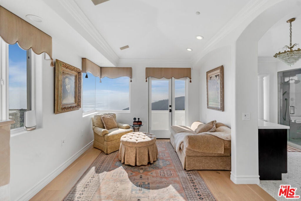 Welcome to Paradise, often called the Mini Ritz-Carlton! One of the rarest properties perched atop a hilltop with only two other properties with 360 degree ocean and canyon views in the Laguna Sur Gated Community. This 6600 SF 6 Bed, 8 Bath Mediterranean Majesty sits on a half acre of sheer delight perfect for entertaining and enjoying coastal living at its finest. Reimagined by award winning designer Nathan Fischer to preserve the original charm while adding modern elegance throughout. Fall in love with the seamless flow designed to replicate the shape of a heart with stunning architecture and views in every corner. Enter to custom made dual iron stairs and chandelier that opens to a stunning entertainment room with soaring ceilings flowing to a private dining room on one side and an elegant library on the other. Chef's will delight with all new Viking appliances, including 3 ovens and a butler's kitchen as well as a butler elevator. The kitchen flows to an adorable family room, large laundry room with new large capacity washer dryer and an attached 3 car garage. The main floor also boasts three bedrooms with attached bathrooms, one of which enjoys stunning ocean views as well as a pool room and gym. The second floor enjoys a massive entertainment room complete with a bar and fireplace. Two large sized bedroom suites and jaw dropping master suite complete the second floor. The master suite enjoys a fireplace, a seating area with ocean views, a massive walk-in closet and a bathroom with dual showers, a jet tub and dual vanities. The resort style outdoor areas are a true entertainer's paradise with several floors and areas of seating, a massive infinity pool with solar panel heating system, waterfalls, two fire tables and a sauna all with ocean and canyon views. There is an enchanting path that goes through the canyon and down to Laguna Beach as well as the Top of the World viewing point. This home enjoys the finest finishes including countless custom features, European Oak hardwood floors, designer fixtures, smart bathrooms and lighting, alarm system, surround sound speakers and wine refrigerators to name a few. Adored by the same family since 1997, come feast your eyes on this once in a lifetime opportunity to own truly one of the rarest properties and the home of your dreams. Must see to believe. Learn more at 8SaintTropez.com.