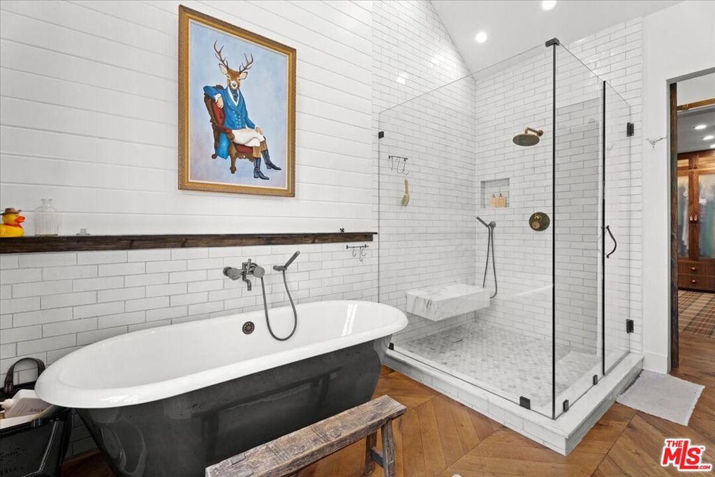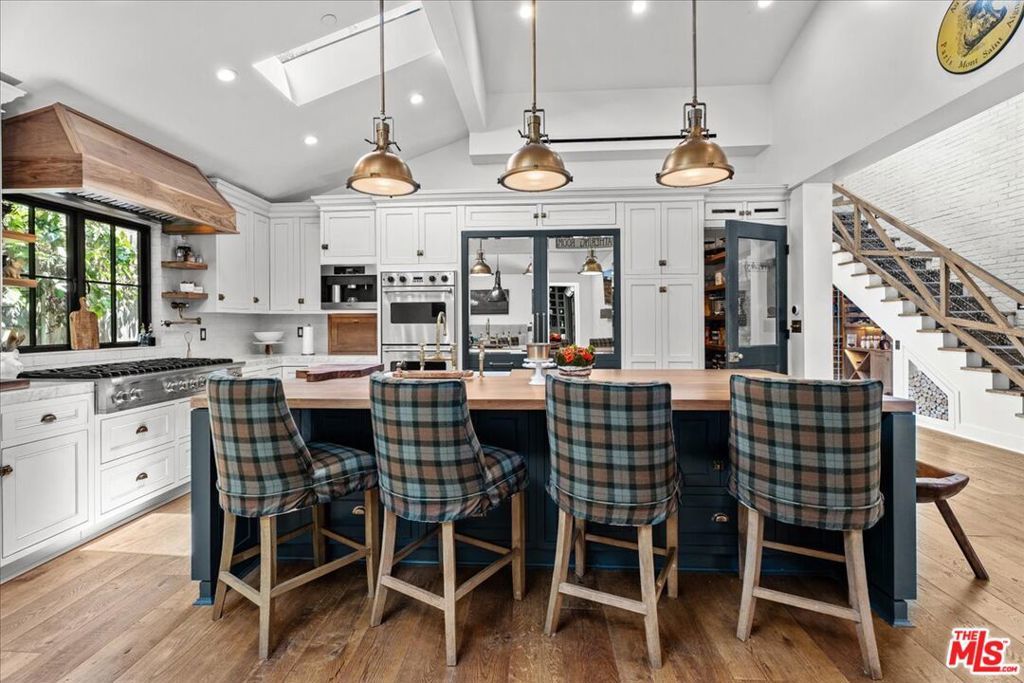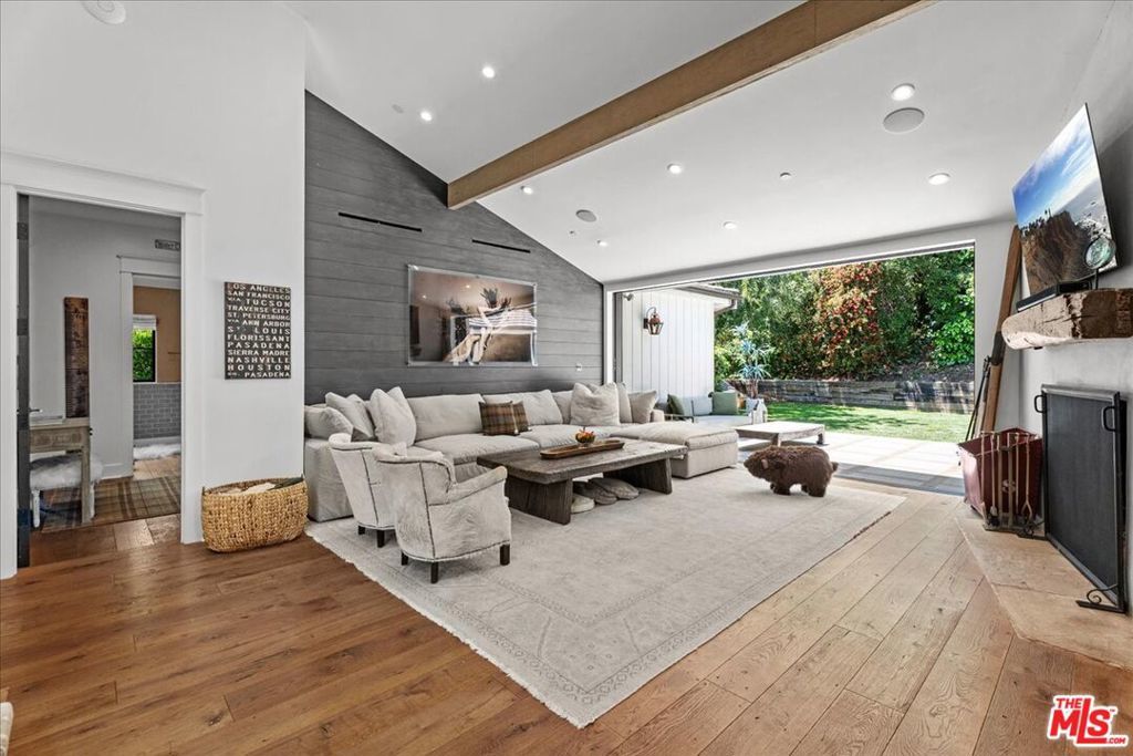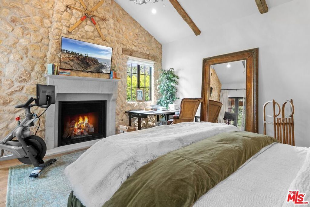 Sophisticated Hollywood Hills Sanctuary Under $4.5 Million. This meticulously crafted 5-bedroom, 5-bathroom residence occupies a prime position on a tranquil cul-de-sac in one of Hollywood Hills' most exclusive enclaves. The home seamlessly blends rustic warmth with contemporary sophistication, creating an atmosphere that feels both refined and genuinely welcoming. Architectural details define every space: floor-to-ceiling windows flood the interiors with natural light, while four distinctive stone fireplaces anchor the living areas with organic texture and warmth. The thoughtful layout facilitates both quiet (interior soundproof walls) daily living and effortless entertaining, from intimate dinners to larger gatherings. Premium finishes elevate the experience throughout. Farrow & Ball custom paint creates depth and richness on every wall, while Forbes & Lomax switch plates add subtle luxury to the smallest details. The kitchen showcases top-tier appliances, including a custom beveled mirror-adorned Sub-Zero double-door refrigerator that serves as both function and art. The home features carefully curated antique and vintage touches throughout, including antique French limestone for the fireplace hearth, antique Tuscan farmhouse stone on the primary bedroom wall, hundred year-old reclaimed wood beams, vintage French oak flooring from the Lorraine region of France and authentic Tartan carpet from Scotland. The century-old solid reclaimed wood beams fit perfectly with the other historic and vintage elements of the home. The design philosophy balances comfort with elegance, imagine morning coffee on the porch swing, afternoon fires in cooler months, and evening cocktails at the formal indoor (soundproof) bar or on the expansive veranda. Each of the five bedrooms offers generous space and privacy, while the spa-inspired bathrooms provide daily retreat moments. Practical luxury extends to conveniences like direct garage access, while the home's position ensures both privacy and accessibility to the broader Los Angeles landscape. This is a residence where exceptional craftsmanship meets livable luxury, tranquil serene low maintenance yard, offered at a compelling price point in one of the city's most coveted celebrity neighborhoods. Buyers should independently verify all information through personal inspection and appropriate professionals.
