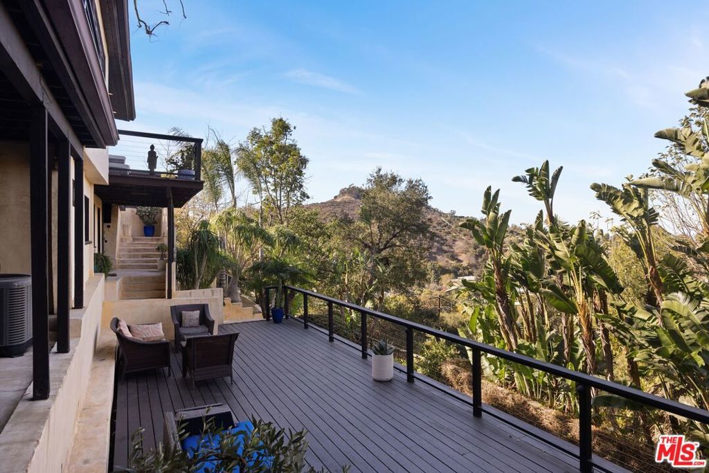 Iconic modern masterpiece offering luxury, thoughtful design, and breathtaking views. FULLY FURNISHED and move-in ready with cookware, dishes, and linens, this pristine 3-bedroom, 3-bath home also features a large family den with kitchenette as well as a converted garage perfect as a studio, office, maid's quarters or 4th bedroom. Seamless indoor-outdoor living connects wide glass doors to the expansive 2,000 sq. ft. deck with outdoor seating and a fully equipped outdoor kitchen. The lush terrace, shaded by mature trees, includes a private dry sauna and opens to a large flat yard. Light and bright with clean lines throughout, the home boasts two fireplaces, Brazilian Cherry and Oak hardwood floors, and a master suite with a full wall of built-in Walnut closets. The Bontempi kitchen showcases top-of-the-line appliances, including a Sub-Zero fridge, Miele cooktop, and Thermador microwave/oven, complemented by Carrara marble countertops and Wenge wood cabinets. Additional amenities include flat-screen TVs, a washer/dryer, and a purified filtered water system. Conveniently located just minutes from Beverly Hills and Studio City. Make this dream home yours today!
