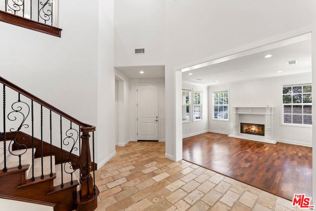 Discover this beautiful Spanish-style home on a corner lot in the coveted Malibu Canyon area of Agoura Hills. This stunning 5-bedroom, 4.5-bathroom residence is ideally located, just minutes from the beaches of Malibu, the rustic charm of The Old Place and The Road Store, and downtown Agoura Hills. The home's authentic Spanish aesthetic is enhanced inside with rich, dark Eucalyptus Hardwood and elegant Tumbled Travertine flooring, and features a custom Wrought Iron and Wood staircase. The upgraded kitchen is a chef's delight, featuring a Wolf range/oven and a wine refrigerator. Complete with an upstairs den and a two-car tandem garage, this is the perfect family home. Step out to the spacious backyard, ready for your family to take in gorgeous canyon sunsets.