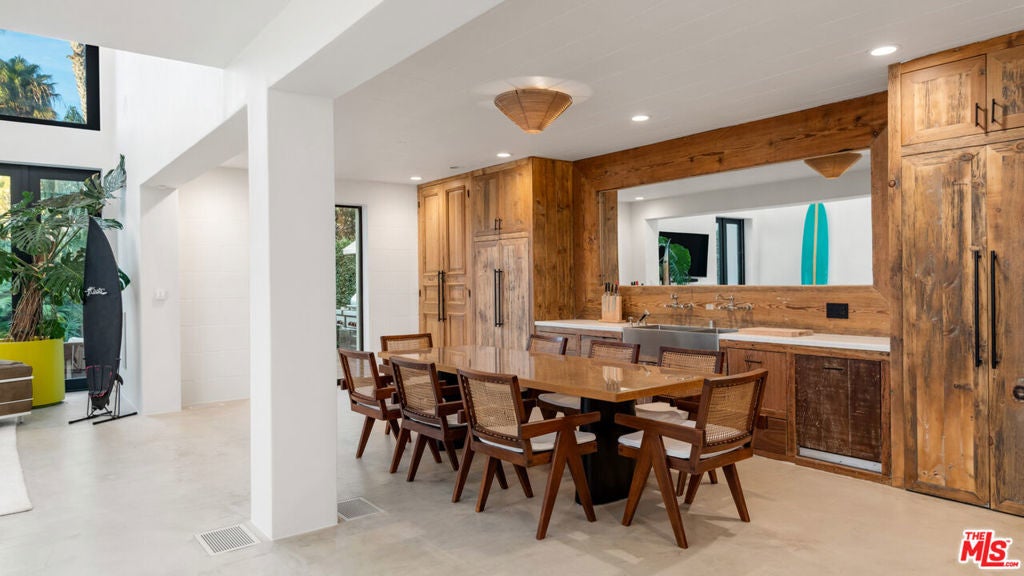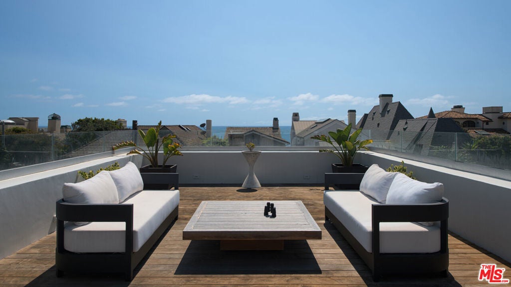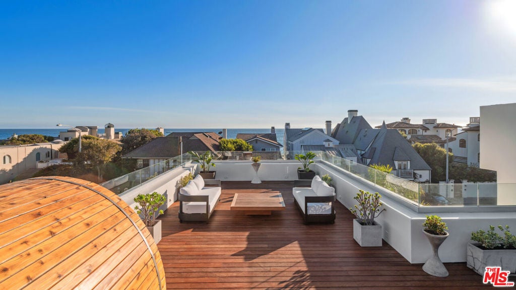 Nestled in the prestigious Malibu Colony, this stunning contemporary estate offers the ultimate in luxury, privacy, and modern design, perfect for serene relaxation and unforgettable entertaining. Upon arrival, the gated courtyard entry leads you into an oasis of tranquility. As you enter the home, you're greeted by a breathtaking two-story great room, awash in natural light streaming through expansive clerestory windows, establishing an awe-inspiring and inviting central gathering space. A cozy sitting area with a sleek fireplace blends seamlessly with the dining area and the gourmet kitchen, which boasts top-of-the-line appliances, custom cabinetry, and a versatile industrial rolling island, making it a chef's dream.The main level also features a convenient laundry room and a spacious ensuite bedroom, ideal for guests. Expansive French and glass pocket doors lead out to the private backyard, designed for outdoor indulgence. A sprawling deck provides ample space for al fresco dining and lounging by the fire pit while the lagoon-style pool and spa beckon for relaxation. The outdoor kitchen is perfect for culinary adventures under the stars, enhancing the home's appeal for entertaining.On the next level, a mezzanine gracefully overlooks the great room, providing a tranquil vantage point to admire the home's stunning architectural details. You'll find another bedroom, bathroom, and a luxurious owner's retreat on this level. This private haven features soaring ceilings, a cozy fireplace seating area with a flat-screen TV, a wall of closets for ample storage, and a private deck. The spa-like ensuite bath is a masterpiece, with a deep soaking tub, dual-head shower, sauna, and steam room, ensuring ultimate relaxation and comfort.For entertainment or additional living space, the upstairs media room provides flexibility and is easily convertible into another bedroom if desired. Ascend to the third level, where a massive ocean-view roof deck awaits, complete with a fire pit sitting area. This panoramic space is ideal for soaking in Malibu's breathtaking coastal views and enjoying warm, sun-drenched days or cool, starlit nights.This extraordinary home offers exclusive beach access in one of Malibu's most elite and desirable neighborhoods. With every detail crafted for luxury and comfort, this Malibu Colony home is not just a place to live but an extraordinary lifestyle.