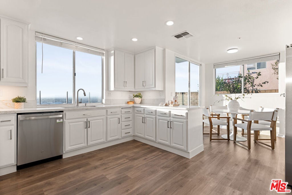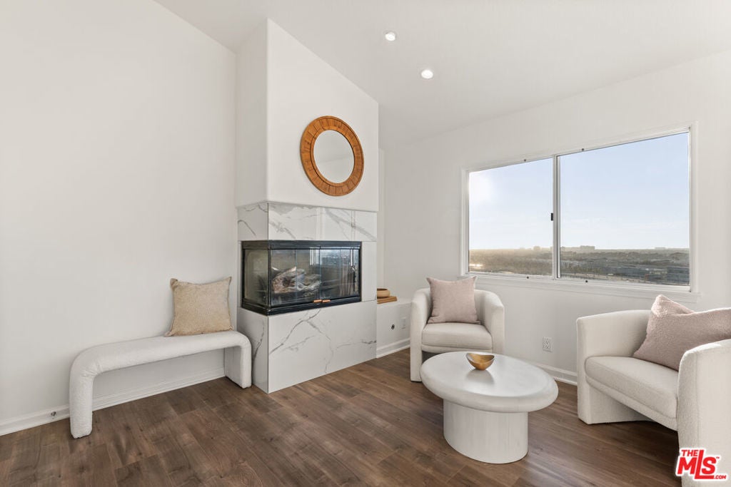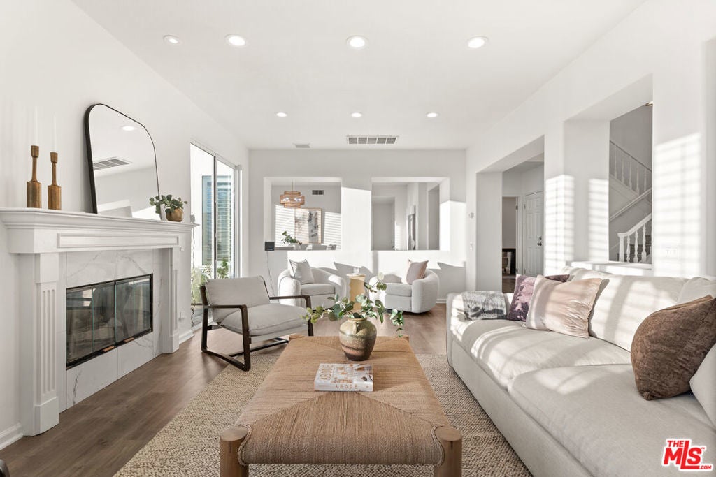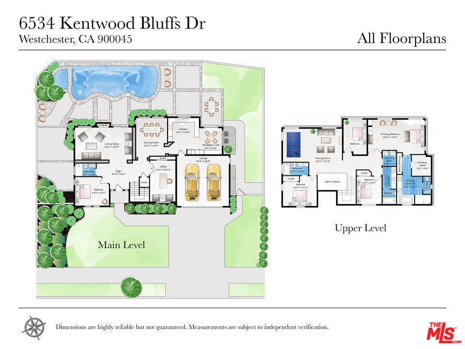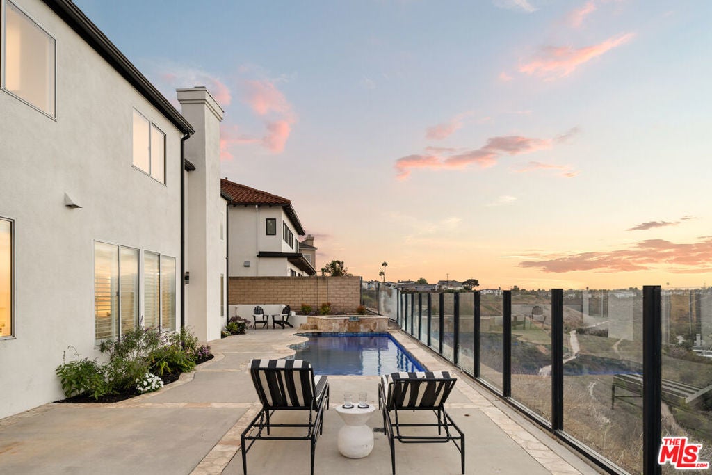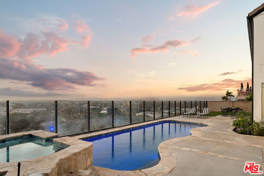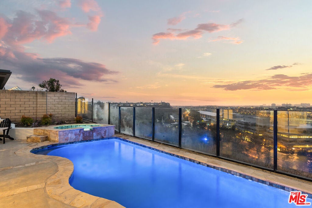 Welcome to this exquisite residence, remodeled in 2025, in the highly sought-after Kentwood Bluffs neighborhood - where modern sophistication meets timeless elegance. A dramatic two-story foyer greets you with abundant natural light, soaring ceilings, and a graceful staircase, establishing a commanding first impression. The main living areas are designed to maximize breathtaking ocean, city, and mountain views. The sunladen living room, anchored by a fireplace, opens through sliding glass doors to the backyard, seamlessly connecting indoor and outdoor living. The chef-inspired kitchen with new appliances and a bright breakfast nook also features direct access to the backyard, making everyday meals and entertaining effortless. Adjacent to these spaces, the dining room offers an elegant setting for formal gatherings while maintaining the visual connection to the home's spectacular vistas. Two flexible first-floor rooms, complemented by a full bath, provide options for a guest suite, home office, or private den. Step outside to an entertainer's paradise: a newly designed backyard with a sparkling pool and spa, all encompassed by a glass-enclosed patio that frames sweeping views of city lights, mountains, and ocean. This outdoor space balances tranquility and grandeur, perfect for quiet mornings or hosting memorable gatherings. Upstairs, a generously proportioned family room continues to capture the home's signature ocean, city, and mountain panoramas, offering a comfortable retreat for relaxation or media. The luxurious primary suite is an ideal sanctuary with uninterrupted vistas from every window, and features its own fireplace, spa tub, glass-enclosed shower, and dual vanities. Three additional bedrooms provide privacy and flexibility, including one with a private ensuite, and a second full bathroom in the hallway. A well-appointed utility room completes the upper level, enhancing the home's convenience. Additional highlights include recessed lighting throughout, custom plantation shutters, central dual zoned HVAC and a two-car garage with direct entry. Set on an expansive 8,324 sq.ft. lot with 3,340 sq.ft. of beautifully reimagined living space, this five-bedroom plus office home offers rare scale, style, and million-dollar views - all positioned in one of Westchester's most desirable enclaves in upper North Kentwood.