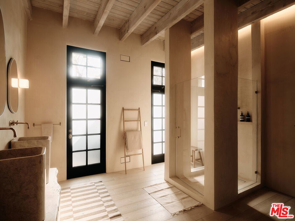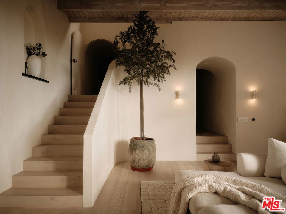 A Fred Smathers original, this Spanish masterpiece has been reimagined with exquisite attention to detail, blending timeless architecture with modern luxury. Nestled in highly desirable Nichols Canyon, just moments from Runyon Canyon and the heart of Los Angeles, the home offers both seclusion and convenience in one of the city's most coveted settings.Step into a dramatic entry with soaring ceilings, custom lime-plaster walls, and a sweeping grand staircase that immediately sets the tone. Designed for effortless indoor-outdoor living, the home features a gourmet kitchen, reimagined formal dining room, and expansive terraces ideal for entertaining. The living room is anchored by a fireplace and theater system, with French doors that open to a Spanish-style pool, spa, outdoor kitchen, and lush landscaping.The primary suite is a true retreat with vaulted ceilings, a fireplace, spa-inspired bath, private balcony, and intimate courtyard shower. Three additional bedroom suites, a tower office, and a custom wine cellar provide both versatility and sophistication. Every finish has been thoughtfully curated, from Spanish oak floors and artisanal plasterwork to radiant floor heating, integrated sound and lighting, smart home systems, and upgraded security.Outdoors, the saltwater pool and hot tub capture sunset views, while the property offers a two-car garage plus additional parking in the driveway. Located near "celebrity row" in the Hollywood Hills, this estate delivers a rare balance of privacy, luxury, and proximity to the best of Los Angeles.
