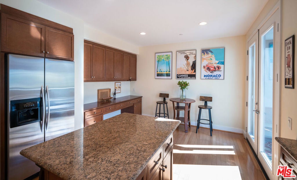 Aggressive price drop - best value in PV! Welcome home to this artful retreat. Private and light filled corner townhome that feels like a single family home, complete with private garage. Ideally located within Playa Vista, just steps away from a dog park and perfectly tucked away childrens park. The configuration of this home fills it with natural light, green top views and privacy. Walk into a sun-drenched living room with wood floors, a fireplace, and impressive high ceilings. The heart of the home is the natural wood kitchen complete with granite countertops, stainless appliances, and a generous sized breakfast nook, along with french doors that open to a tranquil balcony. Take the light soaked stairs to the top level and enjoy the generous primary bedroom with treetop views, a fireplace, and its own balcony. Boasting a large walk in closet, high ceilings, and a spa-like primary bathroom with separate tub and large shower. On the same level is a junior bedroom with an attached full bath. Lower level of the townhome offers a bonus room, a separate laundry room, and a private garage. Large crawl space/storage off the bonus room provides tons of storage space.