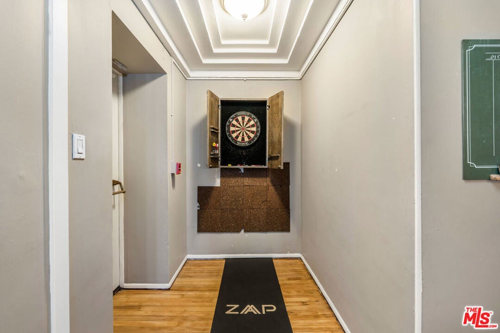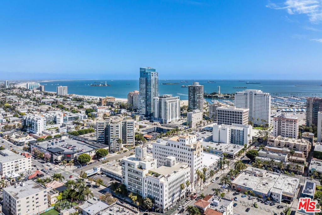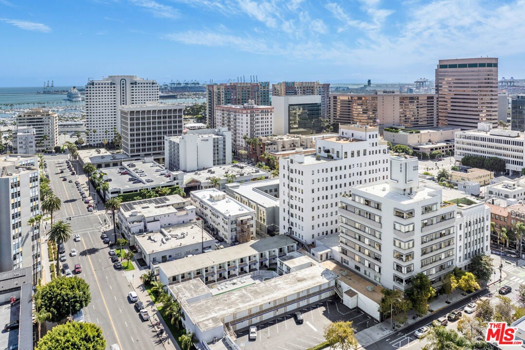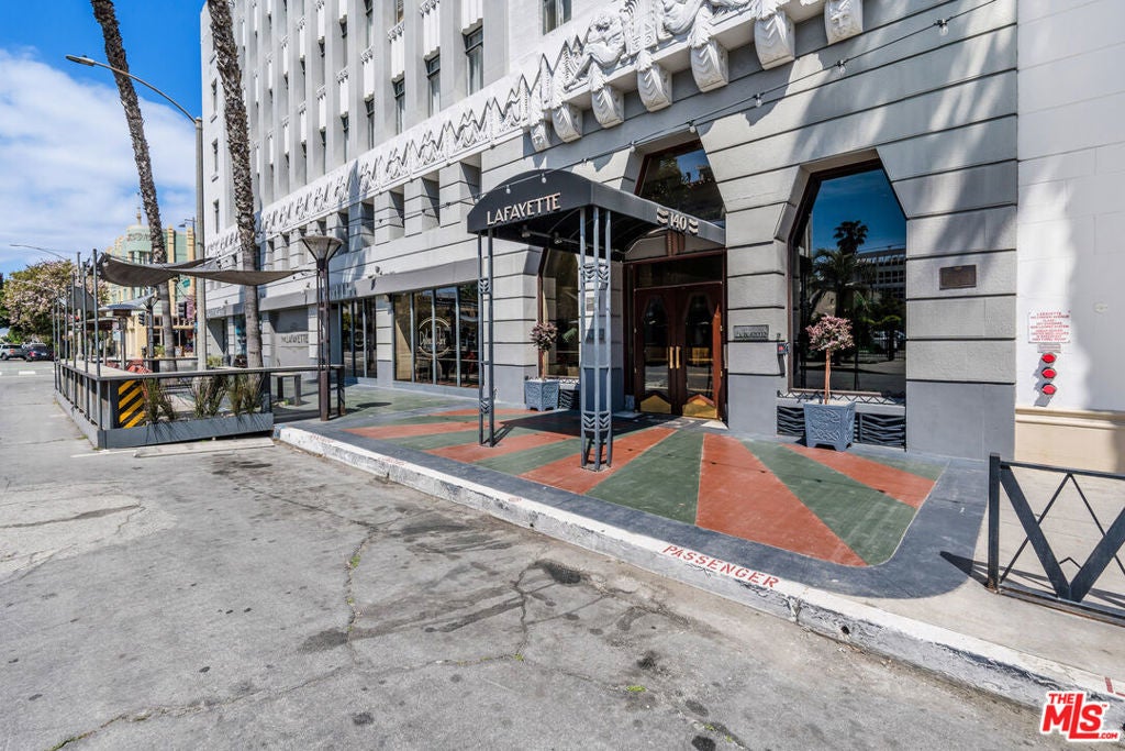 Nestled in the renowned Lafayette Condominium and located in the heart of downtown Long Beach, this exquisitely renovated studio offers an exceptional floor plan with only one shared wall. As an end unit, it's bathed in natural light streaming in through oversized windows at both corners. Inside, you'll find a custom kitchen with built-in cabinetry, quartz countertops, stainless steel appliances, and a built-in microwave. The flooring has been recently upgraded to water-resistant wood-laminate, and the ceiling has been refinished with recessed (canned) dimmable lighting for both ambiance and function. The bathroom has been fully remodeled with clean, tasteful finishes. Convenience is top-notch: quick access to the elevator and stairs. Common amenities are plentiful, including a comprehensive fitness center, a grand Art Deco lobby with a relaxing library and lounge, and an ornate copper elevator adding historic charm. On the rooftop: enjoy sweeping views of the city and ocean from a handsome deck and solarium. There's also a spacious billiards room (pool table, shuffleboard, etc.), an outdoor patio with BBQ areas, and for pet lovers, a dog washing station. Laundry facilities are tech-savvy and situated onsite. The Lafayette complex is in the East Village Arts District / Downtown Long Beach, which gives it high walkability and access to many urban conveniences.
