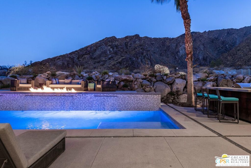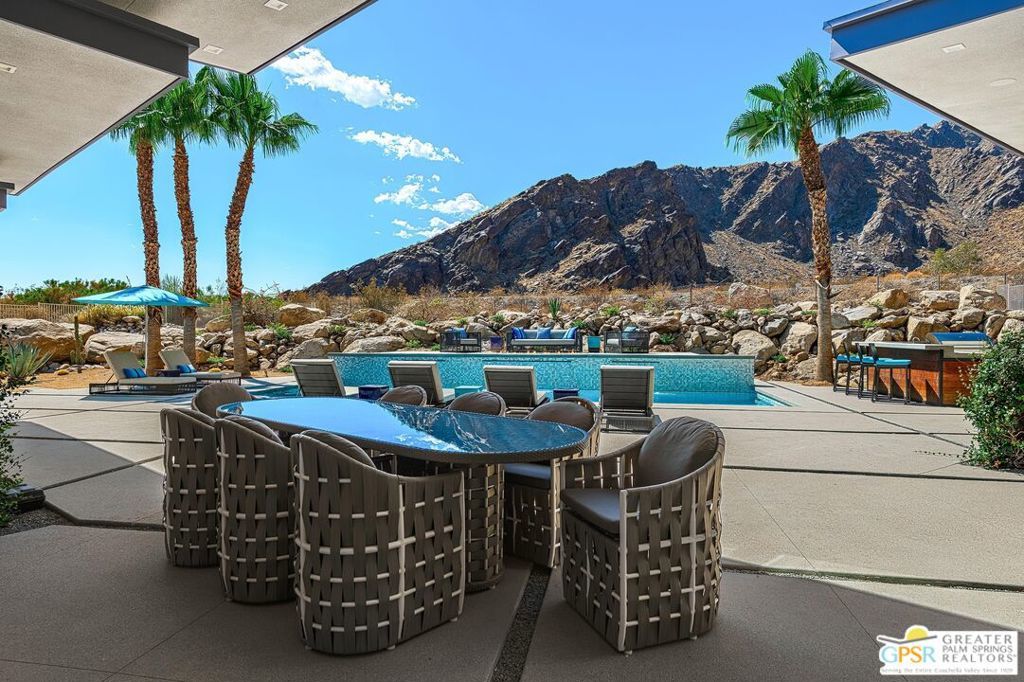 775 S. La Mirada is a modern, contemporary residence nestled in the prestigious Tennis Club South neighborhood of Palm Springs. This magnificent home boasts commanding views of the Coachella Valley, ensuring that you can enjoy panoramic vistas in every direction, including stunning sights of the majestic Mt. San Jacinto and the captivating Tahquitz Canyon. Approximately 4,317 square feet, this thoughtfully designed home features four spacious bedrooms, each accompanied by its own luxurious bath, along with an additional powder room and a convenient pool bathroom. Enjoy the ultimate in outdoor living with an outdoor shower and two inviting fire pits and outdoor kitchen perfect for entertaining or relaxing under the stars. Sustainability meets luxury with owned solar panels, providing energy efficiency. The primary suite is a private oasis, featuring a sumptuous soaking tub and a large shower that doubles as a steam shower, along with two primary closets for your storage needs. The heart of the home, the gourmet kitchen, is equipped with a top-of-the-line Bosch appliance package, along with an ice maker for your entertaining needs. For wine enthusiasts, a separate refrigerated wine room adds to the exceptional appeal of this property. Additional highlights include a spacious air conditioned four-car garage, ensuring ample parking and storage space. Experience the best of Palm Springs living where luxury, comfort, and breathtaking natural beauty come together in perfect harmony.
