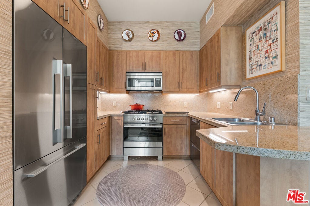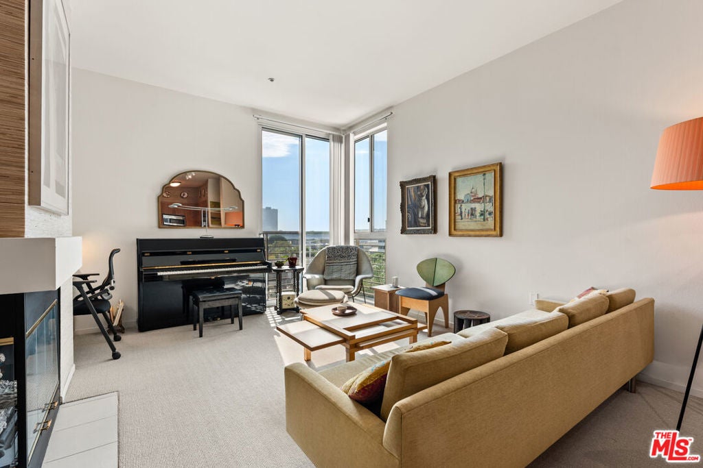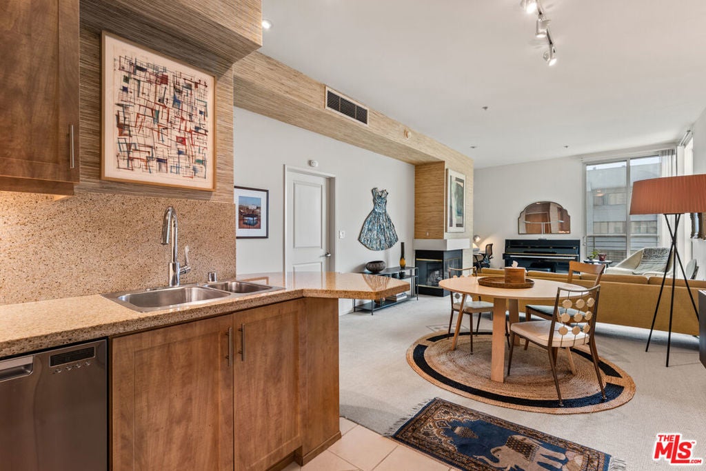 Located in the heart of DTLA's historic Little Tokyo, this top floor condo penthouse exudes a cool, New York City apartment vibe. It features the building's largest one bedroom, one bathroom floor plan, living room with fireplace and cook's kitchen with Fisher & Paykel stainless steel appliances. Custom built-ins include a modern entry cabinet, dining area bookshelves & buffet, living room bookshelves & desk plus two dressers in the bedroom's walk-in closet. Floor to ceiling windows & sliders afford city lights views and sun drenched mornings. Additional qualities include high ceilings, Juliet balconies, grass cloth wall coverings, central air & heat, front loading washer & dryer, extra storage space and assigned parking. Teramachi is a 55+ adult condominium offering a variety of amenities including a central courtyard with koi pond, fitness center, guest lounges, two-story community room, community barbecues, guest parking and 24 hour front desk/security station. Close to Little Tokyo shops & restaurants, Arts District, Grand Central Market, Union Station, Dodger Stadium, Dorothy Chandler Pavilion & Disney Hall. Welcome Home!