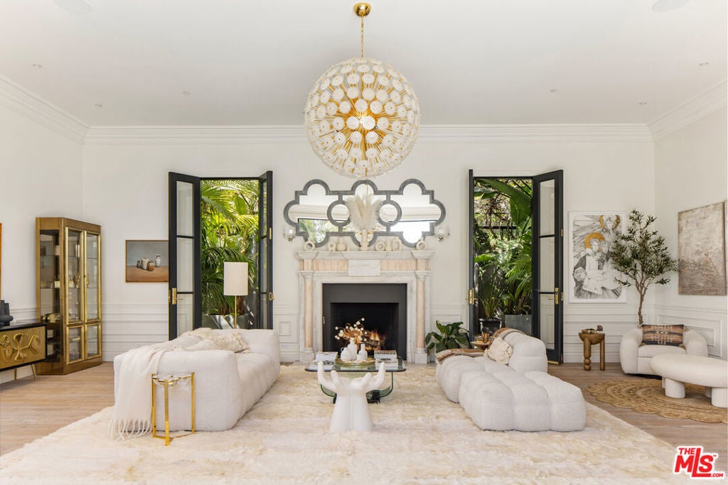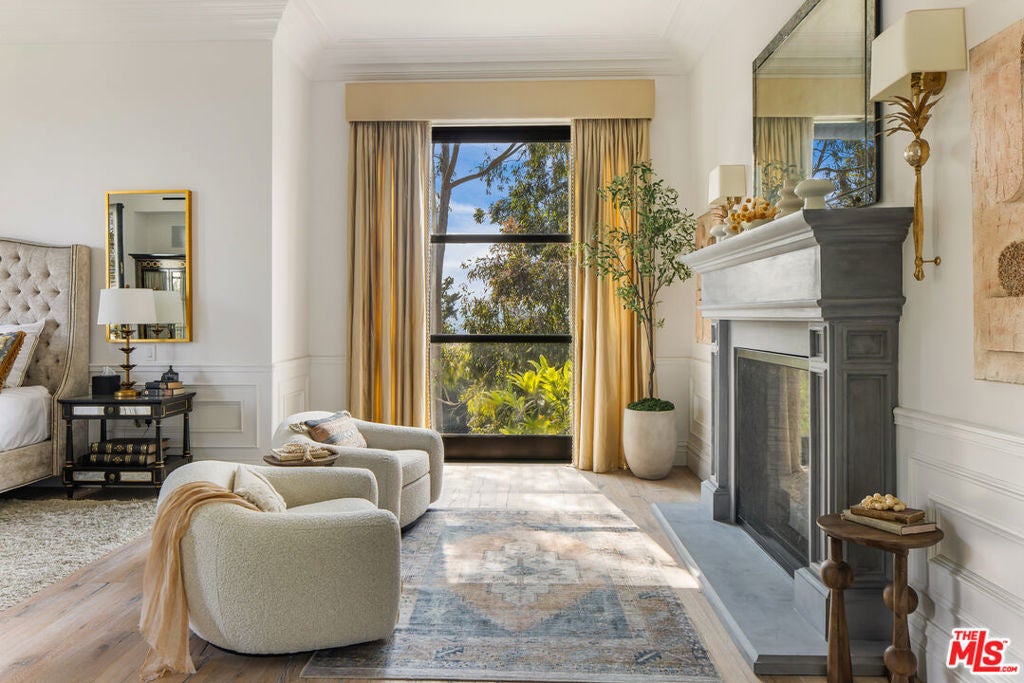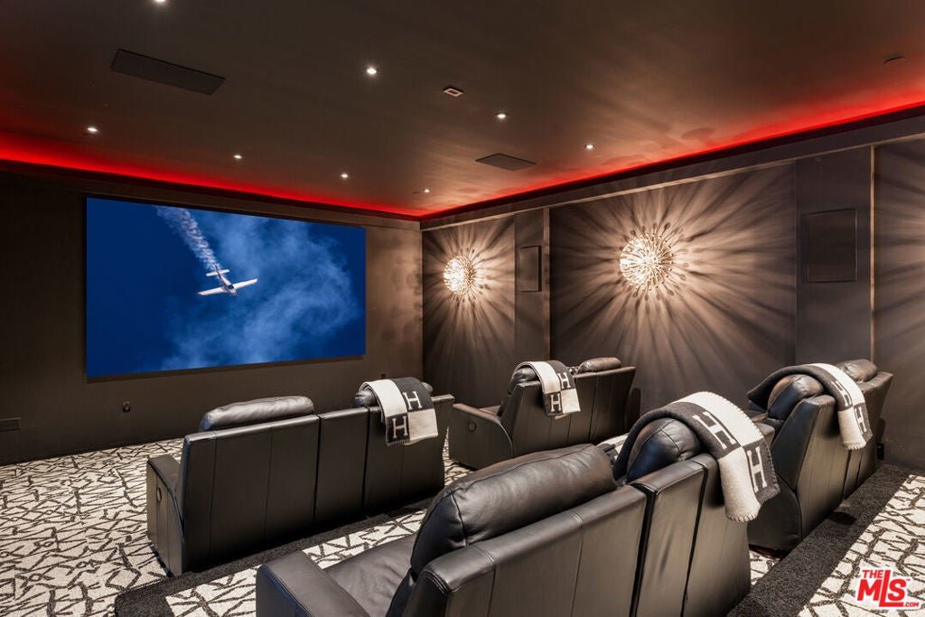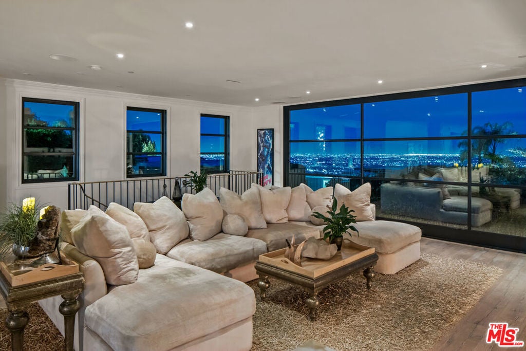 Redefining Hollywood glamour, 1457 Blue Jay Way is perfectly poised on one of the largest flat parcels along the legendary Billionaire's Row in the Bird Streets. Originally designed by celebrated architect Bob Ray Offenhauser and exquisitely reimagined by the award-winning Garratt Group, this Hollywood Regency estate blends timeless symmetry with state-of-the-art luxury. Inside, soaring 14-foot ceilings and expansive NanaWall glass doors capture sweeping city-to-ocean vistas and create seamless indoor/outdoor flow. The chef's kitchen dazzles with Calacatta gold marble and dual appliances, opening to generous living and dining spaces ideal for grand entertaining or intimate gatherings. Five bedrooms include a versatile lower-level suite with a private entrance perfect for a nanny, guest quarters, or sophisticated home office. The lower level also hosts a professional 14-seat screening room, ~500-bottle wine cellar, gym/yoga studio, and a spa retreat featuring a steam room, dry sauna, and jetted hot tub. Crowning the residence is an extraordinary rooftop garden rarely found in the Bird Streets: over 80 fruit trees, two vegetable gardens, a passionfruit arbor, strawberry patch, and herb beds underplanted with rosemary, all supported by a smart irrigation system. Outdoor entertaining spaces are private from every direction, offering tranquil moments or glamorous soires beneath the city lights.Located just minutes from the Sunset Strip and Beverly Hills, enjoy proximity to world-class dining, nightlife, and members-only venues such as the Bird Streets Club and Soho House. A rare architectural jewel, 1457 Blue Jay Way delivers the ultimate combination of scale, location, and sophisticated indoor-outdoor living - an unparalleled retreat in the heart of Los Angeles.