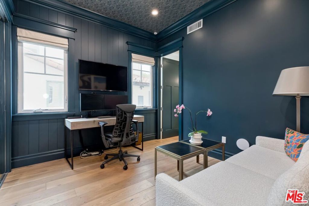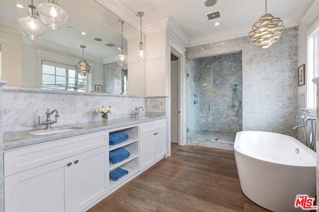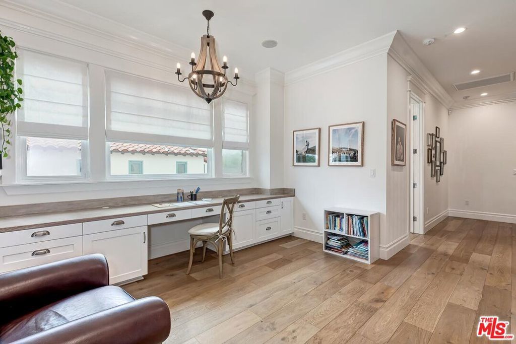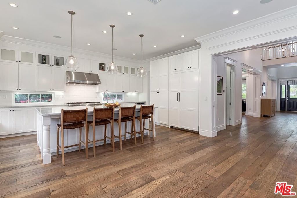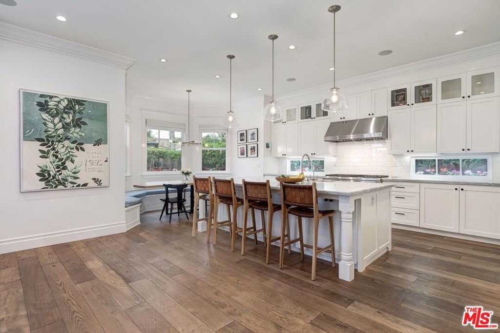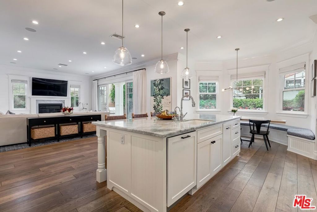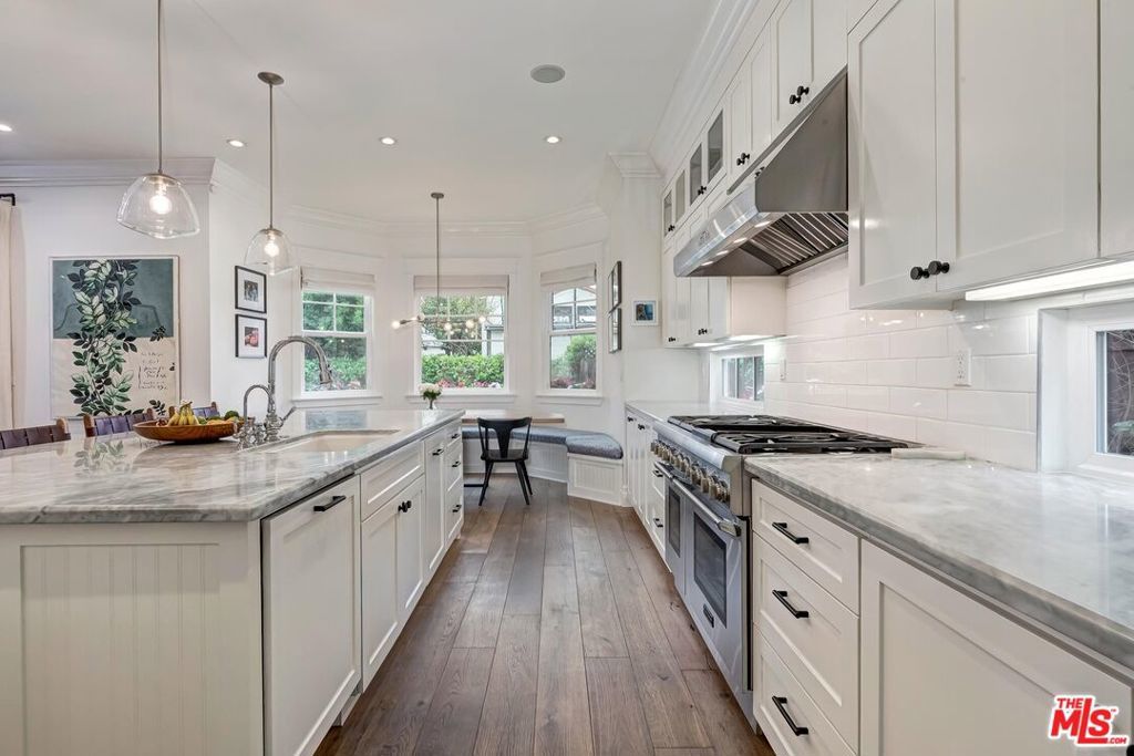 East Coast charm meets contemporary elegance in this beautifully designed home.Featuring 5 bedrooms, 6 bathrooms, and a dedicated office, this residence offers both luxury and functionality. Step inside to soaring cathedral ceilings, wide-plank oak flooring, and an open layout bathed in natural light. The chef's kitchen is a true centerpiececomplete with a spacious center island, premium Thermador appliances, marble countertops, a butler's pantry, and a custom built-in banquette perfect for casual family dining. The adjoining great room flows seamlessly to a private backyard oasis with a sparkling pool, spa, and built-in BBQideal for entertaining or relaxing. Upstairs, the primary suite is a retreat of its own, featuring a cozy fireplace and a generous deck overlooking the lush yard. The spa-like bathroom includes dual vanities, a seamless glass shower, and a freestanding soaking tub. Three additional bedrooms each have en-suite baths, and a loft-style lounge area provides extra space to unwind. A well-appointed laundry room completes the upper level. Additional highlights include dual-zone HVAC, two tankless water heaters, a two-car garage with EV charging, and abundant storage throughout. This exceptional home is designed for those who appreciate quality, comfort, and style. Located close by the prestigious and desirable Overland Elementary School. This is a rare offering in the heart of the Westside.