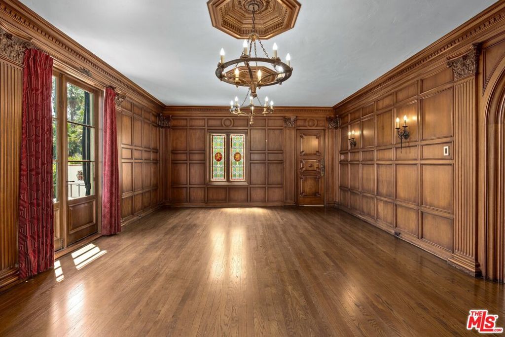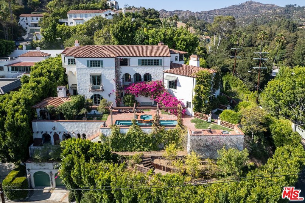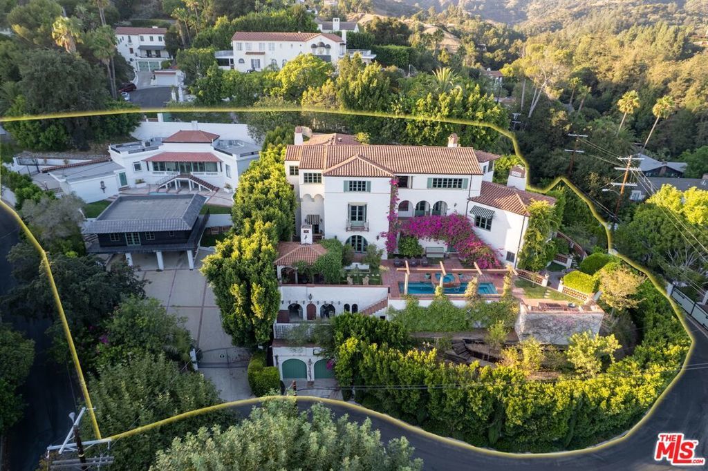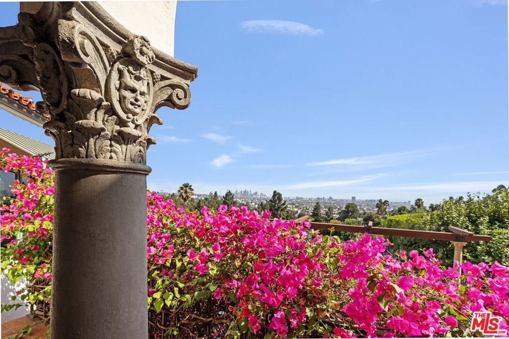 This grand Mills Act estate, known as "The Victor Rosetti Residence," is an exceptional example of Paul Revere Williams' iconic Spanish Colonial Revival style that strongly influenced California architecture. Nestled in the lush greenery of Griffith Park, the property is a sprawling compound with expansive views that, despite its impressive scale, still manages to feel warm and intimate. Superbly restored, tastefully updated, and lovingly cared for, it blends historic charm with architectural beauty in the prestigious Los Feliz Oaks neighborhood. With picture-perfect views of The Griffith Observatory and sweeping 180-degree vistas across Los Angeles, the estate conveys both the grandeur of a palatial residence and the ambiance of a true home. The main residence boasts many intricate and artistic details throughout, including a wood-paneled library, coffered and hand-painted ceilings, three ornate fireplaces, a wine room, cozy alcoves, and stained glass windows. The large kitchen, with its original floor-to-ceiling tiles, has been renovated with superior appliances while preserving its period charm. A stylish butler's pantry adjoins with a separate dishwasher, wet bar, and a large warming oven. From there, a beautifully preserved wooden swing door opens to a remarkable wood-paneled dining room and a lovely breakfast room. Additional comforts include a steam shower, an operational dumbwaiter that services all three floors, two walk-in laundry rooms, a media room with original hand-painted beams, a cozy pub nook, and a secret bookcase door leading to the bottom floor. The grounds evoke a resort-like setting with a shimmering pool surrounded by a summer lounge area, outdoor gas fire pit, and a barrel-tiled roof pergola featuring a double-sided fireplace and outdoor kitchen for al fresco dining. A secret garden, complete with a koi pond, small citrus grove, landscaped grounds, multiple fountains, and pathways offer moments of tranquility immersed in nature. Two additional spaces, each with separate entrances, full bathrooms, and kitchenettes extend the property's versatility--one has served as a sizable gym, while the other is currently occupied by 24/7 security personnel. The adjoining property enhances the estate with a newly refurbished 1-bedroom, 1-bath pool house, a newly renovated pool, and a 1500-sf home offered with approved city plans for interior completion, allowing customization to suit any need. It has its own two-car garage, two privately gated entrances, and a beautifully landscaped yard surrounding the pool. Between the two properties, there is parking for approximately 25 cars inside the gates. This isn't just a house; it's a very special experience and must be seen to be believed. Set in a quiet neighborhood, the residence feels like a private Mediterranean retreat, while still only minutes from many acclaimed restaurants, artisan shops, cafes, and bars, with a short walk to some of the best hiking trails in the city. A gem in Paul Williams' incredible portfolio, "The Victor Rosetti Residence," has had only four owners and is unlikely to come on the market again soon, making it a once-in-a-lifetime opportunity to live in a piece of architectural history.
