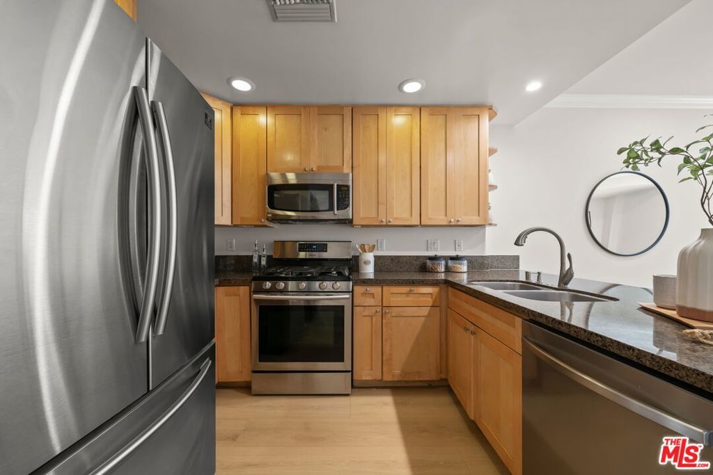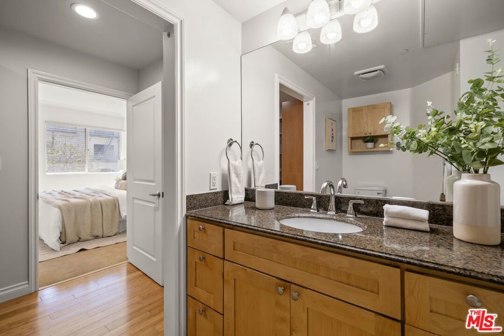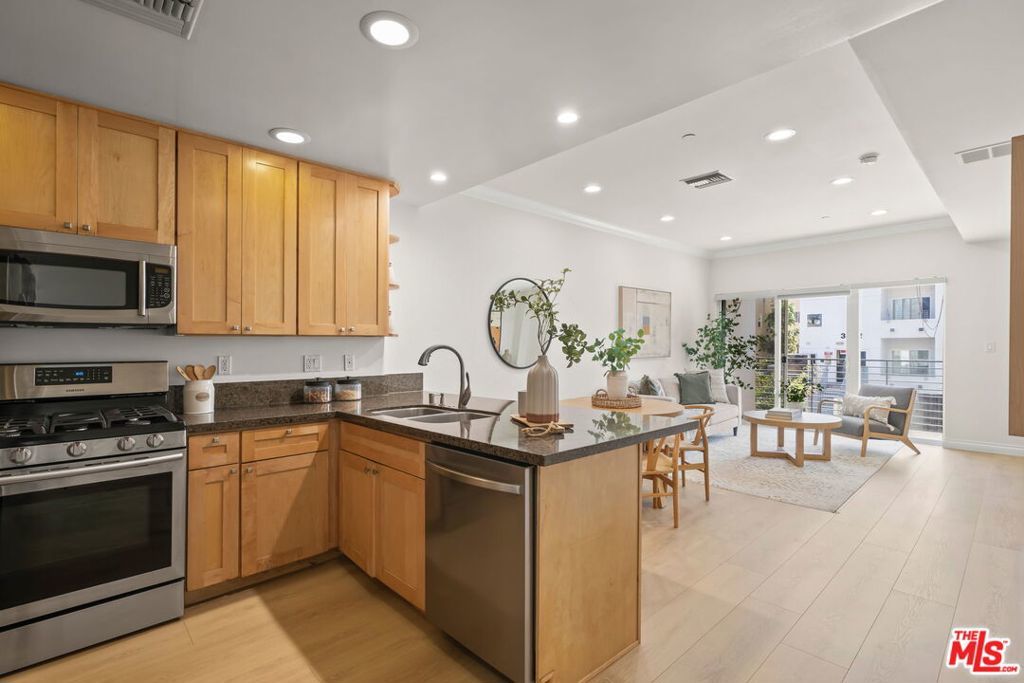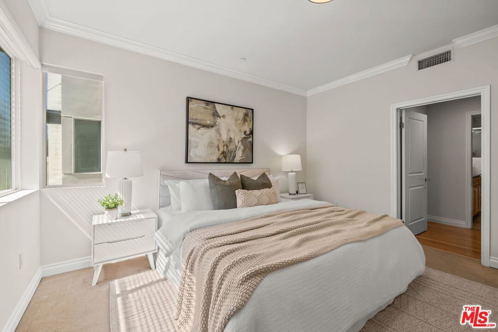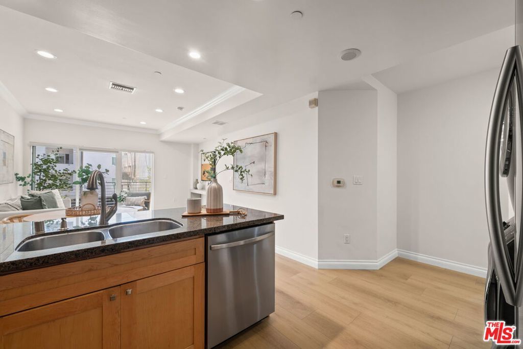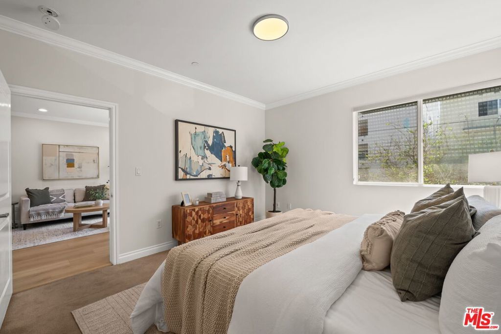Light and bright South facing 2BD+2BA unit located in vibrant Koreatown. New hard surfaced flooring in the living areas, brand new paint, and freshly refinished kitchen cabinets. The open floor plan allows kitchen, dining, and living areas to flow seamlessly. Spacious primary bedroom features walk in closet with custom built-ins and en-suite bath. Second bedroom and hallway bathroom are conveniently located for privacy at the other side of the unit. Low HOA dues include water, sewer, trash, and common area maintenance/insurance. 2 gated and secured tandem parking spaces and plenty of guest parking. Located near many markets, dining, and entertainment.