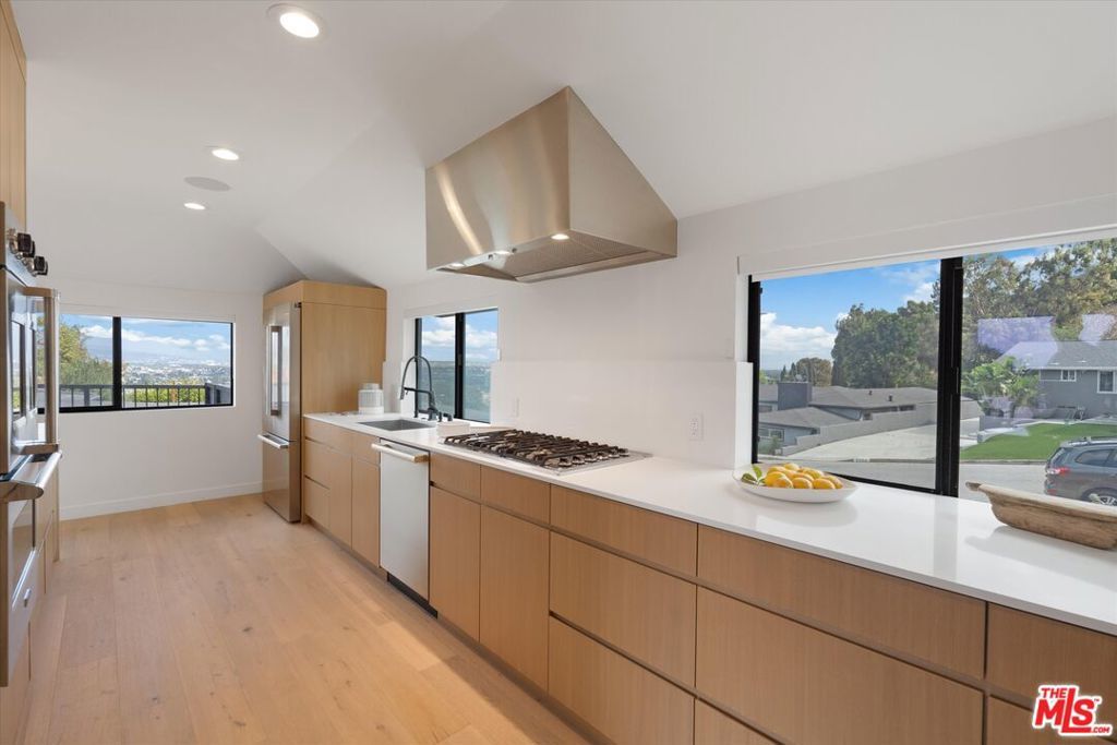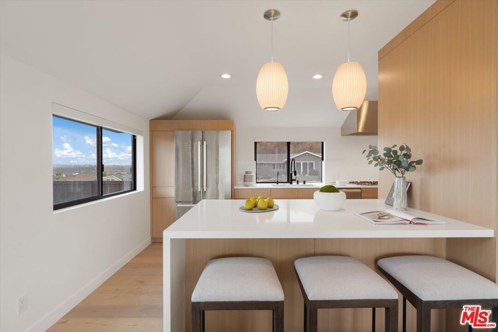 Mid-Century Architectural Masterpiece | Alloi "Syntax House" | Baldwin Vista -- Perched high in the Baldwin Vista hills, this completely re-imagined 1952 Mid-Century residencerebuilt from the ground up by Alloi Architecture + Construction, an award-winning architect-led design-build studiodelivers one of the most breathtaking panoramas in Los Angeles. Enjoy unobstructed views of Downtown LA from the front terrace and sweeping vistas of Century City and the Hollywood Hills from the backyard. Every inch of this home was rebuilt and structurally reinforced, including a professionally engineered soil-nail hillside stabilization system for long-term safety and performance. Over $1,000,000 in architectural and structural investment has transformed this property into a modern design landmark. The residence's monolithic silhouette and continuous high-performance weather-sealed envelope create a visually calm, energy-efficient living environment. Inside, a vaulted living area with custom rift-sawn white-oak cabinetry and etched-glass pivot entry door anchors the home's open plan. The chef's kitchen features white-oak custom cabinetry, Viking Professional appliances, Miele dishwasher, Bosch refrigerator, Body Glove filtration, and a Delta touch faucetcrafted for both performance and timeless warmth. Also includes smart glass front windows in Kitchen that switch from clear to opaque with a switch! Three bedrooms and three designer baths, including a spa-style primary suite, are complemented by smart-home comforts throughout: Lutron dimmers, Nest CO/smoke detectors, motorized shades, IAquaLink pool control, and a 6-camera Montavue security system. Outdoors, architecture meets landscape: a brand-new pool and spa, sand-finish concrete terrace, and sunken fire-pit lounge blur the line between indoor and outdoor living. Large 2-Car private garage and oversized circular driveway make it easy for parking. Permitted Approved Plans also exist for a future cabana with sauna and outdoor kitchen perfectly aligned with the home's geometry. Located just 15 minutes from the beach and central to Downtown, Culver City, West Adams, and Playa Vista, this property combines serenity, design integrity, and accessibilitya rare architectural statement in one of LA's most sought-after hillside enclaves. See PVT remarks for all showing requests.