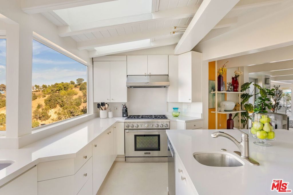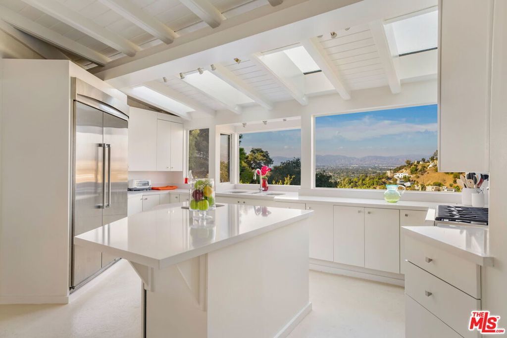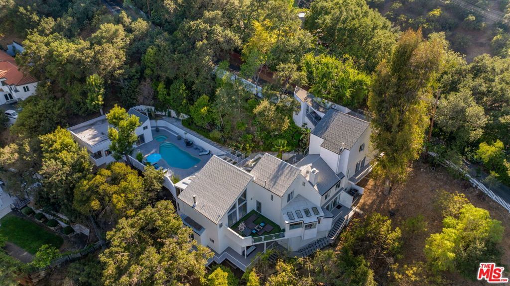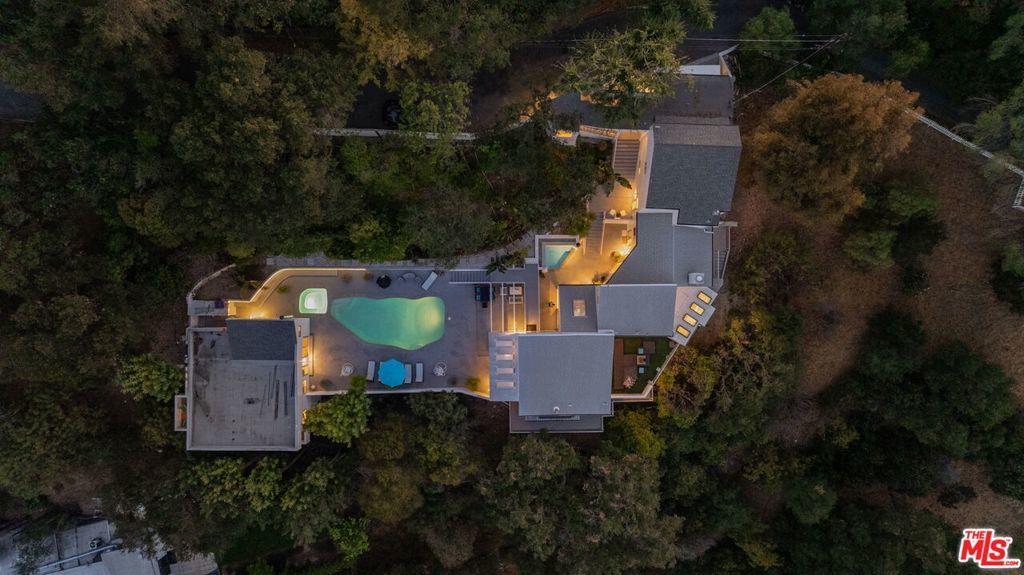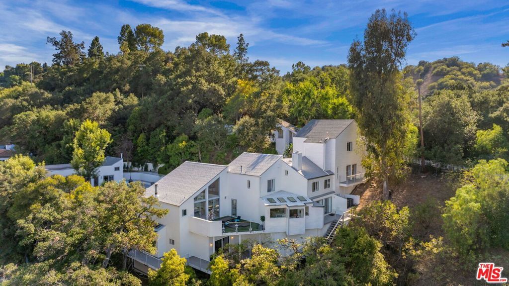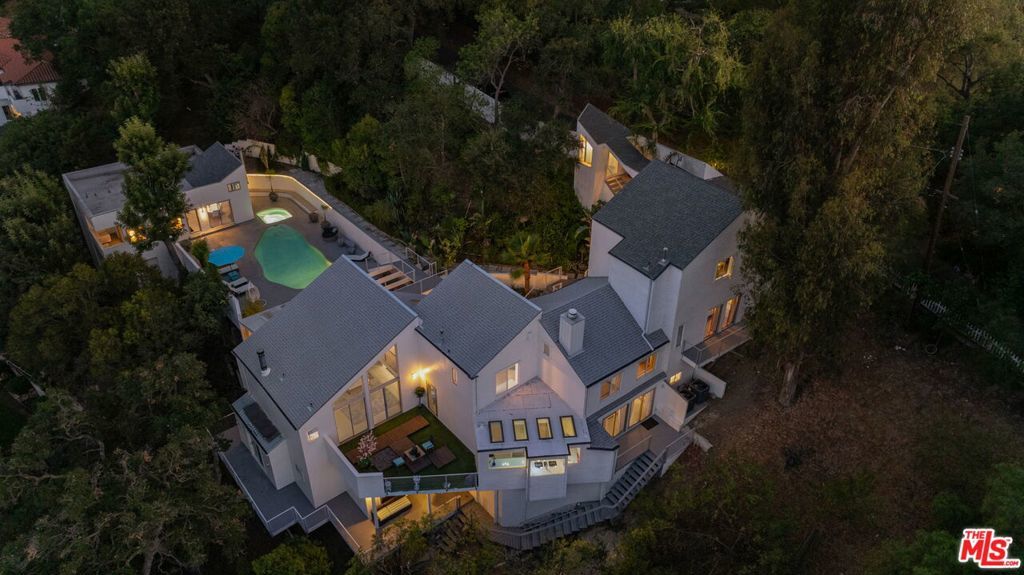 A secluded hillside compound with sweeping views, 3210 Coldwater Canyon Lane offers a rare blend of privacy and light-filled living. Spanning 27,000 square feet across two structures and three levels, the property balances airy interiors with lush outdoor spaces.The 4,400-sq-ft main residence opens to an expansive floor plan where walls of glass frame decks, gardens and a sparkling nine-foot pool with an oversized spa. Recently refreshed, the kitchen pairs new white-quartz counters and skylights with Thermador appliances, while soaring ceilings elevate the living and dining areas. Two lofted spaces invite creative use. Six ensuite bedrooms include a dramatic primary suite with fireplace, blackout shades and a spa bath featuring a sculptural round tub. Each secondary suite enjoys its own deck and captivating views.Across the pool deck, a 1,200-sq-ft guest house offers a full kitchen, living room, laundry and two additional ensuite bedrooms, ideal for visitors, work or retreat. Mature gardens wrap the pool terrace, where palms, rosemary and hundreds of exotic plantings create a private oasis.Positioned between Beverly Park and The Summit, this enclave has long attracted artists and icons seeking privacy near Beverly Hills and Studio City. With hiking trails close by and easy access to dining, shopping and studios, Coldwater Canyon Lane embodies the best of California living.