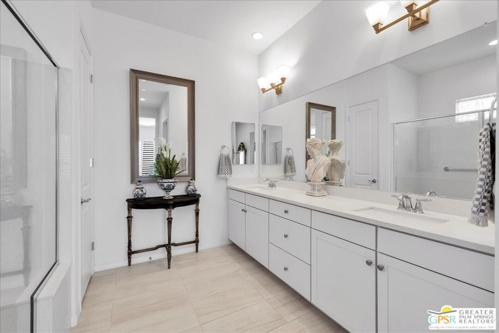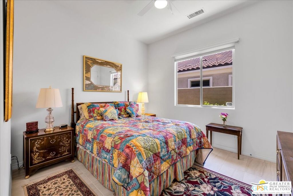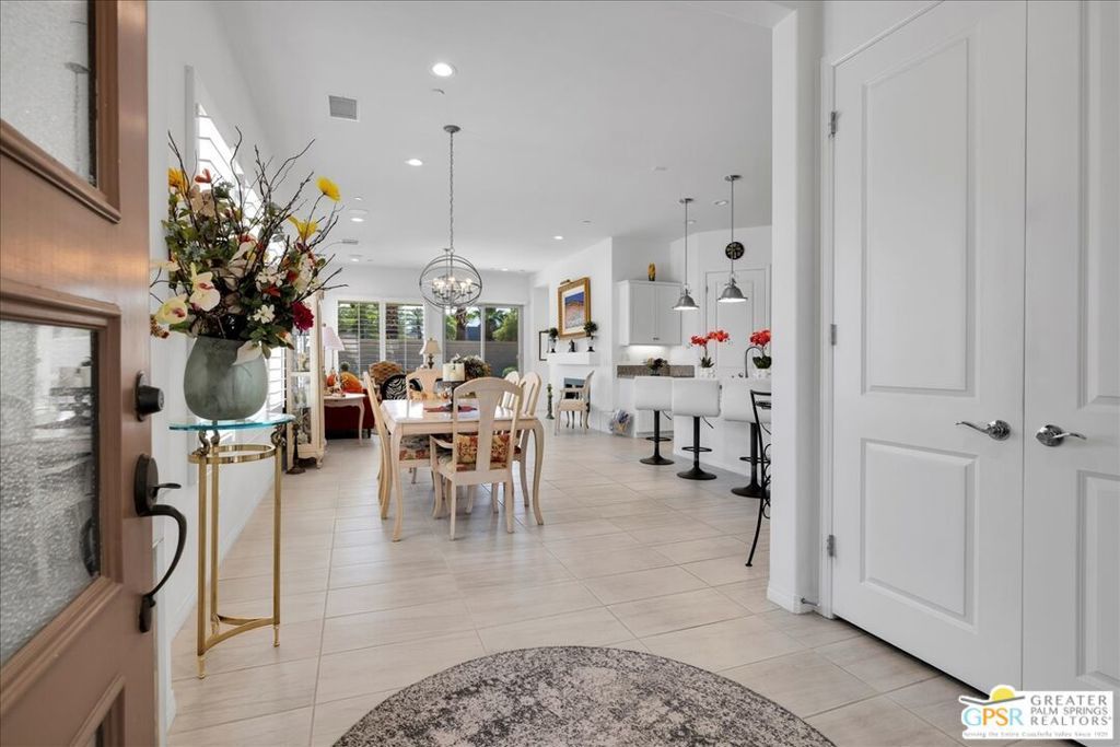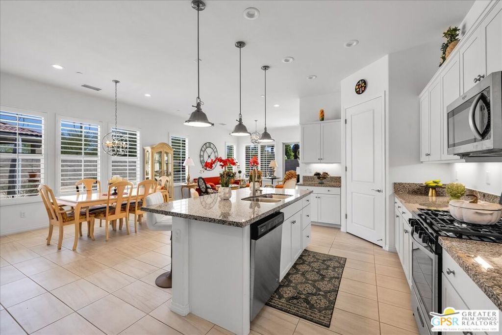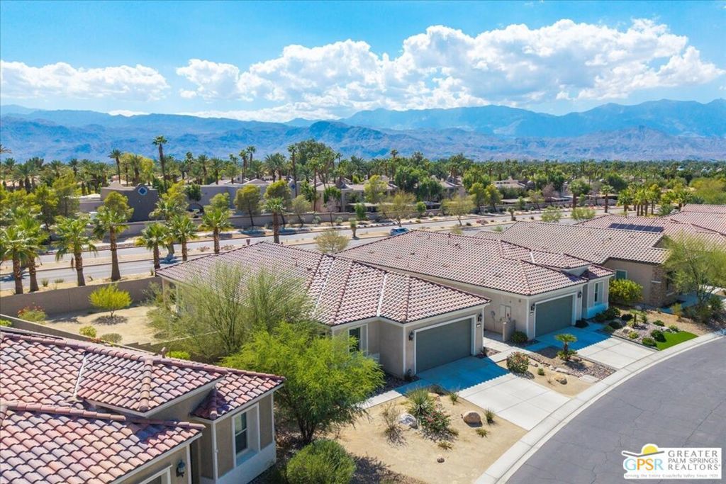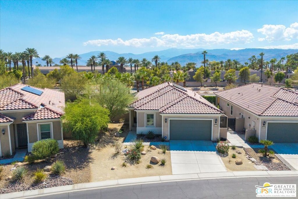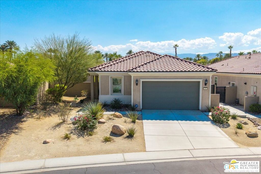 Located in the highly desirable 55+ community of Del Webb Rancho Mirage, this Phase 2 Expedition model offers the perfect blend of comfort, style, and functionality. Positioned on a south-facing oversized lot, this home offers abundant outdoor space which is perfect for entertaining, relaxing, or soaking up the desert sun. Inside, the spacious open floor plan features a large kitchen with center island, tile flooring throughout, cozy fireplace, and plentiful natural light complemented by modern plantation shutters. This thoughtfully designed layout includes two bedrooms, including a generous primary suite with a walk-in closet, plus a versatile office/den which is ideal for working from home or accommodating guests. Living in Del Webb Rancho Mirage means enjoying resort-style amenities right outside your door. The 20,000 square-foot clubhouse features a modern fitness center, aerobics studio, golf simulator, wine room, and an outdoor fireplace. The ballroom is perfect for hosting special events and community entertainment. For outdoor enthusiasts, the community offers a large resort-style pool and a smaller covered pool, a spacious spa for ultimate relaxation, 8 Pickleball courts, 4 tennis courts, 3 bocce ball courts, a putting green, six miles of scenic walking trails, and dedicated dog parks for your furry companions.