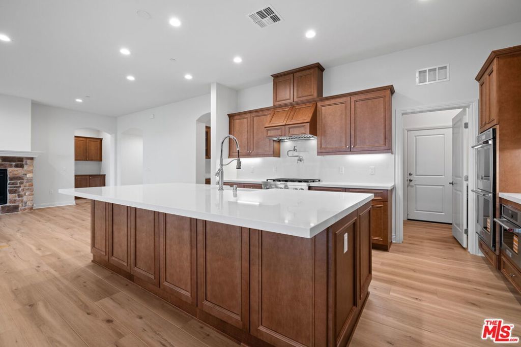 MOVE-IN READYStunning 4-bedroom, 3.5-bath home in Belcourt at Seven Oaks with 2,862 sq. ft. of living space on an 11,589 sq. ft. cul-de-sac lot. This elegant residence features an office and pantry with frosted glass doors, formal dining, and inviting indoor and outdoor fireplaces. The chef's kitchen showcases chestnut maple cabinets, quartz kitchen island, counters and backsplash, cast iron farmhouse sink, upgraded kitchen faucet, pot filler, and KitchenAid appliances including, double ovens, 6-burner cooktop, microwave, and dishwasher. Designer upgrades include glass uppers at the breakfast nook and butler's pantry, framed mirrors at Primary bath and powder room and upgraded flooring throughout. The luxurious primary suite has French doors to rear yard and boasts a spa-like bath with rain showerhead. Perfect for entertaining and everyday living in a desirable non-gated community close to all the best of Seven Oaks. Clubhouse Fitness Center, Community pool and more.