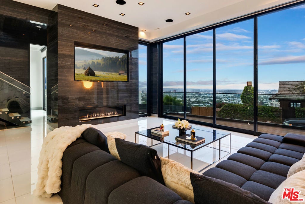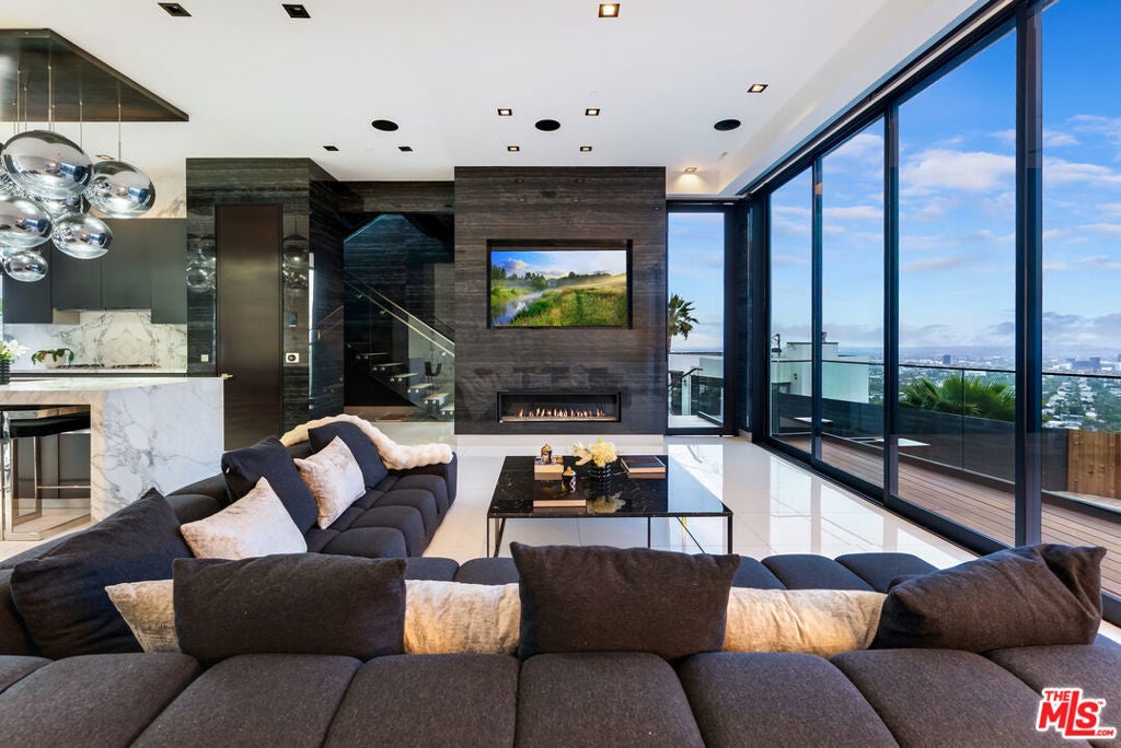 Discover modern elegance in the heart of the Hollywood Hills. This stunning 3-bedroom, 3-bath residence offers unparalleled 360 views spanning from Downtown LA to the Sunset Strip, Century City, and even Santa Monica Beach on clear days. By night, enjoy a front-row seat to the city's twinkling skyline a breathtaking show every evening.The home's open design is framed by expansive sliding glass doors, filling every room with natural light and blending indoor and outdoor living. The chef's kitchen is fully equipped, a true culinary dream, while the master suite redefines luxury with its cozy fireplace, spa-like bath featuring a free-standing tub, rainfall shower with a built-in sauna, and serene ambiance.Step outside to the heated infinity pool with a cascading waterfall, where relaxation meets sophistication. The property is located just minutes or even a short walk from world-class dining, shopping, and entertainment, this home offers the perfect balance of privacy and access to the vibrant LA lifestyle. Come check out what this luxurious home has to offer.