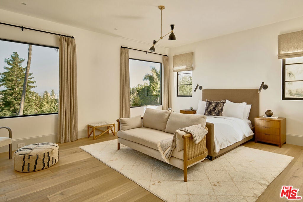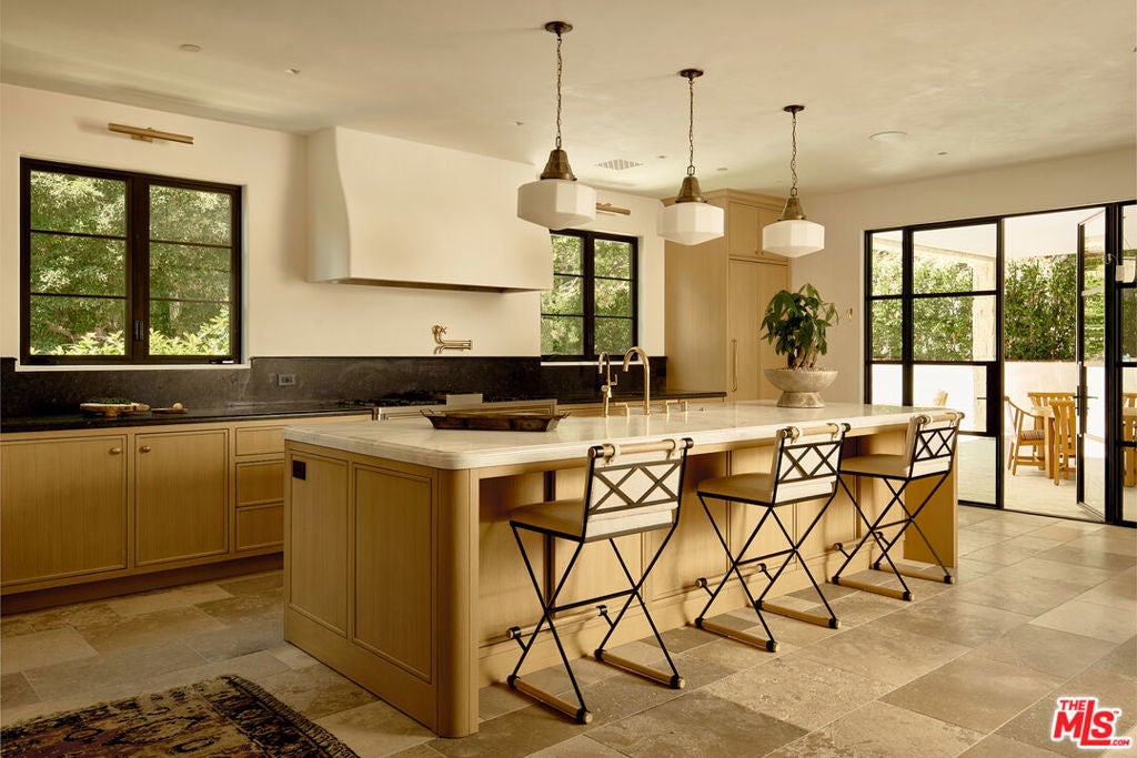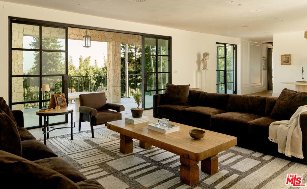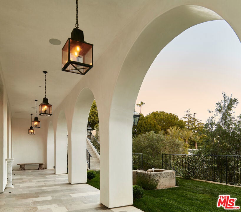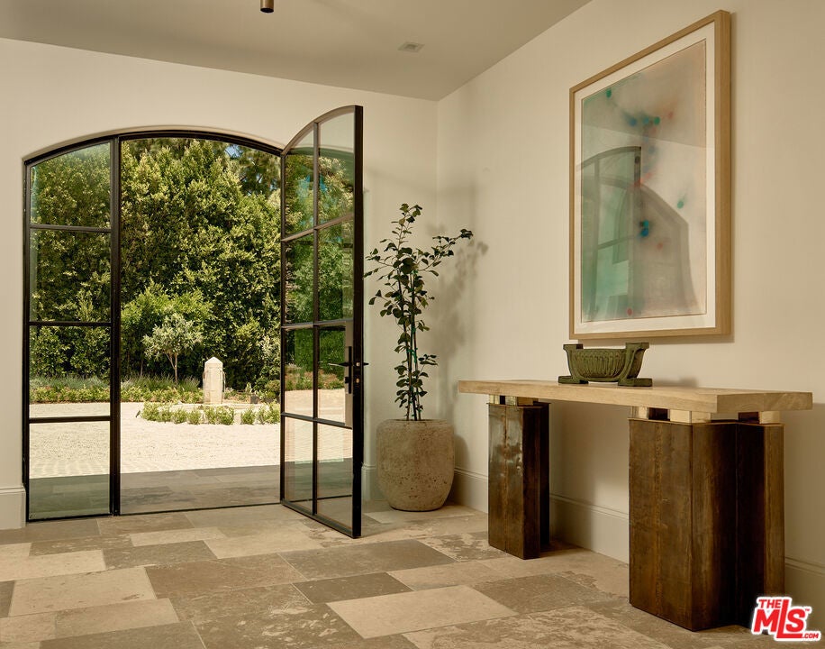Set behind gates on nearly an acre in Lower Bel Air's coveted Platinum Triangle, this Contemporary Tuscan estate blends timeless European craftsmanship with modern California living. A circular motor court framed by mature trees and a French fountain sets a grand tone of privacy and sophistication. Light-filled interiors highlight artisan plaster walls, white oak floors, and an effortless connection to a central courtyard with olive trees, fire features, and a full outdoor kitchen an ideal backdrop for entertaining. The chef's kitchen boasts a striking Calacatta marble island, butler's pantry, and premium appliances, while formal dining and living rooms are enriched with antique fireplaces and steel-framed doors that open wide to garden and pool views. Amenities include a private gym with bath, a theater with separate entrance, and multiple indoor-outdoor lounges. Upstairs, the primary suite offers dual spa-inspired baths, custom closets, and a private terrace. Additional en-suite bedrooms, a family lounge with bar, and a great room extend the living space. On the garden level, a spacious bar and lounge open directly to the yard, creating a seamless setting for gatherings of any size. Surrounded by citrus groves, century-old olive trees, and landscaped gardens, this gated estate offers resort-style living in one of Los Angeles' most prestigious settings.