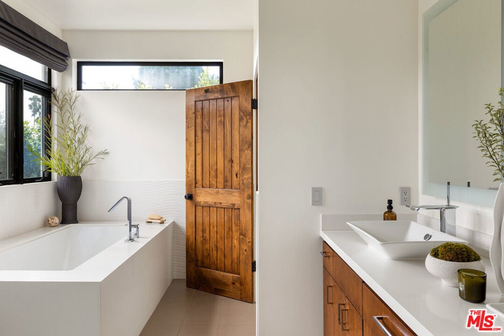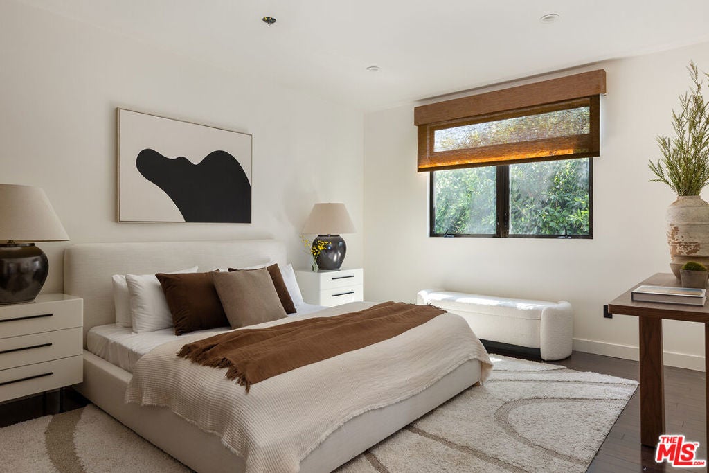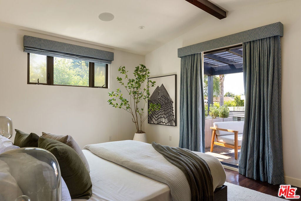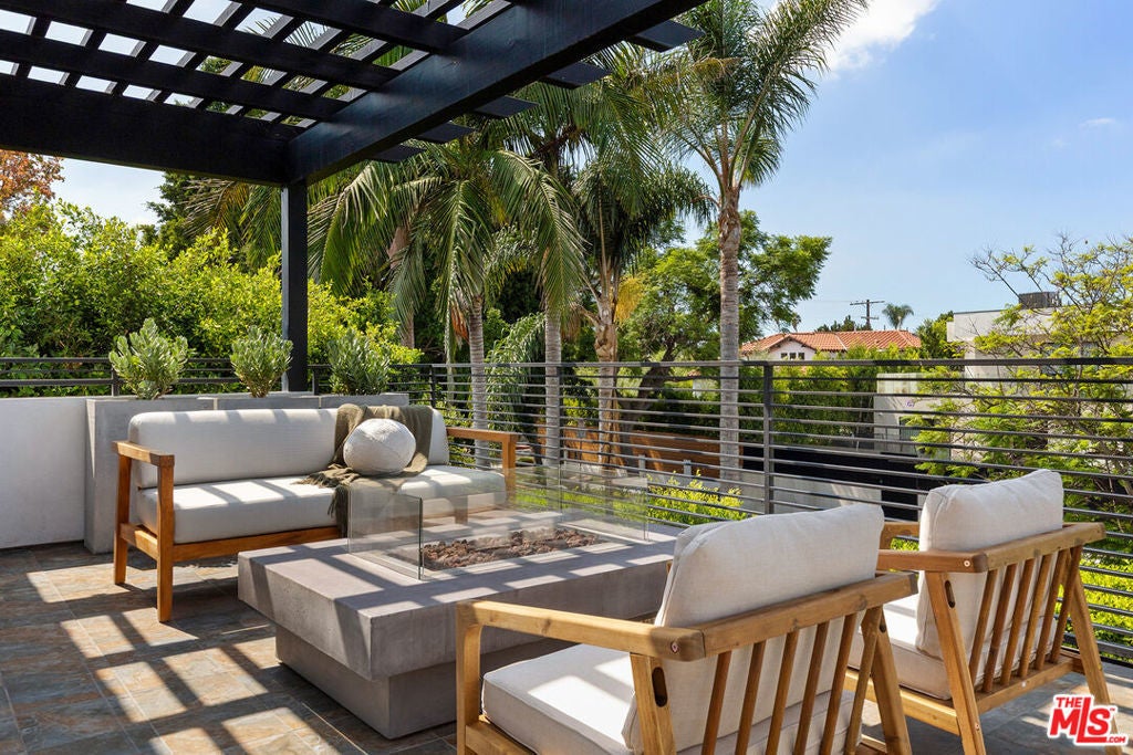 Tucked behind gates and set back from the street, this beautifully updated Spanish-style home blends timeless architecture with thoughtful modern touches. With four en-suite bedrooms, five bathrooms, a two-car garage, and a saltwater pool, spa and sauna, the home offers the perfect balance of comfort, space, and style. A dramatic entryway opens to an airy, open-concept living and dining area. Vaulted ceilings and large windows fill the space with natural light, creating a warm and welcoming atmosphere that flows easily into the private, landscaped backyard complete with a pool and spa, ideal for relaxing or entertaining. The chef's kitchen is both functional and inviting, featuring custom cabinetry, ample counter space, and quality appliances that make it just as great for hosting as it is for everyday living.Upstairs, the primary suite is a peaceful retreat with a spacious bathroom, two large walk-in closets, and a balcony that overlooks the grounds. Two additional bedrooms have its own en-suite bath and are finished with care, offering both privacy and flexibility. A spacious outdoor terrace off the 2nd floor landing with a fire pit is perfect for lounging and relaxation. Just minutes from The Grove, the Original Farmer's Market, LACMA, and all the shops and restaurants on Third Street, this home sits in the heart of one of LA's most vibrant neighborhoods. Designed for indoor-outdoor living and full of character, this home captures the best of Southern California warm, welcoming, and effortlessly stylish.