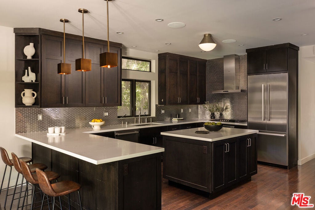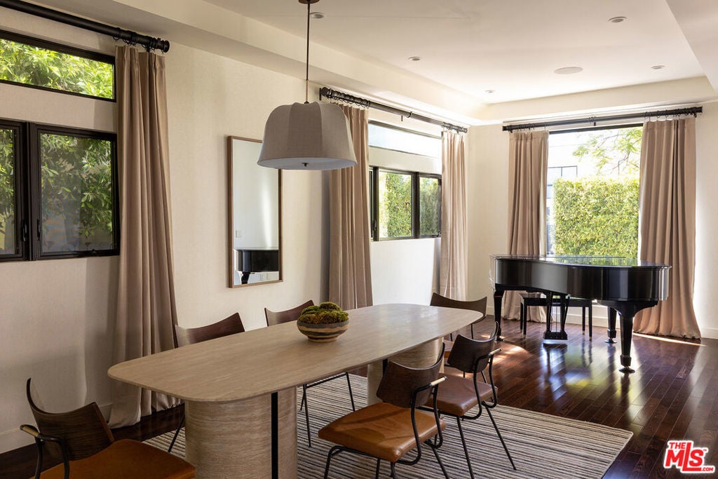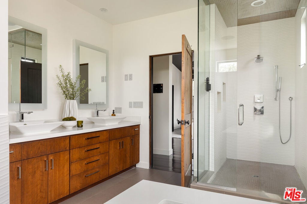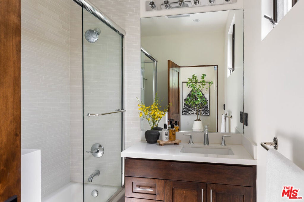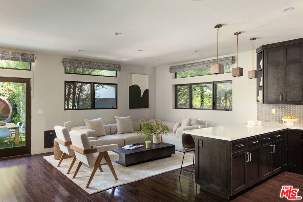 Tucked behind gates and set back from the street, this beautifully updated Spanish-style home blends timeless architecture with thoughtful modern touches. With four en-suite bedrooms, five bathrooms, a two-car garage, and a saltwater pool, spa and sauna, the home offers the perfect balance of comfort, space, and style. A dramatic entryway opens to an airy, open-concept living and dining area. Vaulted ceilings and large windows fill the space with natural light, creating a warm and welcoming atmosphere that flows easily into the private, landscaped backyard complete with a pool and spa, ideal for relaxing or entertaining. The chef's kitchen is both functional and inviting, featuring custom cabinetry, ample counter space, and quality appliances that make it just as great for hosting as it is for everyday living.Upstairs, the primary suite is a peaceful retreat with a spacious bathroom, two large walk-in closets, and a balcony that overlooks the grounds. Two additional bedrooms have its own en-suite bath and are finished with care, offering both privacy and flexibility. A spacious outdoor terrace off the 2nd floor landing with a fire pit is perfect for lounging and relaxation. Just minutes from The Grove, the Original Farmer's Market, LACMA, and all the shops and restaurants on Third Street, this home sits in the heart of one of LA's most vibrant neighborhoods. Designed for indoor-outdoor living and full of character, this home captures the best of Southern California warm, welcoming, and effortlessly stylish.