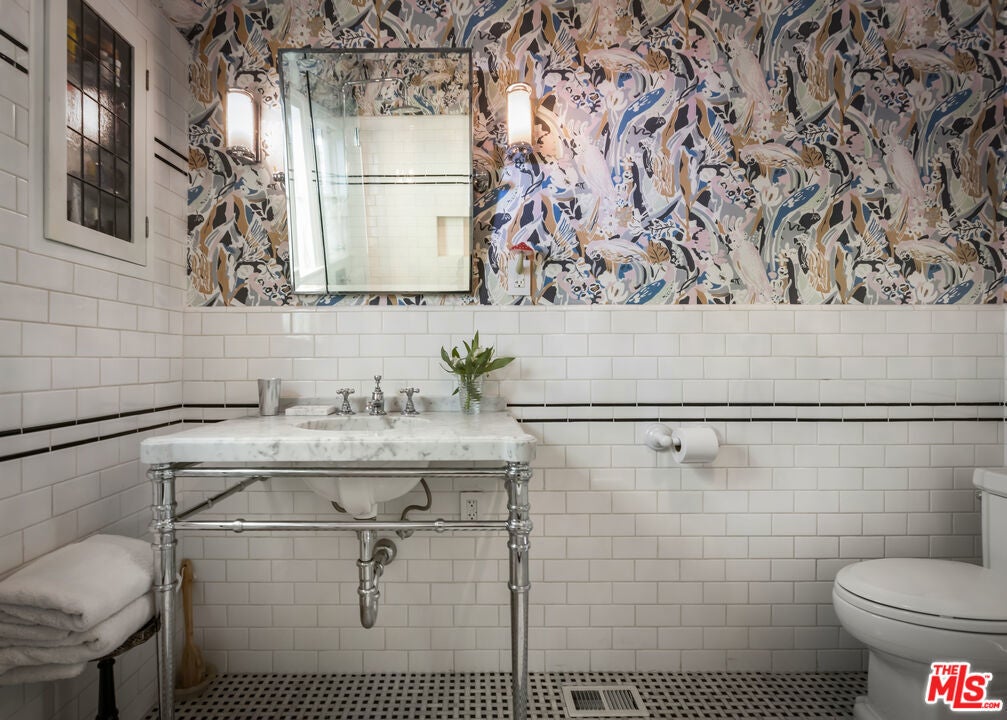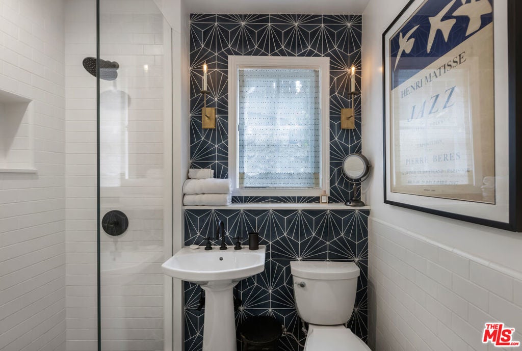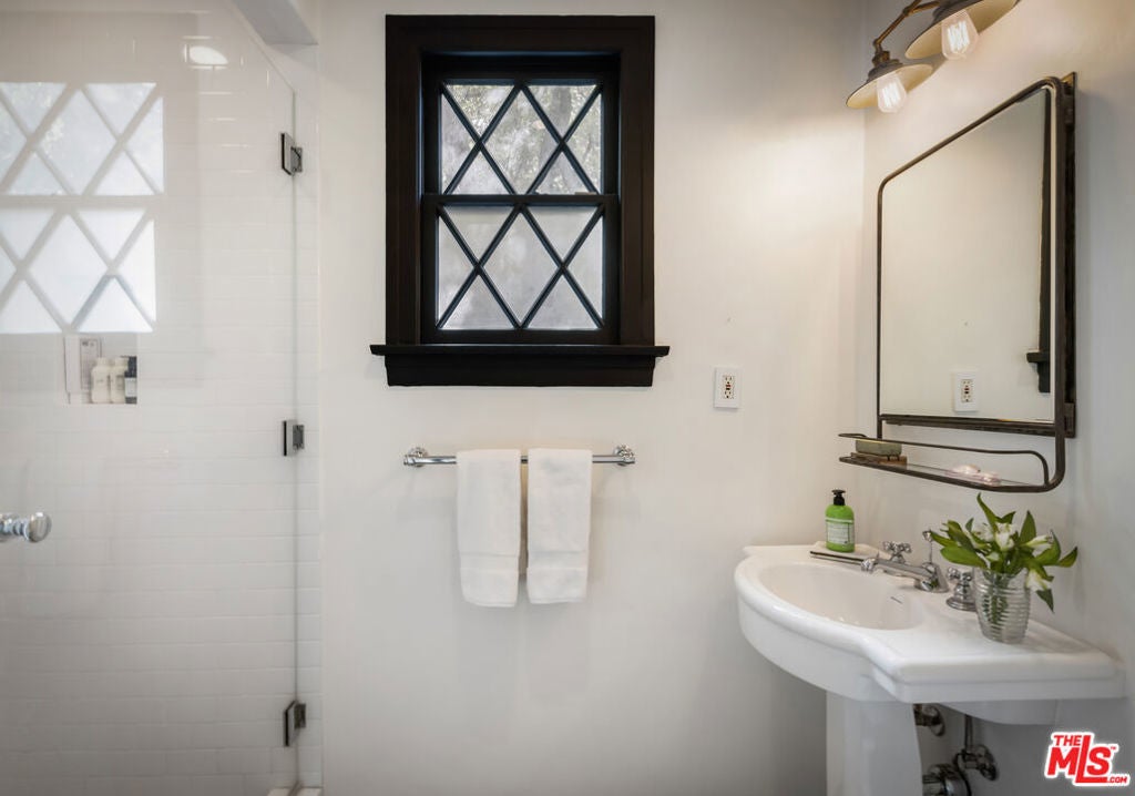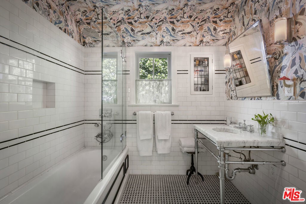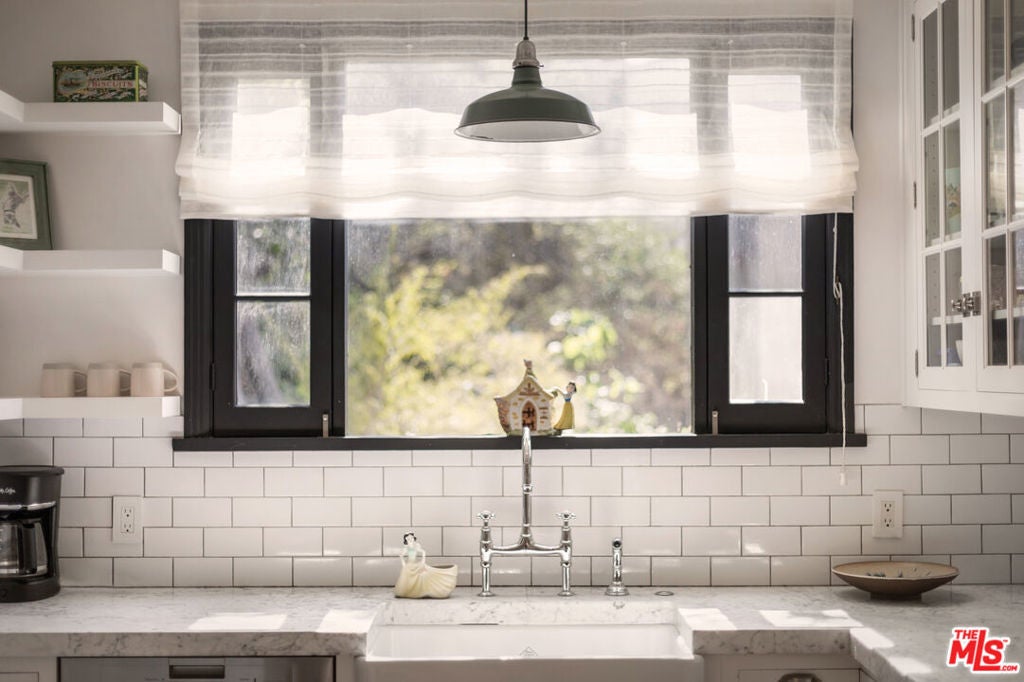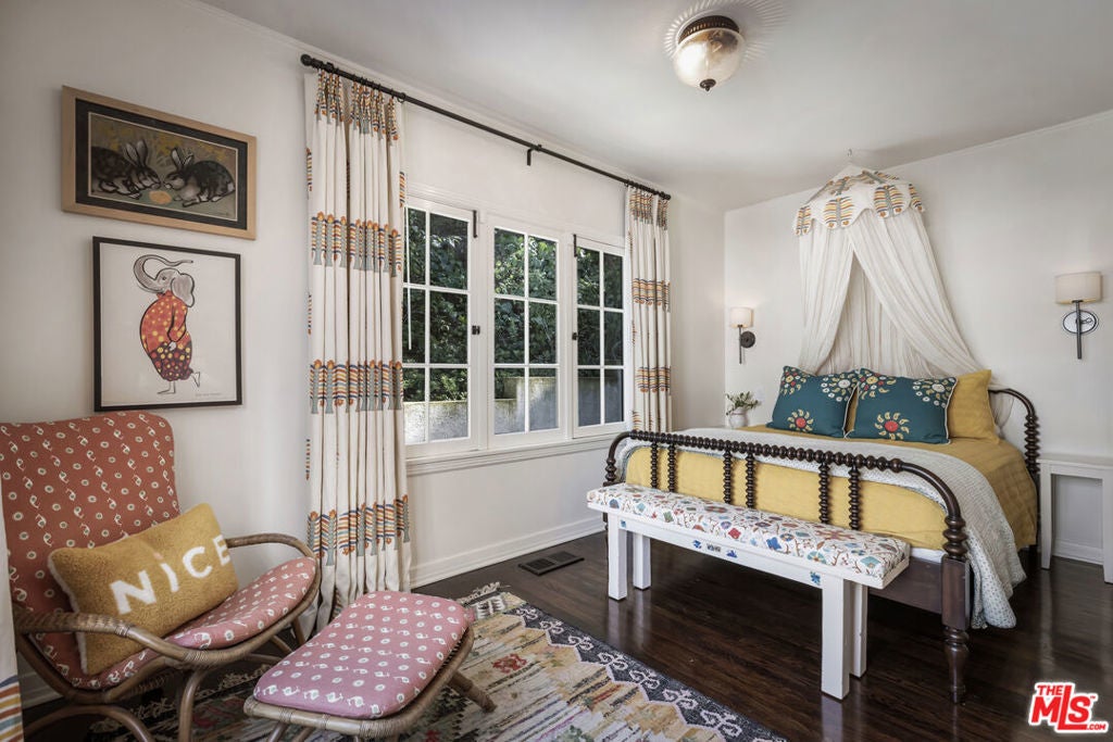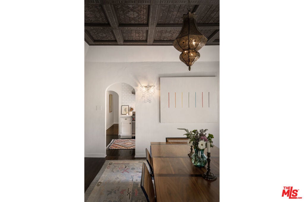 c.1924 JOHN DeLARIO, ARCHITECT. LEGENDARY chief designer of HOLLYWOODLAND and creator of some of Beachwood Canyon's most iconic residences, including the signature stone entry gates, left his visionary mark on this pedigree French Norman storybook home, as well as on landmarks like Castillo Del Lago, (c.1926) among Southern California's most significant Spanish estates. PRIVATE Entertainment home. 4-bed, 3-bath; formal dining room beneath hand-painted coffered ceilings that open to the canyon, an adjoining living room with sculpted coved ceiling, rich hardwood floors, and striking fireplace, all exemplifies DeLario's craftsmanship where Hollywood romance meets architectural precision. Entertainers home: French doors along the main level flow to the courtyard and terraced lawn, evoking the grace of a petite European villa. A stone patio invites slow afternoons, whether savoring a meal or a book whose pages turn slowly. The classic kitchen pairs connoisseurs' appliances with pretty custom shaker cabinetry. Three boutique-inspired bedrooms occupy private corners of the home, while a fourth suite with a private musical-entry nod and a memorable media room forms a garden-wrapped retreat. Interiors layered by Kathryn Ireland and Brittany Bromley infuse warmth and character throughout, and direct access adds ease. The hand-hewn stone exterior, a signature of DeLario's artistry, endures as a rare and distinguished fragment of Hollywoodland's architectural Beachwood legacy. --Public records show 2550sqft. Vendor measurements are 2760sqft. Buyer to verify.