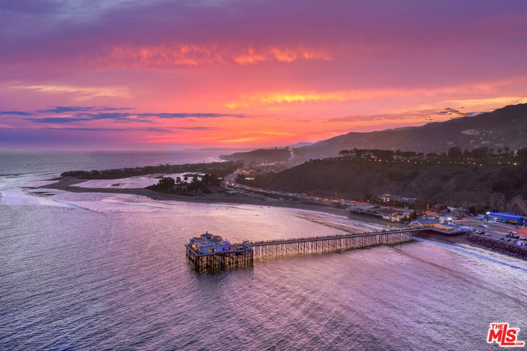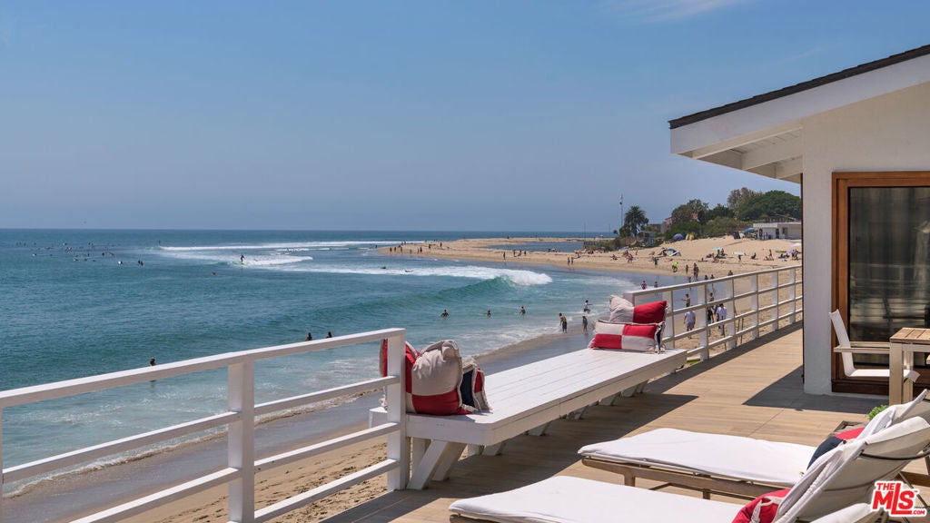 Introducing a rare double-lot beachfront sanctuary with 74 of ocean frontage on Malibu's coveted Surfrider Beach. This single-story coastal retreat blends sweeping ocean views with architectural grace. A gated arrival reveals a motor court with parking for multiple vehicles and a private garage.Inside, the expansive living and dining pavilion features vaulted ceilings, hardwood floors, a fireplace, and three oversized ocean-facing windows framing panoramic vistas including the iconic Malibu Pier. This space flows seamlessly onto a wraparound porcelain-tiled oceanfront deck, perfect for indoor-outdoor entertaining.The gourmet kitchen offers a granite island, skylights, Sub-Zero and Thermador appliances, and captivating ocean views.The primary suite delivers ultimate privacy and luxury with a marble fireplace, glass sliders opening directly to the deck with Malibu Pier panorama, an oversized custom closet, and a spa-like bathroom with steam shower, soaking tub and heated floors. Three additional bedrooms, two ensuite with sunset deck access, provide stylish accommodations for family and guests.Modern upgrades include a whole-house generator, EV charger, Sonos system, and porcelain flooring throughout the primary suite and deck. With proven rental history, (partial seawall protection), and a premier location near Nobu, Soho House, and Malibu Country Mart, this refined oceanfront estate offers rare scale, prestige, and iconic Malibu Pier views.