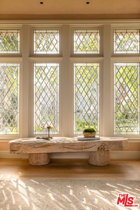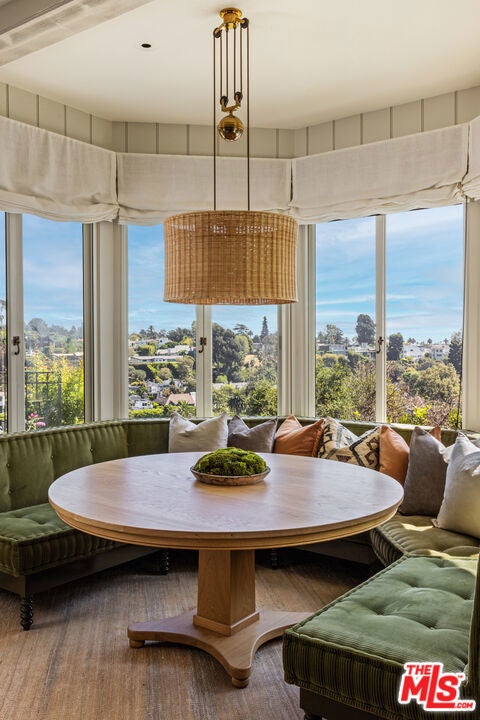 Spectacular gated English estate on coveted Amalfi Drive in the Palisades Riviera. With sweeping ocean, canyon, and country club views, this 5-bedroom, 5.5-bath residence has been reimagined to balance timeless character with modern luxury. Every detail reflects the exquisite renovation, where elegant finishes and authentic charm define the home. A garden arbor and beautiful entry lead to a dramatic two-story foyer. The living room showcases vaulted wood-beam ceilings with woven cane inlay, a limestone fireplace, and leaded glass windows opening to a private view patio. The formal dining room with French doors flows into a gourmet kitchen with a large center island, top-of-the-line appliances, and a sunlit breakfast alcove overlooking the garden. Designed for entertaining, the family room with French doors highlights panoramic views and is fit with a masonry fireplace, custom banquette, and built-in media center. A paneled den with fireplace creates an ideal retreat, while a guest suite, elegant powder room, mudroom, and laundry complete the main level. Upstairs, the primary suite features a fireplace, sitting area, dual closets, and private balcony with breathtaking views. The spa-like bath offers heated stone floors, custom millwork, a ribbed glass steam shower, and a luxurious soaking tub. Two additional en-suite bedrooms, and a playroom with vaulted ceilings complete the second story. A private guest wing with bath and walk-in closet provides flexibility. Venture outside to enjoy beautifully landscaped grounds with mature trees, bluestone patios, a built-in barbecue with entertainment bar, a garden house, and deluxe pool and spa all framed by sweeping vistas. Wide-plank floors, Savant home automation, integrated A/V, Lutron lighting, upgraded systems, and water filtration complete this exceptional home. Just moments from the beach, local shops and restaurants, top-tier schools, Rustic Canyon Park, and Brentwood Country Mart, this one-of-a-kind estate is a truly rare offering for your most discerning clients.