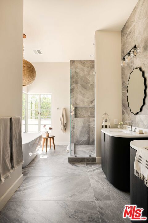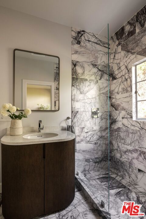 On a rare street-to-street lot north of the Boulevard, this newly reimagined residence offers the best of Los Feliz living- gated, private, and just moments from Hillhurst and Vermont. Past a welcoming front yard and patio, the entry opens into a soaring living room, where high ceilings, a fireplace, and original steel windows set the tone for timeless character blended with thoughtful updates. Graceful archways lead into a formal dining room and expansive open kitchen, complete with a generous eat-in island, breakfast nook, and tall steel French doors that connect seamlessly to a sunlit courtyard. The main level also features two en-suite bedrooms, a powder room, and a laundry room, all designed with livability in mind. Upstairs, the primary suite is a true retreat: light-filled with lofty ceilings, a walk-in closet, and a spa-like bath with dual vanities, a shower, and an artfully placed soaking tub. A flexible additional bedroom completes the upper level. Outside, the lot unfolds with opportunities for entertaining, gardening, and relaxation, with multiple gathering areas and room to expand. At the end of a long private driveway, a detached garage adds both convenience and privacy. Blending architectural charm with modern amenities, this gated mini compound lives with ease, offering both privacy and proximity in the heart of Los Feliz.