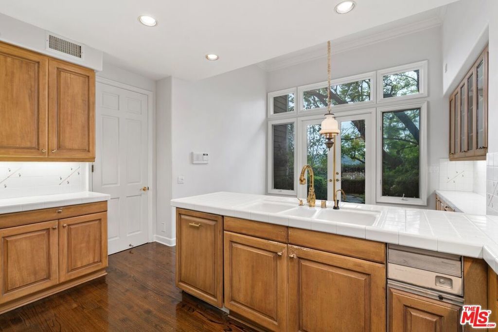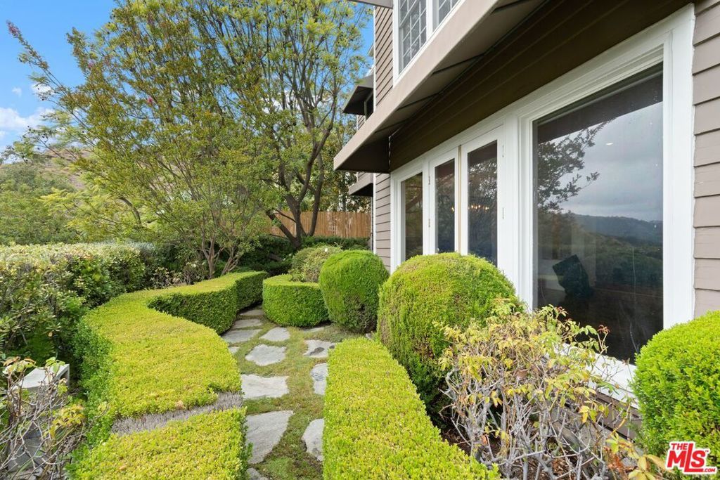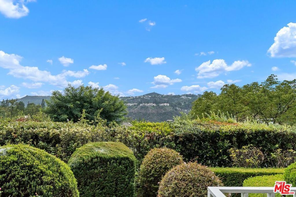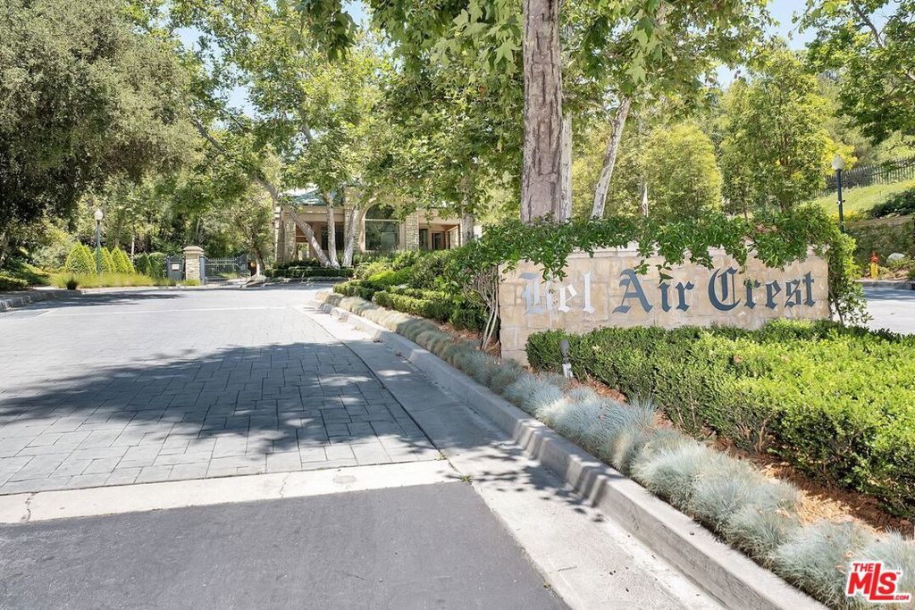 Rarely available, this beautiful Traditional home is in the prestigious and highly sought-after Guard-Gated community of BEL AIR CREST. Situated on a quiet tree lined cul-de-sac street, the home is the multilevel 'Getty' floorplan, offering separation of entertaining space and the primary bedroom plus family bedrooms are upstairs. Upon entering the front door, you are welcomed into the ample entry with real oak floors, walk-in closet, and large step-down living room. The living room offers an elegant 10'+ ceiling, recessed accent lighting, wall of windows & French doors, and handsome gas fireplace. Adjacent to the living room is the formal dining room French doors leading to the spacious yard could be converted to a full length outdoor entertaining space is available for al fresco dining and lounging. The Chef's kitchen features tremendous storage with loads of cabinets including an entire wall of glass front cabinets for displaying beautiful China or objet d'art. Additional features include top of the line appliances, 6-burner gas cooktop, double wall oven, Sub-Zero refrigerator plus abundant counterspace. The adjacent breakfast room includes additional cabinets and counter for extra storage, and French doors that lead to the west facing patio with numerous trees and sweeping views across the canyon to Mountain Gate. Up a few stairs to the middle floor den with direct garage access, large windows, extra tall ceilings & wet bar. This floorplan offers all three bedrooms upstairs, as well as two bathrooms up and a powder on the main floor. Entering the extra-large primary bedroom through the double doors, the room offers four large windows for abundant sunshine, an oversized walk-in closet and ensuite bathroom with luxurious tub and separate shower, dual vanity, make-up area, and private toilet room. Ascend a couple additional steps to the two additional family bedrooms with shared bathroom including dual vanity and separate tub/shower/toilet room. This elegant home is move-in ready with a few minor updates or could be fully remolded to the buyer's specific taste. Being one of the larger lots at Bel Air Crest, the elegant well-manicured garden/yard could be updated for a future in-ground hot tub or remodeled to be an extra-large patio space. The oversized 2-car garage with abundant storage completes this beautiful home. The Bel Air Crest community amenities include a heated swimmer's pool, spa, recently remodeled state of the art gym, dog park, community center with meeting space, tennis courts, basketball courts, children's play area, putting green, and on-site management. This 24-hour Guard-Gated community offers a secure paradise for its residents. The home is situated in a lushly landscaped hillside community and is convenient to both the Westside and the Valley, as well as the 405 freeway, shopping, fine dining, beaches and more. All buyers and agents must be preregistered with the security gate in advance of showing appointments.