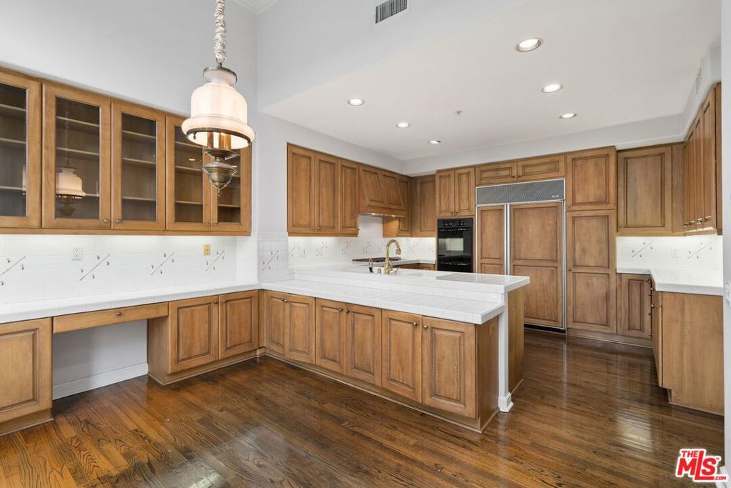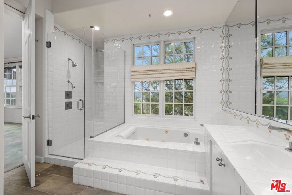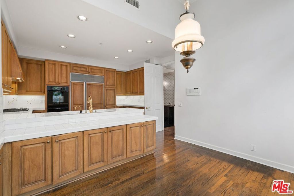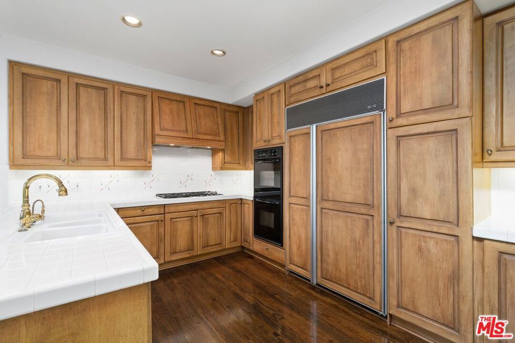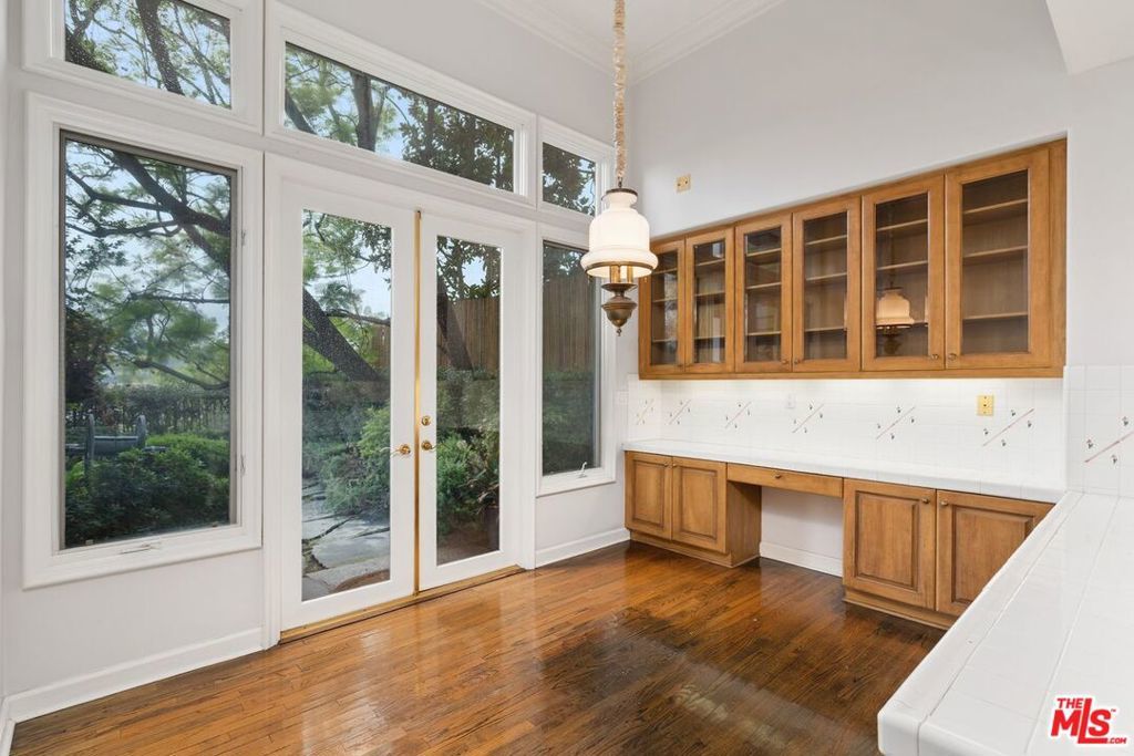Rarely available, this beautiful Traditional home is in the prestigious and highly sought-after Guard-Gated community of BEL AIR CREST. Situated on a quiet tree lined cul-de-sac street, the home is the multilevel 'Getty' floorplan, offering separation of entertaining space and the primary bedroom plus family bedrooms are upstairs. Upon entering the front door, you are welcomed into the ample entry with real oak floors, walk-in closet, and large step-down living room. The living room offers an elegant 10'+ ceiling, recessed accent lighting, wall of windows & French doors, and handsome gas fireplace. Adjacent to the living room is the formal dining room French doors leading to the spacious yard could be converted to a full length outdoor entertaining space is available for al fresco dining and lounging. The Chef's kitchen features tremendous storage with loads of cabinets including an entire wall of glass front cabinets for displaying beautiful China or objet d'art. Additional features include top of the line appliances, 6-burner gas cooktop, double wall oven, Sub-Zero refrigerator plus abundant counterspace. The adjacent breakfast room includes additional cabinets and counter for extra storage, and French doors that lead to the west facing patio with numerous trees and sweeping views across the canyon to Mountain Gate. Up a few stairs to the middle floor den with direct garage access, large windows, extra tall ceilings & wet bar. This floorplan offers all three bedrooms upstairs, as well as two bathrooms up and a powder on the main floor. Entering the extra-large primary bedroom through the double doors, the room offers four large windows for abundant sunshine, an oversized walk-in closet and ensuite bathroom with luxurious tub and separate shower, dual vanity, make-up area, and private toilet room. Ascend a couple additional steps to the two additional family bedrooms with shared bathroom including dual vanity and separate tub/shower/toilet room. This elegant home is move-in ready with a few minor updates or could be fully remolded to the buyer's specific taste. Being one of the larger lots at Bel Air Crest, the elegant well-manicured garden/yard could be updated for a future in-ground hot tub or remodeled to be an extra-large patio space. The oversized 2-car garage with abundant storage completes this beautiful home. The Bel Air Crest community amenities include a heated swimmer's pool, spa, recently remodeled state of the art gym, dog park, community center with meeting space, tennis courts, basketball courts, children's play area, putting green, and on-site management. This 24-hour Guard-Gated community offers a secure paradise for its residents. The home is situated in a lushly landscaped hillside community and is convenient to both the Westside and the Valley, as well as the 405 freeway, shopping, fine dining, beaches and more. All buyers and agents must be preregistered with the security gate in advance of showing appointments.