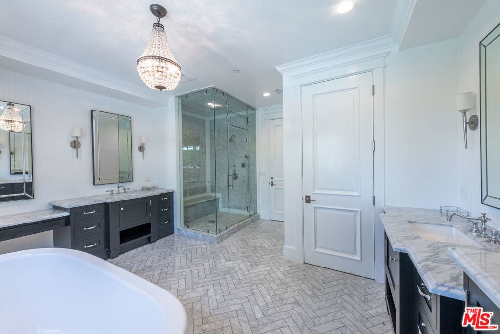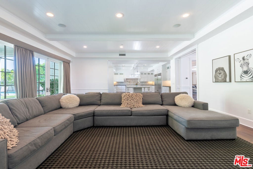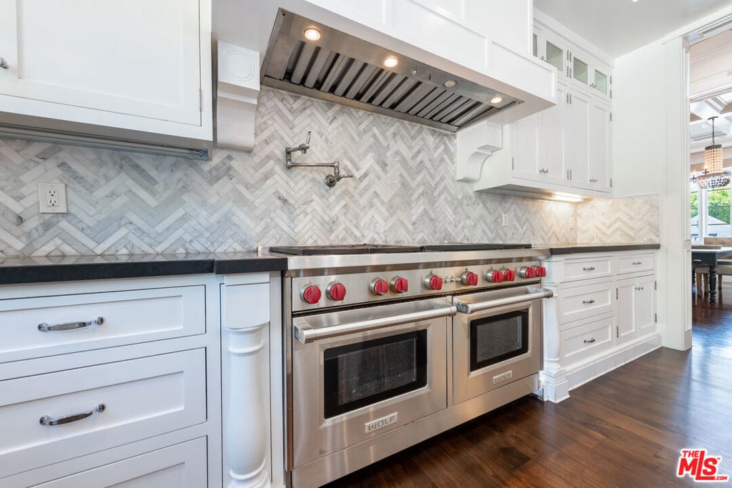 BEST PRICED NEWER CONSTRUCTION IN TARZANA! Former home of international music superstar Marc Anthony. This amazing Hampton's Style Traditional was built in 2014 when quality was king. Gated, hedged and set on its own over 1/2 acre private knoll with views of mountains, valley lights and verdant treetops, this ultra private estate is ready for its next lucky owner. The gated motor court is perfect for car collectors accommodating approx a dozen cars plus a rare 4 car side-by-side garage. The gracious formal entry introduces the home replete with walnut toned wood floors, white walls and the ideal floor plan. The 5 bedroom 6.5 bath estate offers over 6,500 sq ft of luxury living and includes an upstairs home office as well as a true gourmet's kitchen with double Calcutta marble center islands, honed quartz counters, herringbone tiled backsplash, Wolf range with double oven, Sub Zero R/F, breakfast bar and separate breakfast room all open to the family/media room with fireplace. A formal living room and dining room are also adjacent to another media/den space ideal for a screening room with access to the outdoor kitchen BBQ island, full sized pool/spa, Gazebo viewing pavilion and multiple living/dining areas. Upstairs are 4 generous en-suite bedrooms including the primary suite with a stunning closet, spa-style marble bath with soaking tub, a separate Junior primary suite, 2 additional suites and a home office. Downstairs is a guest suite as well. This is truly a step above most newer construction homes offering no street visibility and the chance to live in your own world high above the rest yet easy access to Ventura Blvd shops, restaurants and houses of Worship. Come live your best life at 4981 Amigo.