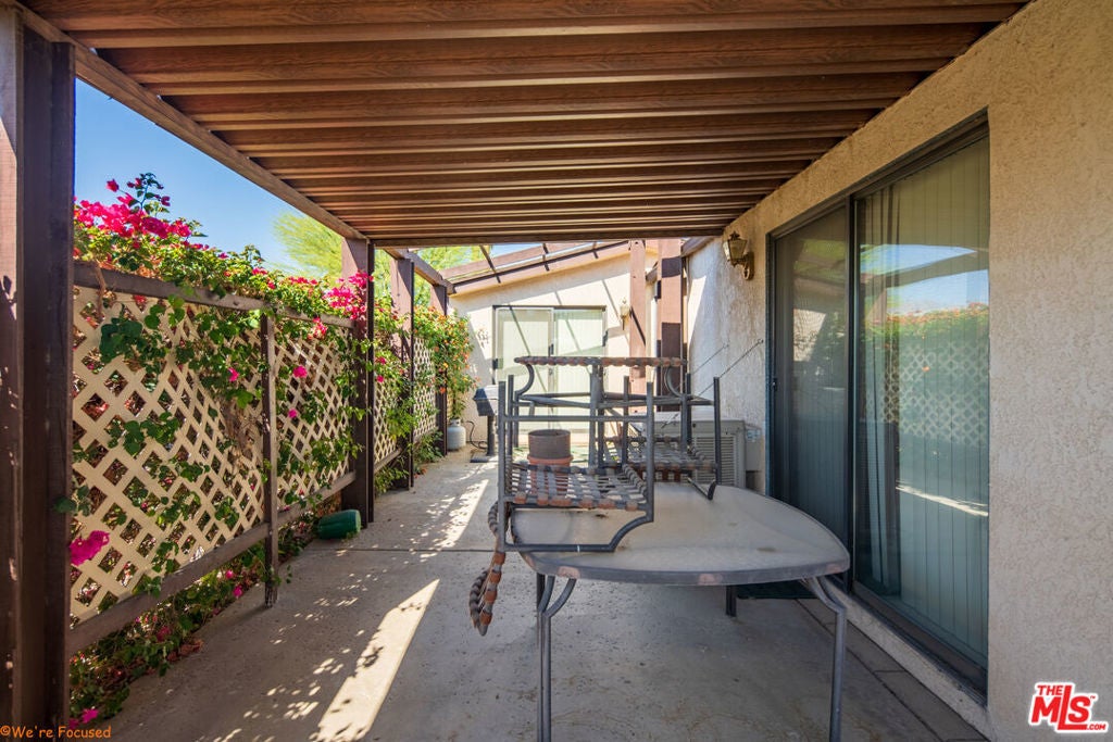 Live the Dream in Portola Country Club. Welcome to Portola Country Club, a beautifully maintained 55+ gated community in the heart of Palm Desert, where you own the land and enjoy unlimited golf for two on the private 18-hole par 3 course all included in the low $440/month HOA fee. This spacious and beautifully kept 2-bedroom, 2-bath home offers parking for four cars. Inside, you'll find a spacious living and dining area, open layout perfect for entertaining. The living room features soaring ceilings, and the large family room opens to a private covered patio and enclosed yard, ideal for pets or peaceful outdoor living. The primary suite boasts a large walk in closet, large bathroom with a walk-in shower. The second bedroom has its own private bath with a tub/shower combo. An additional flex room with separate A/C offers space for an office, craft room, gym, or whatever your heart desires.This home is on a 433A permanent foundation, making it eligible for traditional financing. Enjoy mountain views and a vibrant community atmosphere. The HOA covers not just golf, but also access to the clubhouse, fitness room, pickleball, tennis, bocce ball, multiple pools and spas, RV parking, plus cable, internet, and trash services. With just 500 homes, Portola Country Club is a friendly and active community just minutes from El Paseo's shopping, dining, and Eisenhower Medical Center. Don't miss this opportunity to live in one of Palm Desert's best-kept secrets.