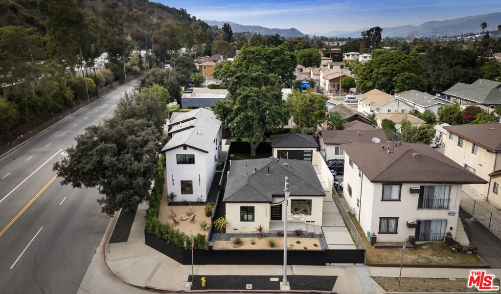 Discover this stunning renewal of a Traditional and Modern residence on an expansive flat corner lot in Frogtown. Both residences feel romantic and dreamy, yet stylish, with undeniable presence and stature. A luminous, designer-crafted interior with the rare feeling of a private compound. Dual pane windows throughout both residences create a serene and quiet atmosphere. The polished Traditional offers 2 bedrooms and 2 bathrooms, enhanced by wide-plank white oak hardwood floors throughout. The chef-inspired kitchen boasts new appliances, LG washer/dryer and custom cabinetry. Outside, a generous yard invites you to grow, entertain, and enjoy the shade of a mature avocado tree. A long driveway easily accommodates up to four cars, while the garage presents an exciting possible opportunity for a versatile studio space. Modern residence is a sleek, modern two-story home with 3 bedrooms, 2.5 bathrooms, and convenient attached garage with room for two cars. Inside, wide-plank white oak hardwood floors flow through out an open-concept living and dining space, complemented by main-level half bath and direct garage access. The kitchen combines custom cabinetry with state-of-the-art appliances for a fresh modern look. Upstairs, you're greeted by a spacious primary bedroom with spacious closets, including a generous walk-in closet, along with two well-portioned secondary bedrooms. Designer-crafted bathrooms in both primary and secondary suites showcase impeccable style and sophistication. As you move through the home, breathtaking mountain vistas surround you. A yard ideal for a leisurely picnic or lively outdoor gathering. Located within the highly regarded Dorris Elementary School District, rated 9 out of 10 on GreatSchools.org. In Frogtown, immerse yourself in a true artistic enclave, all while enjoying local cuisine and LA River bike trails. A one-of-a-kind, once-in-a-lifetime opportunity to acquire this fully vacant compound perfect to call home or as an exceptional investment.