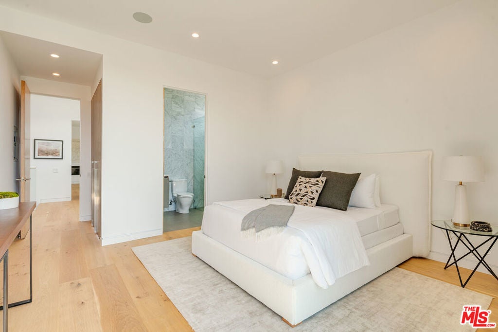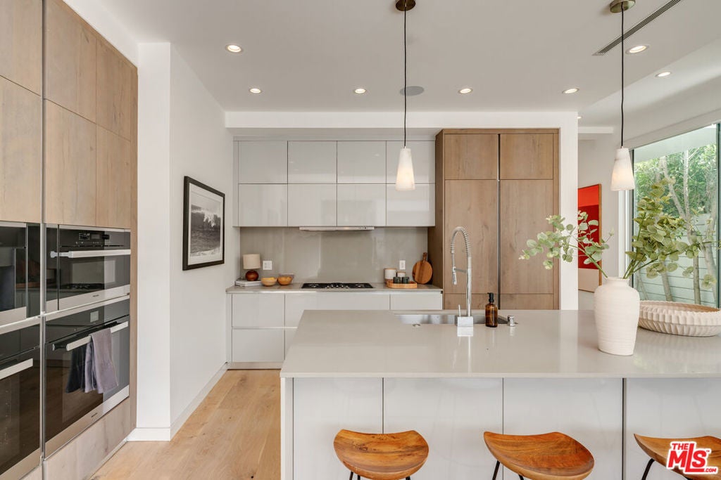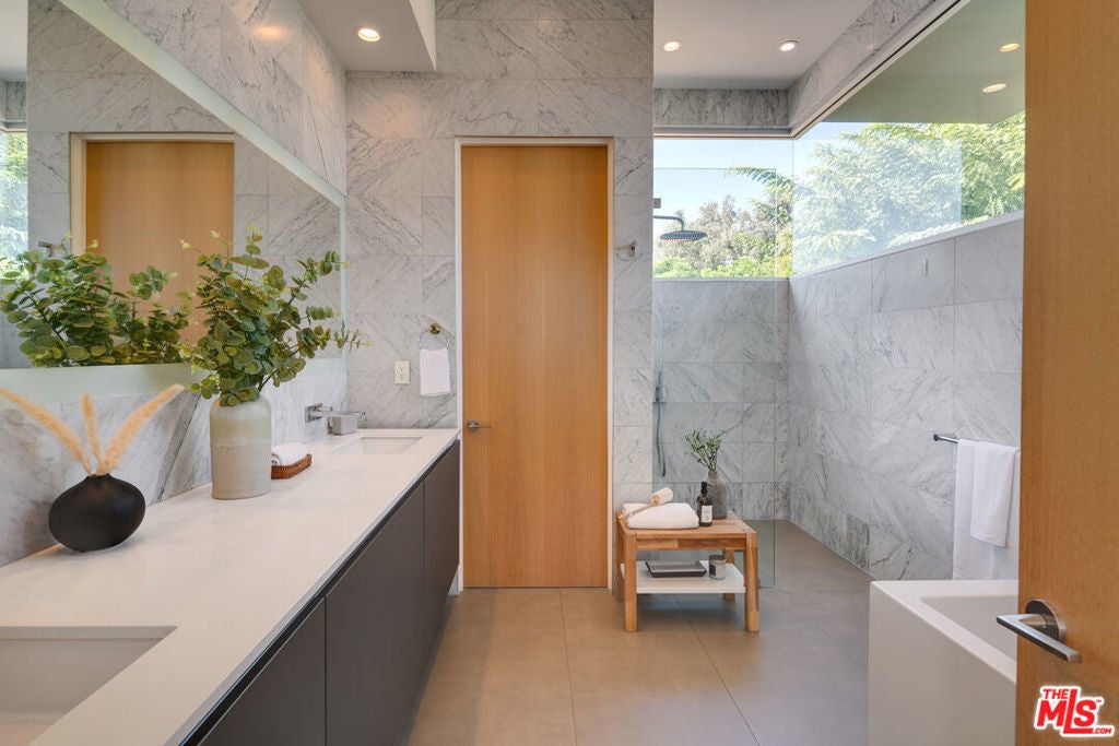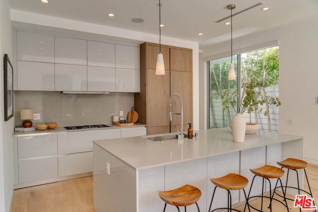 Welcome to 419 Westbourne Dr, a luxurious Organic Modern retreat nestled on a serene Cul De Sac street adjacent to Beverly Hills. This sprawling estate boasts one of the best lots and house in the area, offering unparalleled privacy and space. Impeccably designed with 11-foot ceilings throughout, this home features motorized shades in the living area and Fleetwood Pocket doors throughout, seamlessly blending indoor and outdoor living. Entertain guests with ease in the outdoor cabana, complete with a movie projector. Enjoy modern conveniences with a fully equipped alarm system, high-speed WiFi, and Crestron Smart Home System. Indulge in culinary delights with Miele appliances and a morning bar featuring a Miele Coffee machine in the primary bedroom. Relax in style with a Toto smart toilet in the primary bedroom and window window coverings throughout for added tranquility. Outdoor amenities include a BBQ area, zero-edge saltwater pool and spa, and a spacious grass area for both entertainment and children's enjoyment. Additional features include Electric Car Charging, French white oak wood flooring and security cameras throughout. Experience the epitome of luxury living in this exquisite West Hollywood oasis.