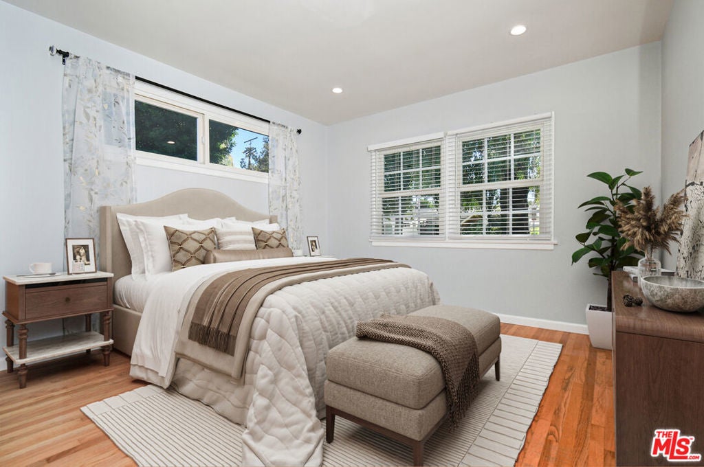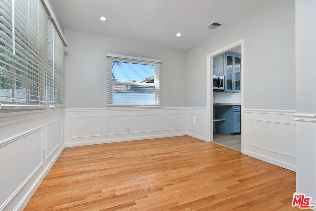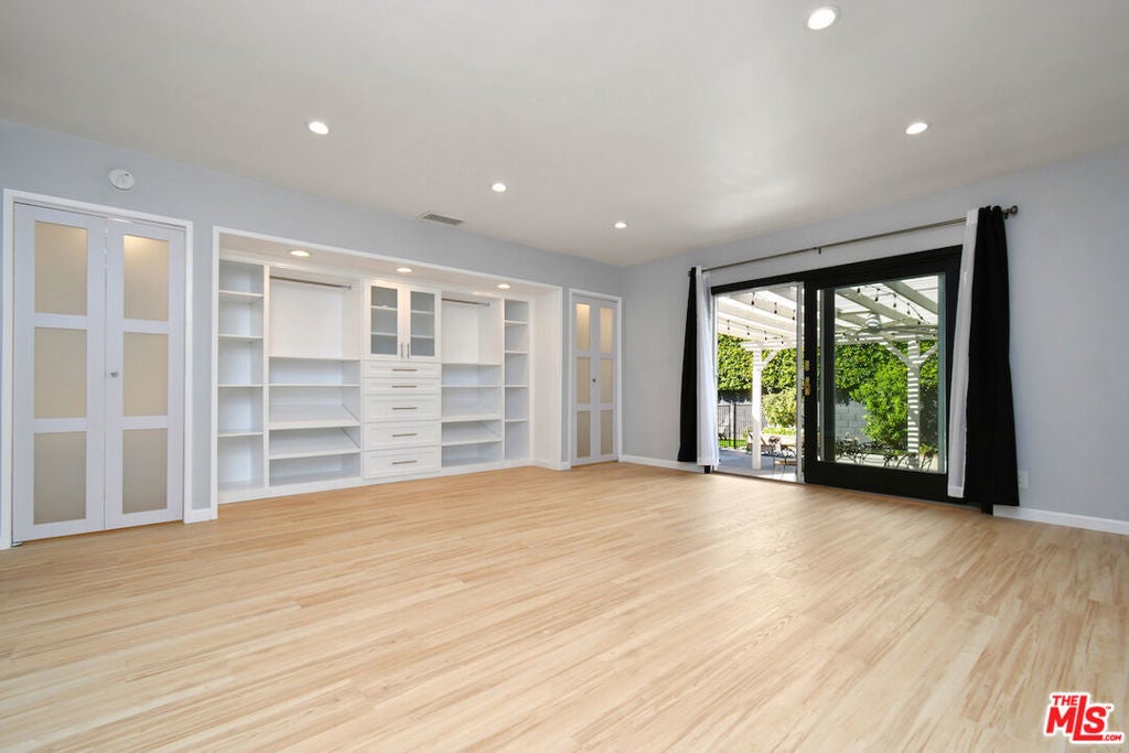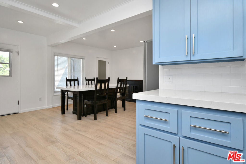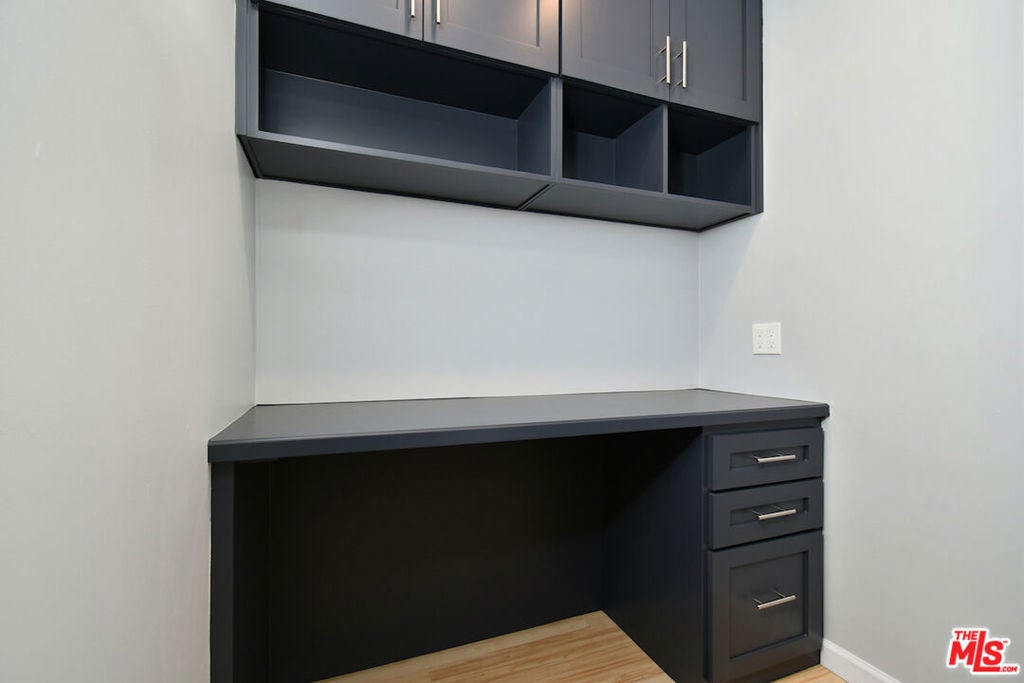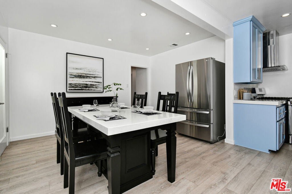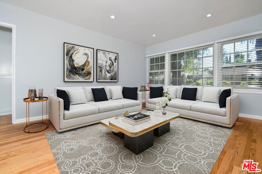 Tucked south of Ventura Boulevard on a quiet, tree-lined street, this beautifully renovated 3-bedroom, 2-bath home with an additional office perfectly blends charm and modern comfort. Bright and inviting, the open living space features refinished hardwood floors, a stone-faced fireplace, and large picture windows that fill the home with natural light. The remodeled kitchen stands out with custom sky-blue cabinetry, quartz countertops, and stainless-steel appliances, opening to a spacious dining area ideal for gatherings. Nearly every detail has been upgraded, including the roof, HVAC, bathrooms, interior and exterior paint, and landscaping. A flat, private lot offers a spacious yard and a finished detached garage that can serve as a playroom, studio, or flex space. Located in one of Woodland Hills' most desirable, walkable neighborhoods, near award-winning Woodland Hills Charter Elementary, this move-in-ready gem captures the best of Southern California living.